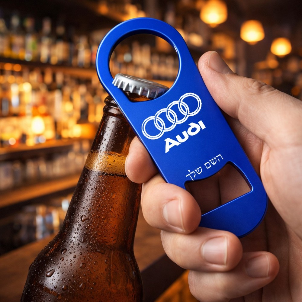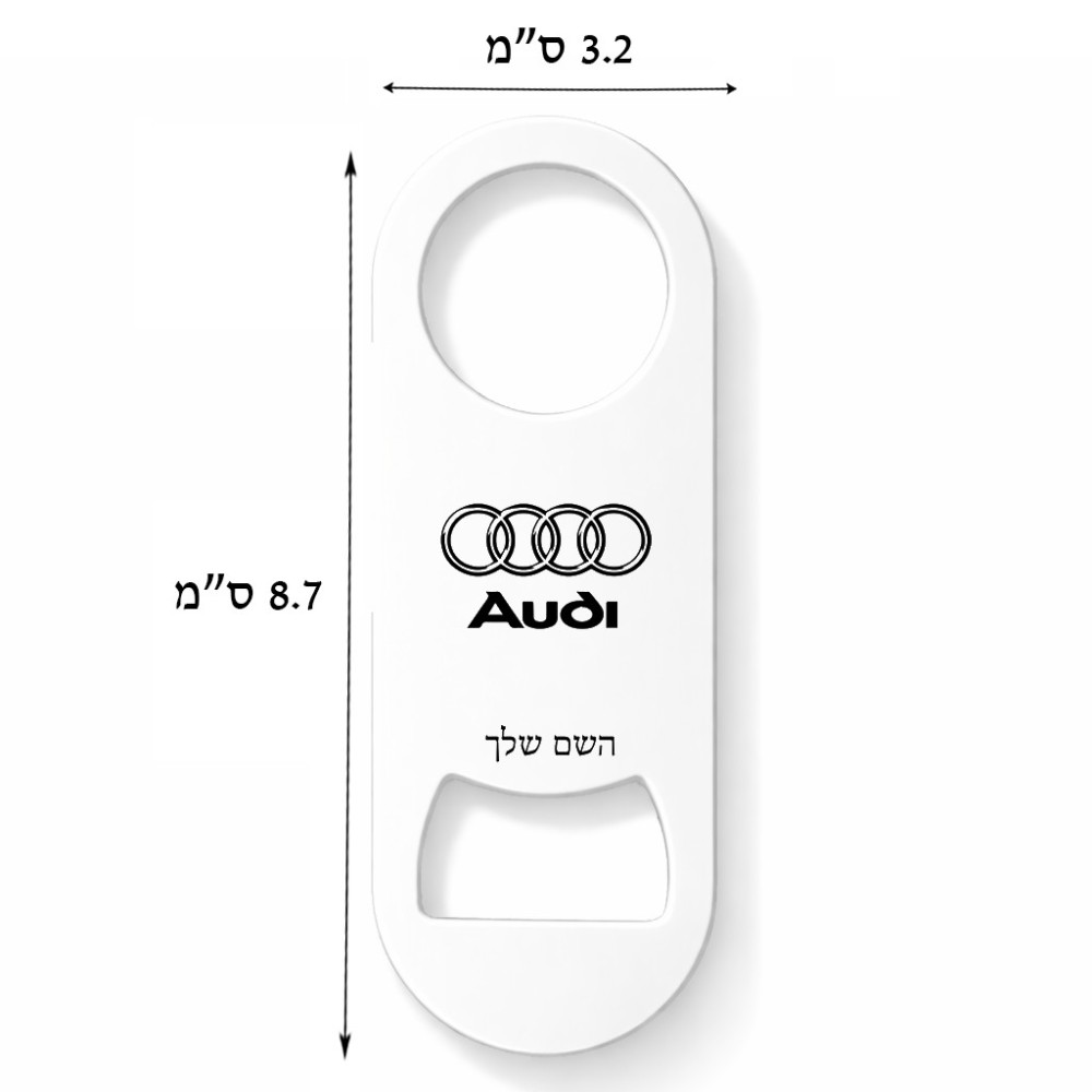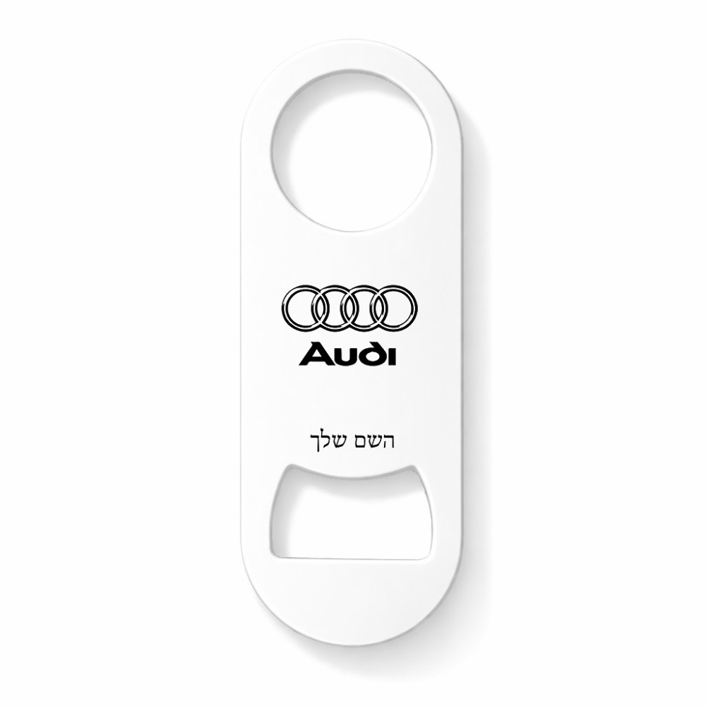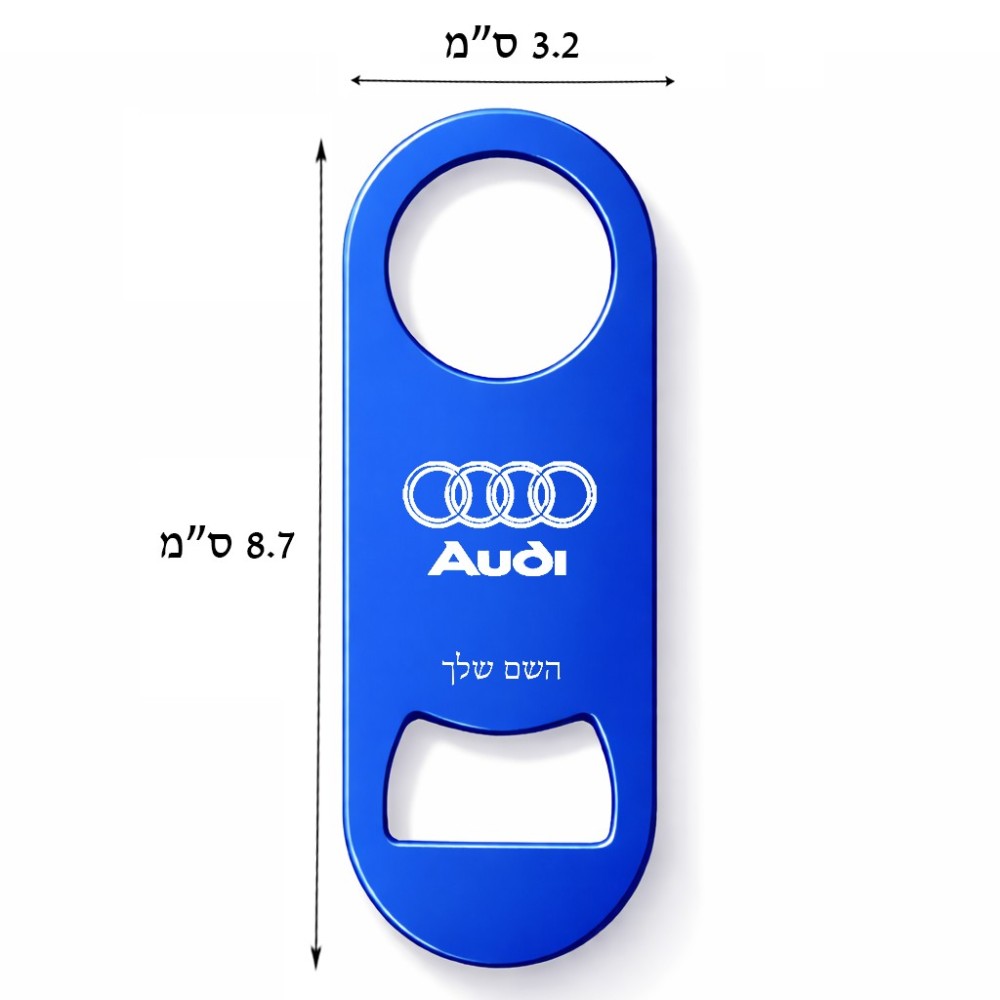 פותחן בקבוקים בעיצוב אישי עם השם שלך בעיצוב אאודי גודל הפותחן 3.2 × 8.7 ס"מ