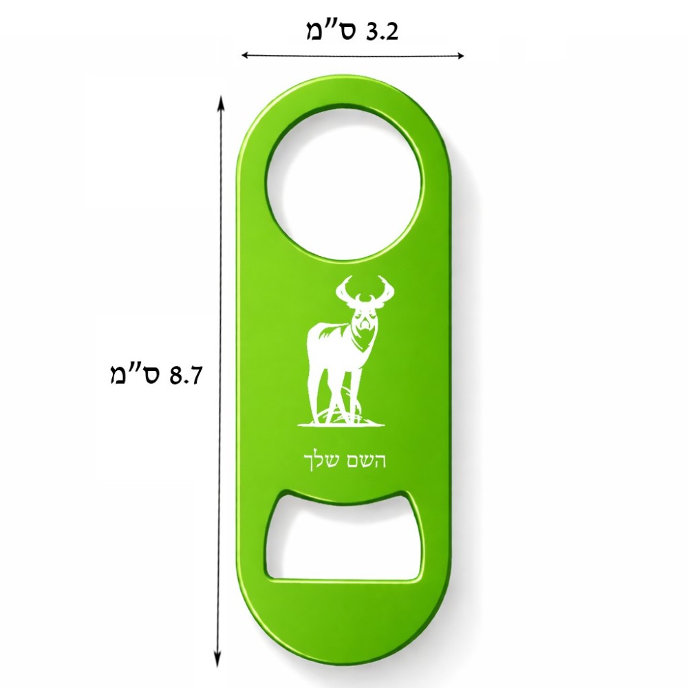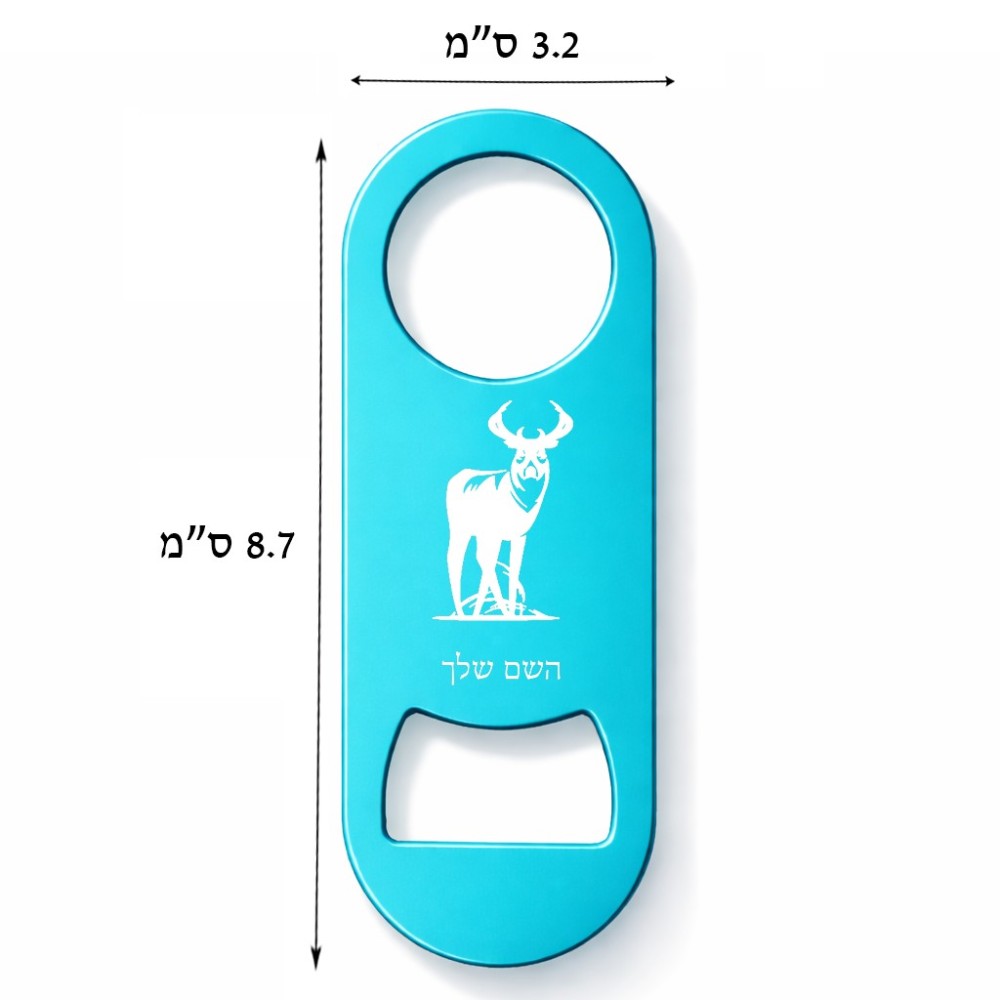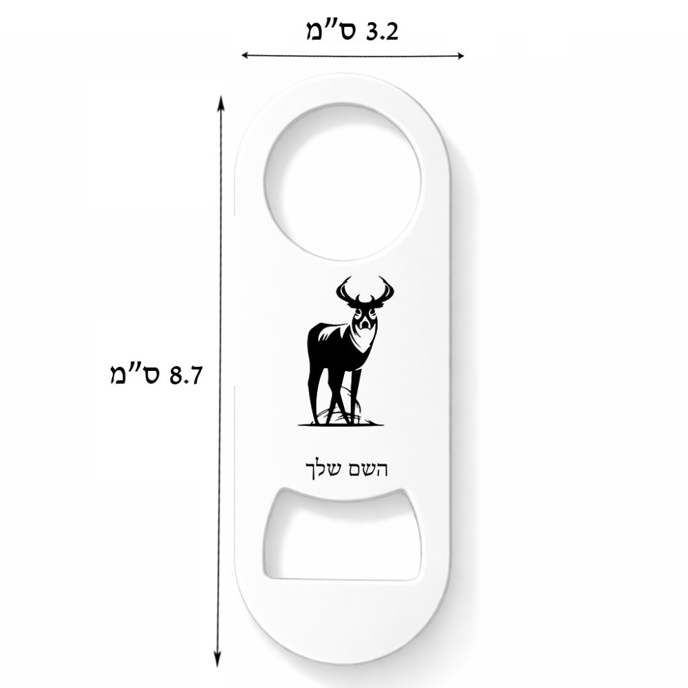 פותחן בקבוקים בעיצוב אישי עם השם שלך בעיצוב צבי גודל הפותחן 3.2 × 8.7 ס"מ