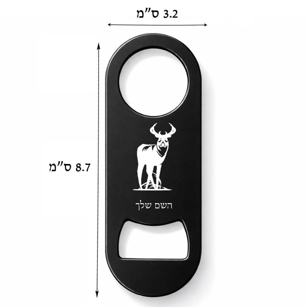 פותחן בקבוקים בעיצוב אישי עם השם שלך בעיצוב צבי. את השם המבוקש ניתן לציין בהזמנה, אם לא צויין אנחנו ניצור קשר לבירור.