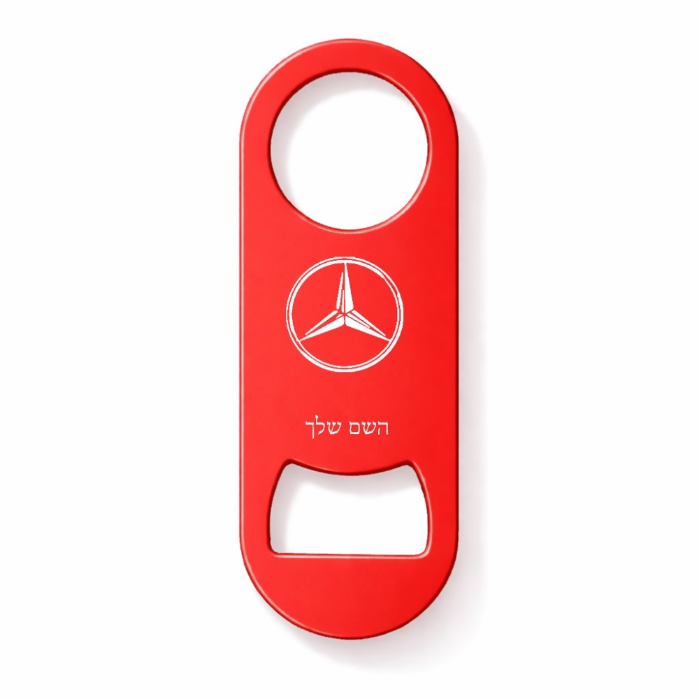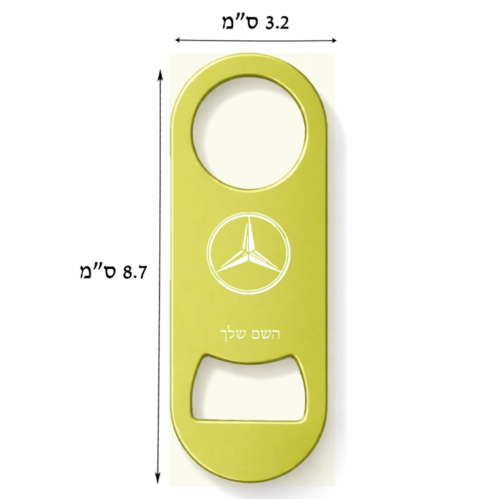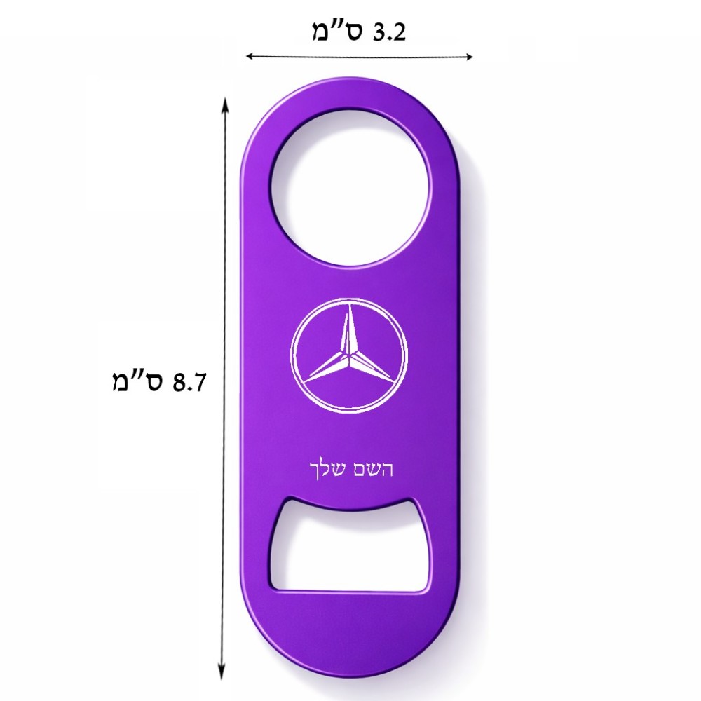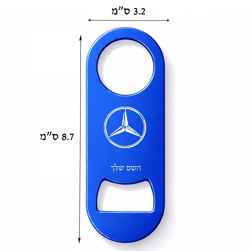 פותחן בקבוקים בעיצוב אישי עם השם שלך בעיצוב מרצדס-בנץ גודל הפותחן 3.2 × 8.7 ס"מ