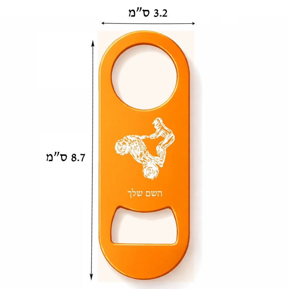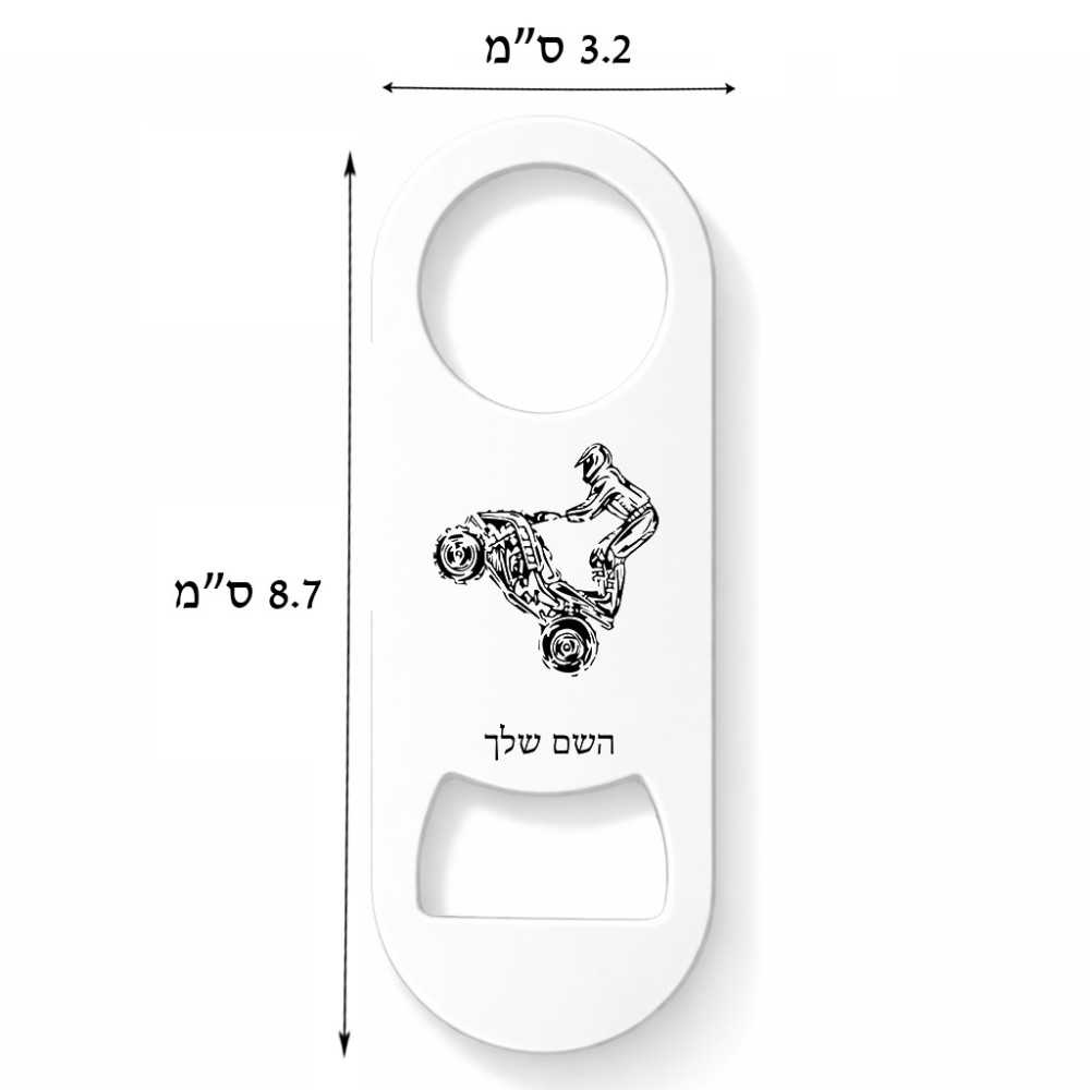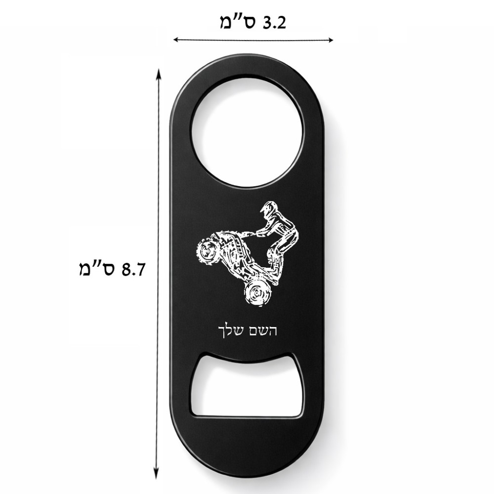 פותחן בקבוקים בעיצוב אישי עם השם שלך בעיצוב רוכב טרקטורונים. את השם המבוקש ניתן לציין בהזמנה, אם לא צויין אנחנו ניצור קשר לבירור.
