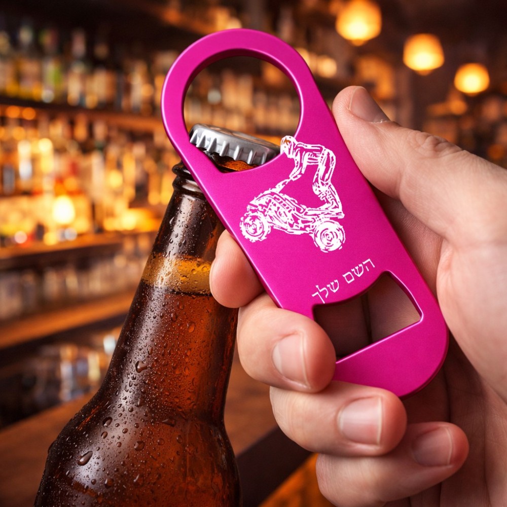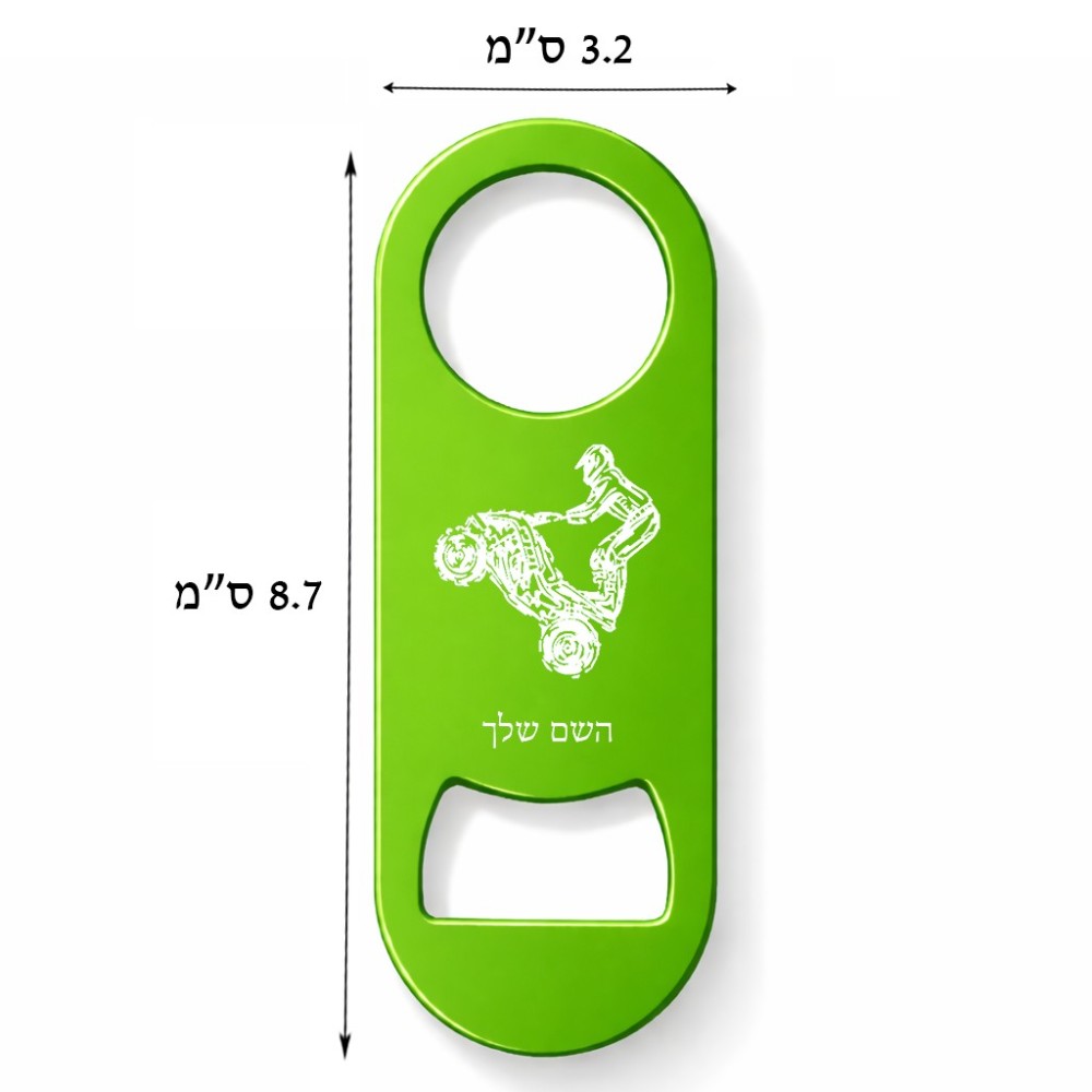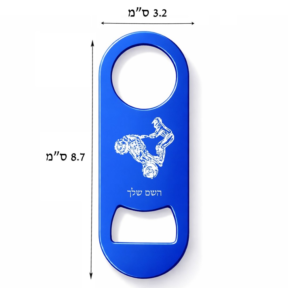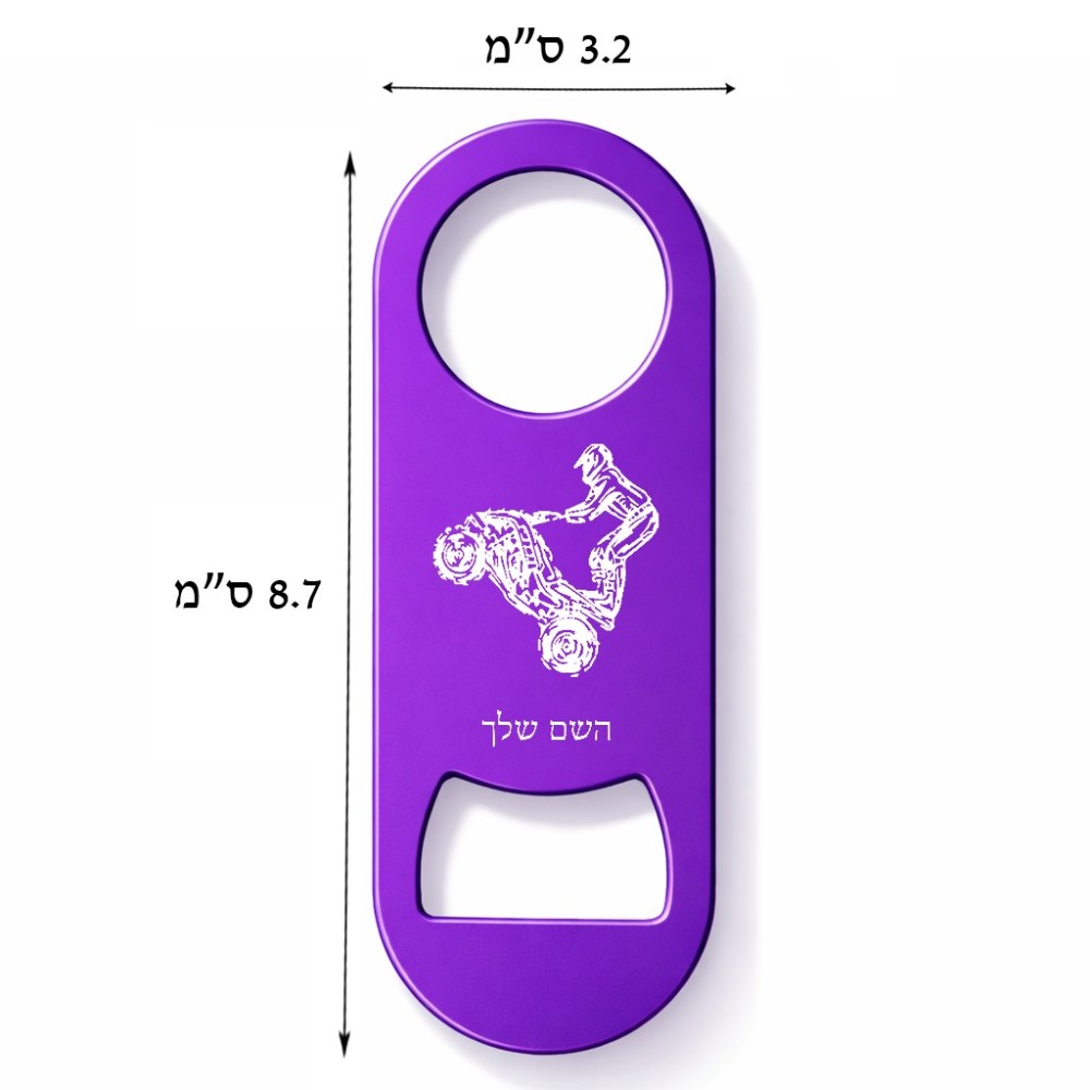 פותחן בקבוקים בעיצוב אישי עם השם שלך בעיצוב רוכב טרקטורונים. את השם המבוקש ניתן לציין בהזמנה, אם לא צויין אנחנו ניצור קשר לבירור.