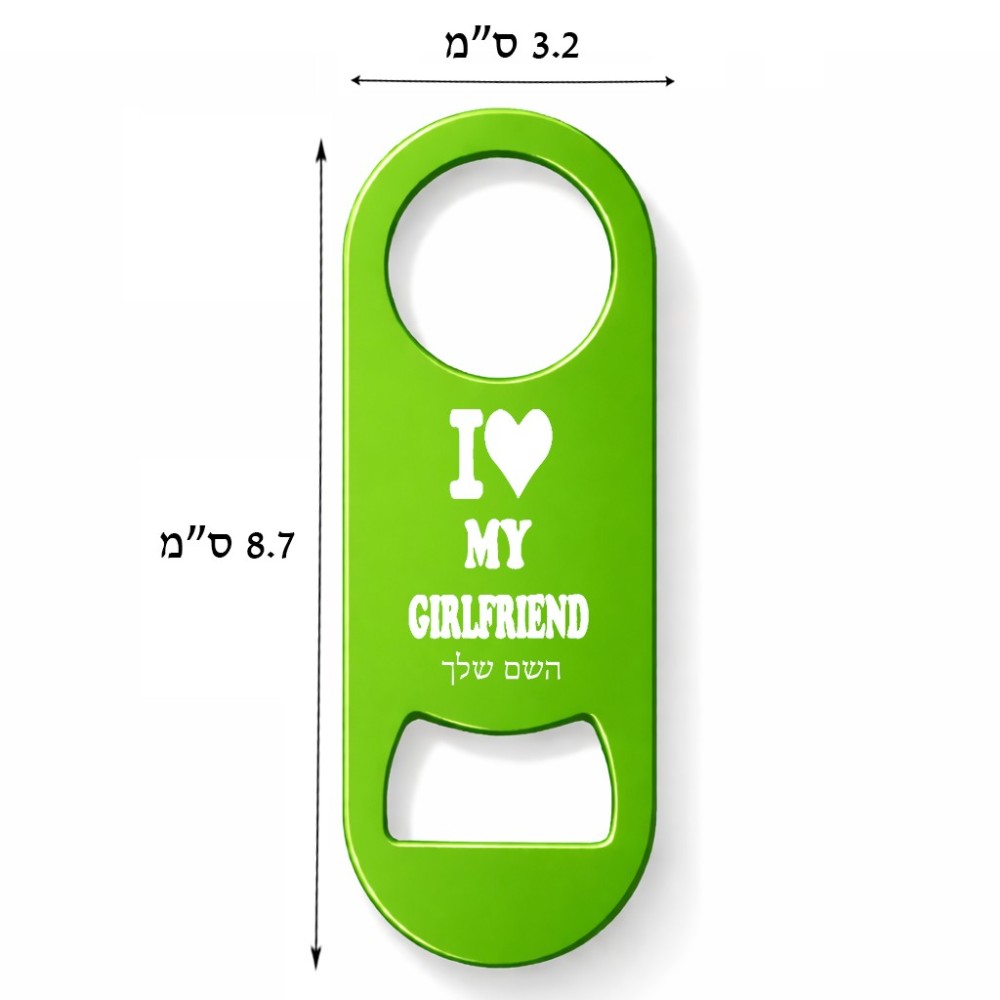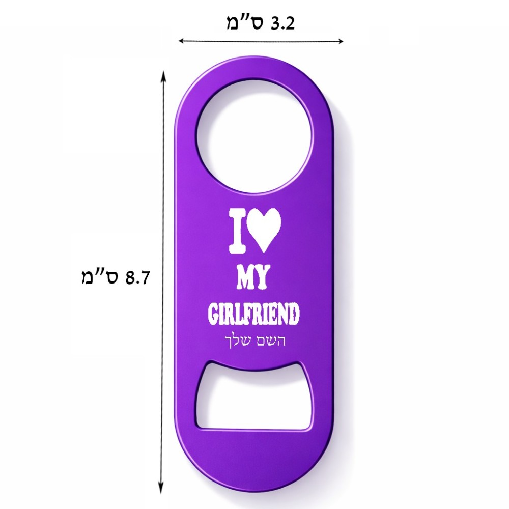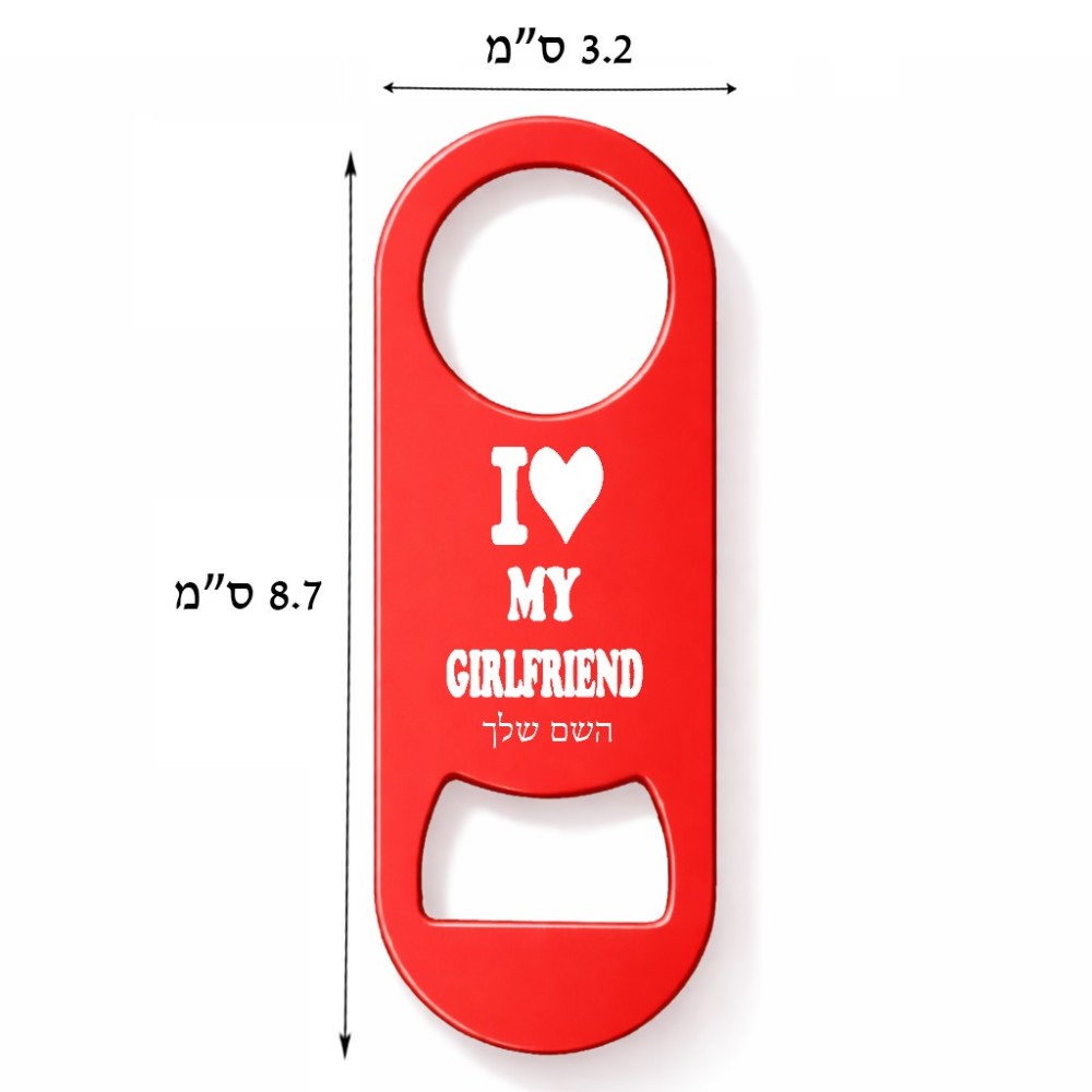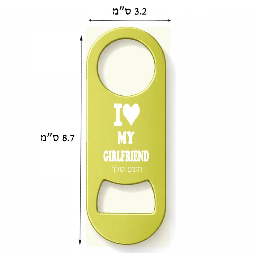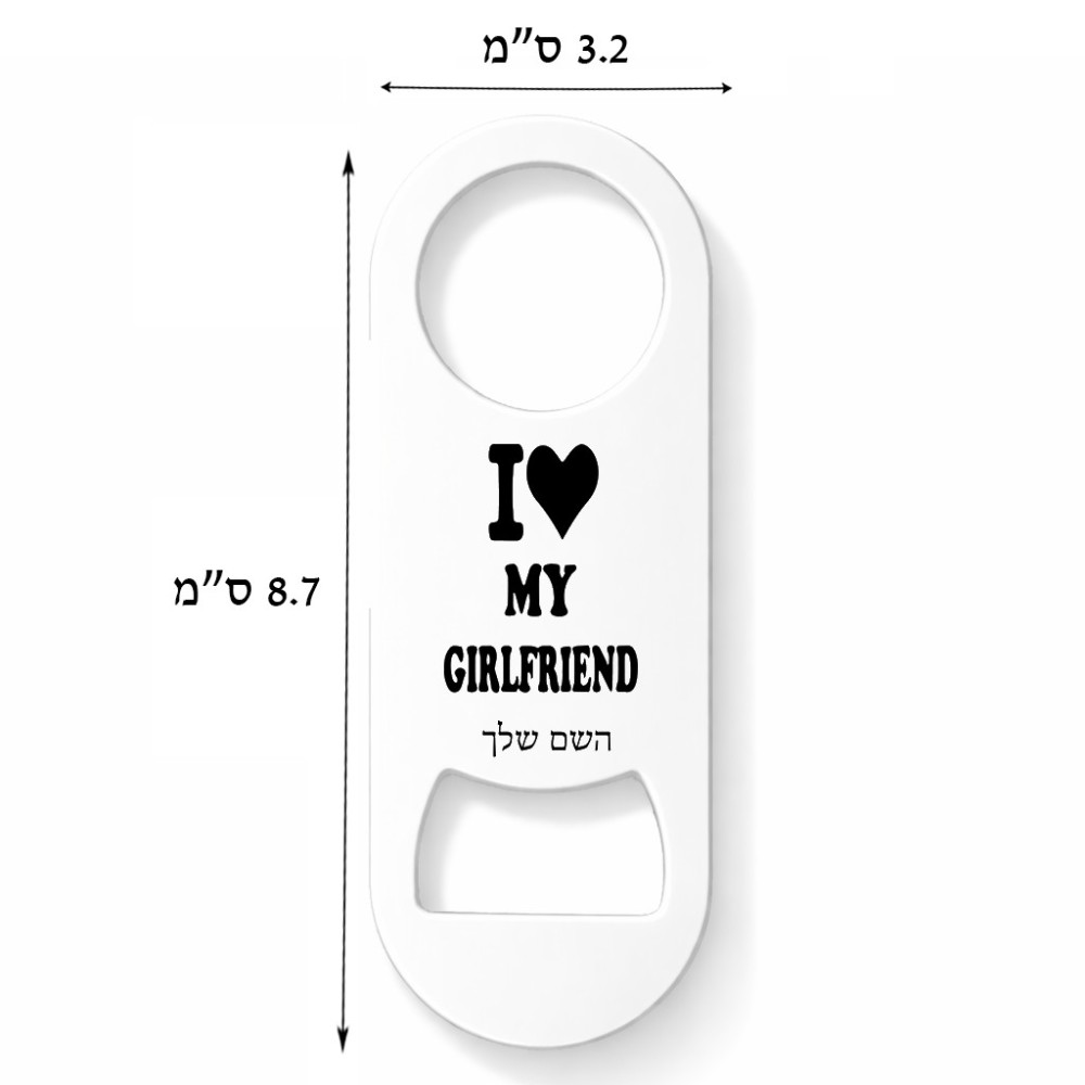 פותחן בקבוקים בעיצוב אישי עם השם שלך בעיצוב אוהב את החברה שלי גודל הפותחן 3.2 × 8.7 ס"מ