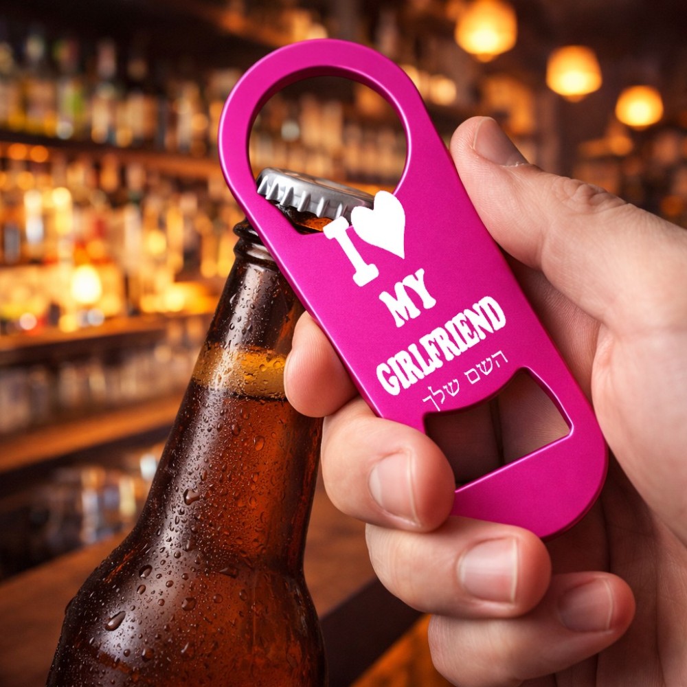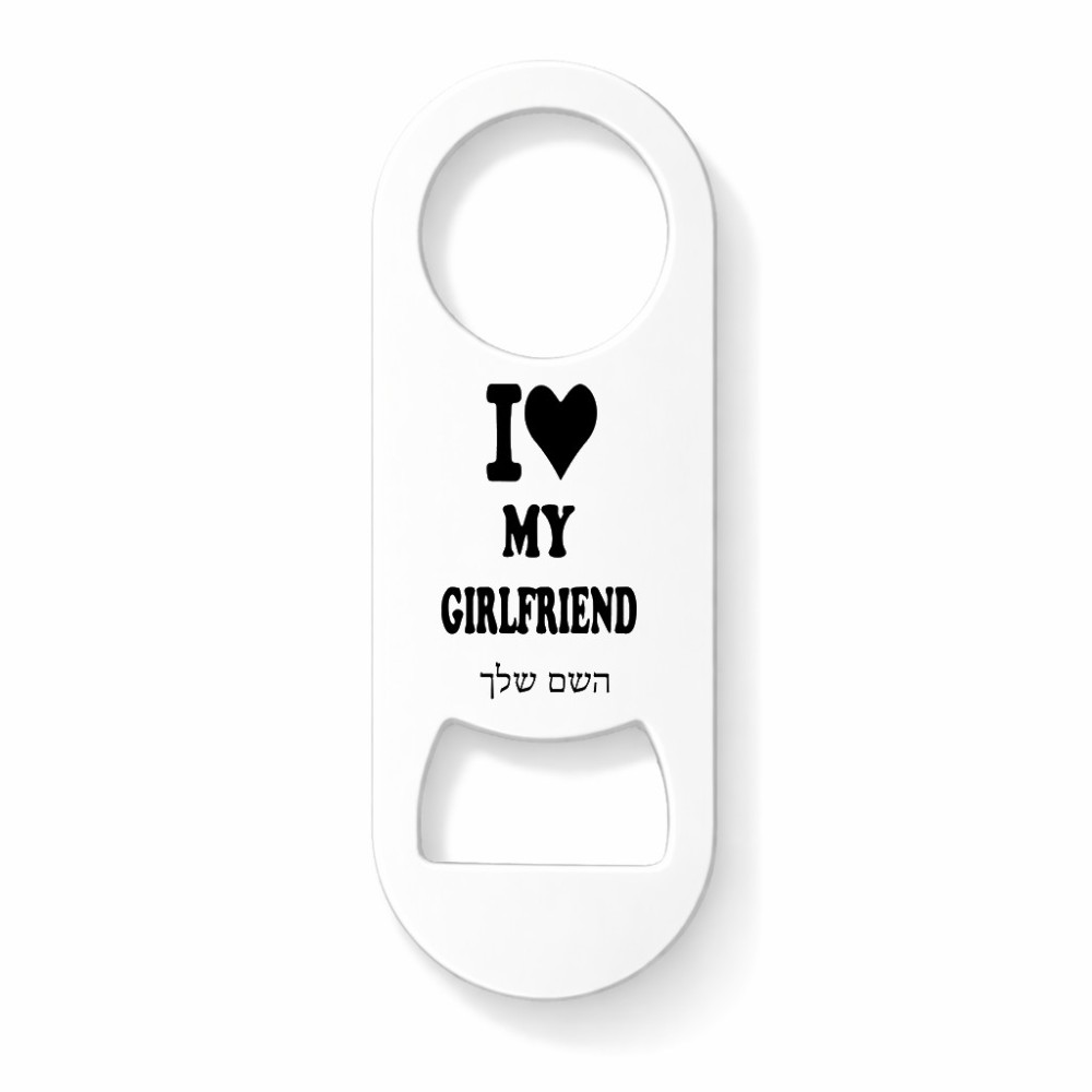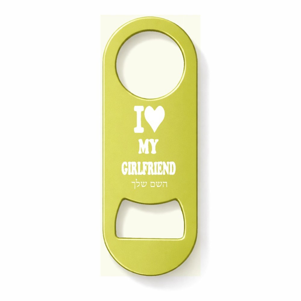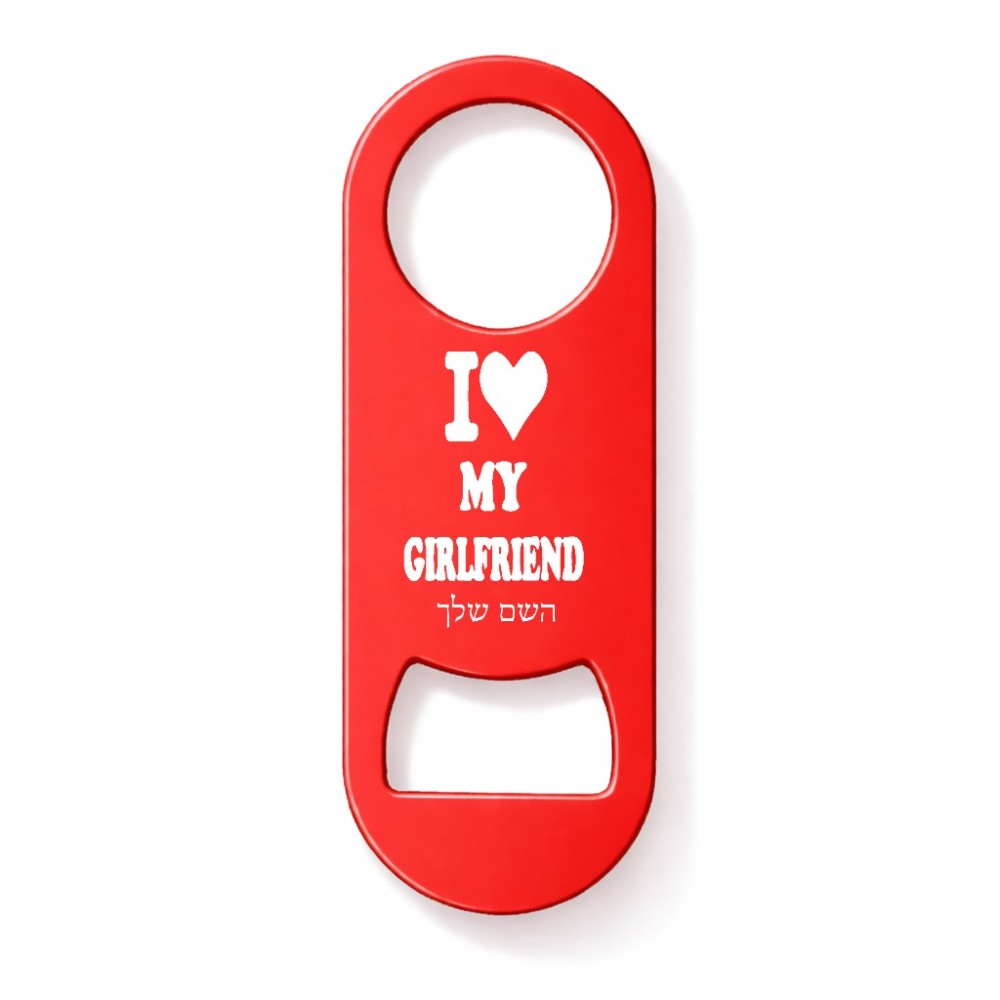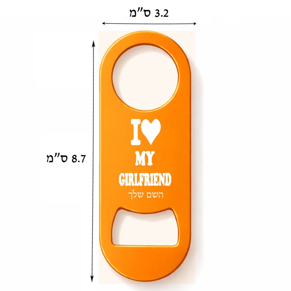 פותחן בקבוקים בעיצוב אישי עם השם שלך בעיצוב אוהב את החברה שלי גודל הפותחן 3.2 × 8.7 ס"מ