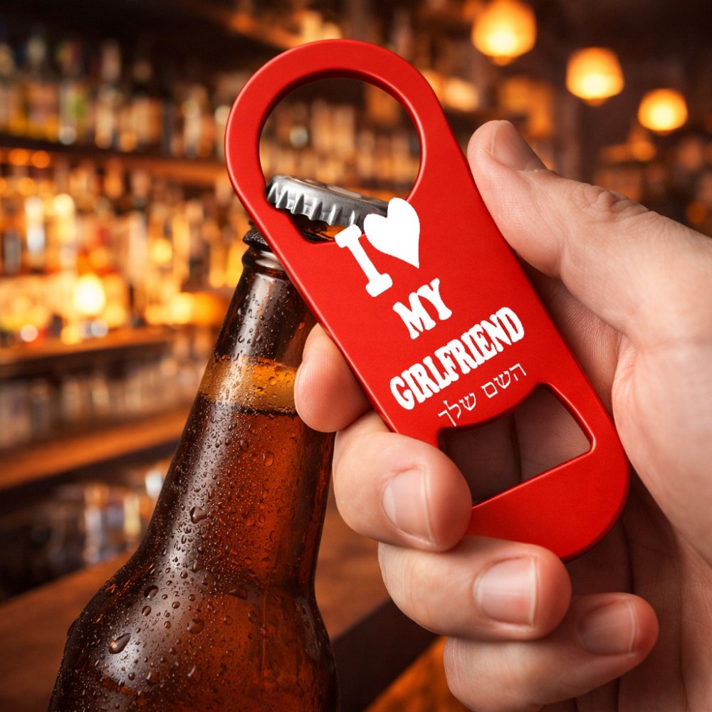 פותחן בקבוקים בעיצוב אישי עם השם שלך בעיצוב אוהב את החברה שלי. את השם המבוקש ניתן לציין בהזמנה, אם לא צויין אנחנו ניצור קשר לבירור.
