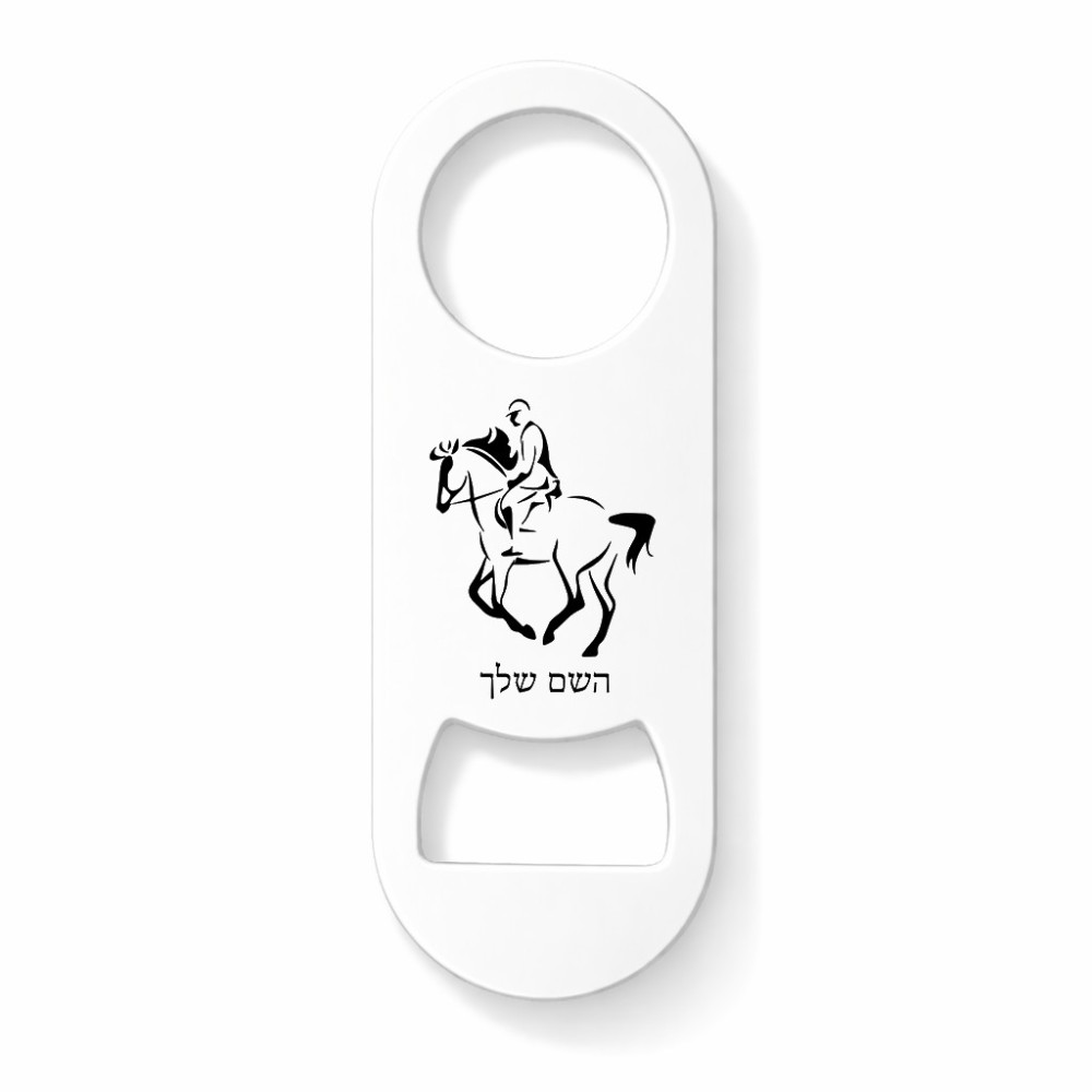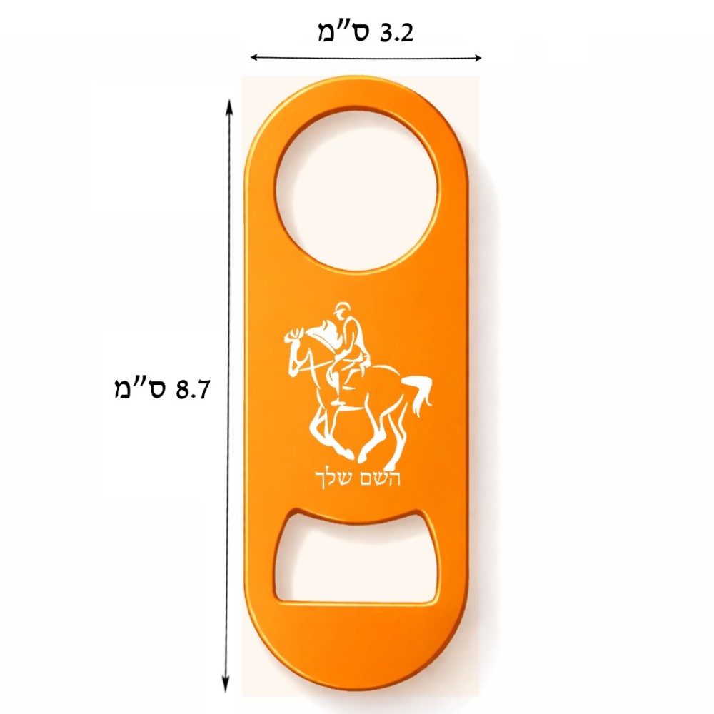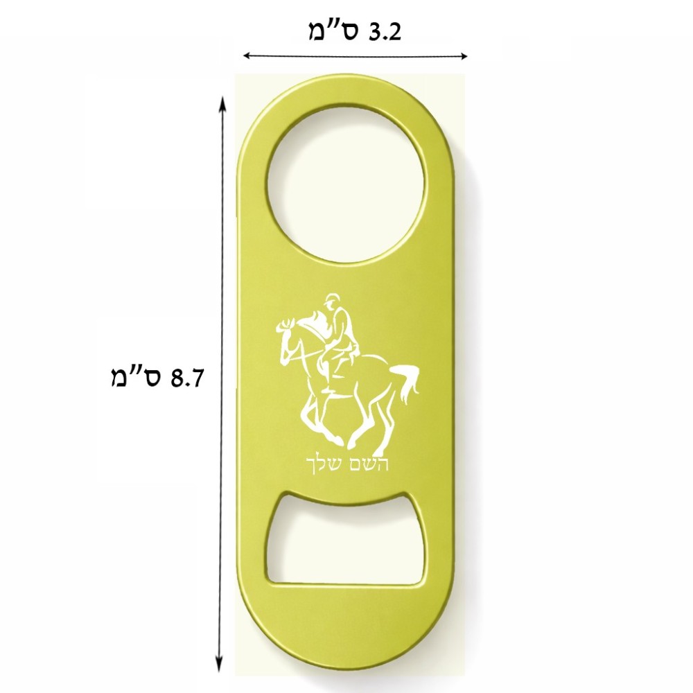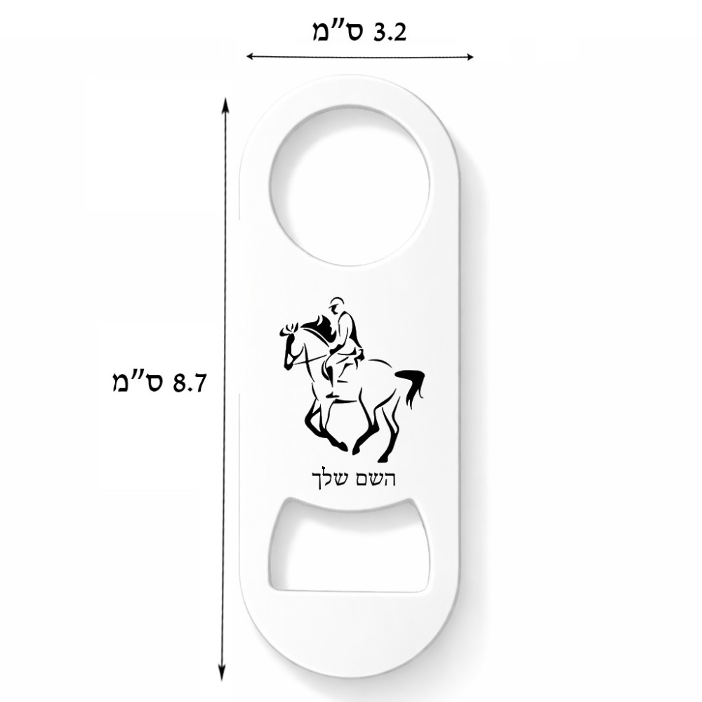 פותחן בקבוקים בעיצוב אישי עם השם שלך בעיצוב רוכב סוסים 2 גודל הפותחן 3.2 × 8.7 ס"מ