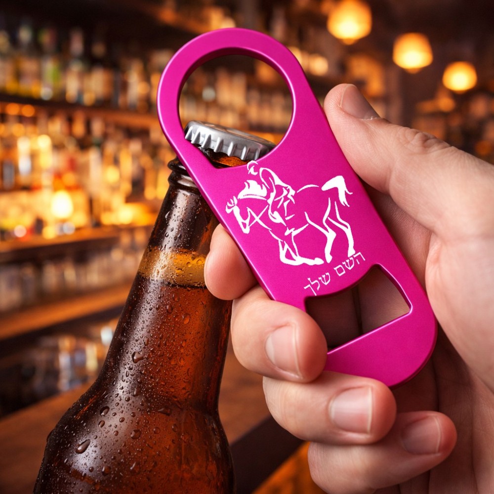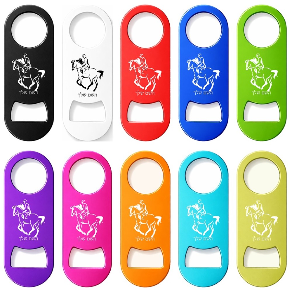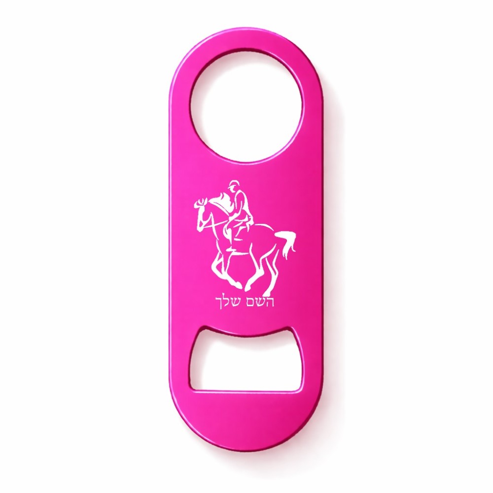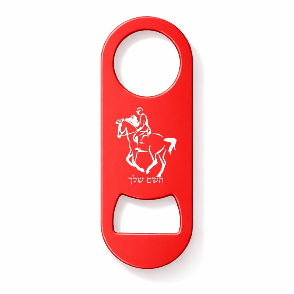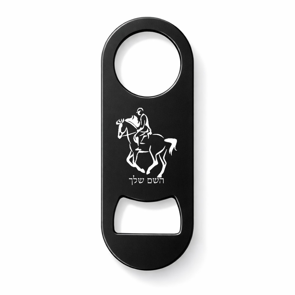 פותחן בקבוקים בעיצוב אישי עם השם שלך בעיצוב רוכב סוסים 2 גודל הפותחן 3.2 × 8.7 ס"מ