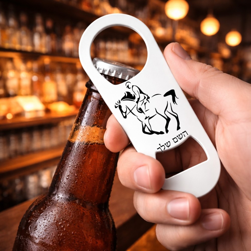 פותחן בקבוקים בעיצוב אישי עם השם שלך בעיצוב רוכב סוסים 2. את השם המבוקש ניתן לציין בהזמנה, אם לא צויין אנחנו ניצור קשר לבירור.