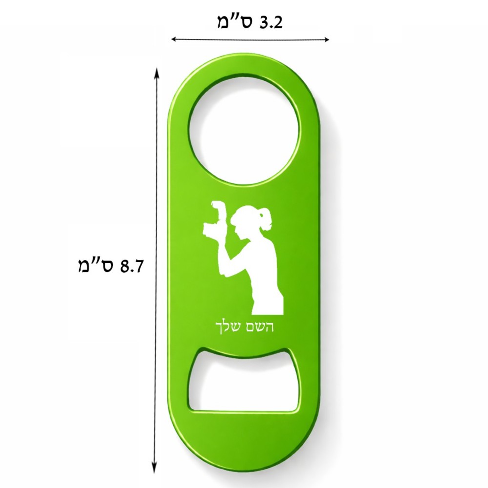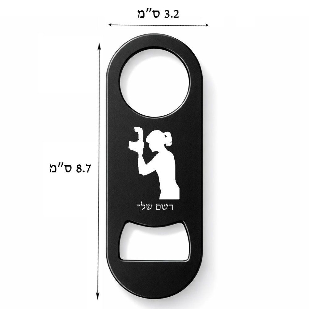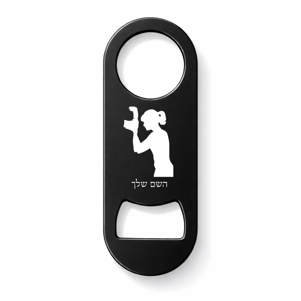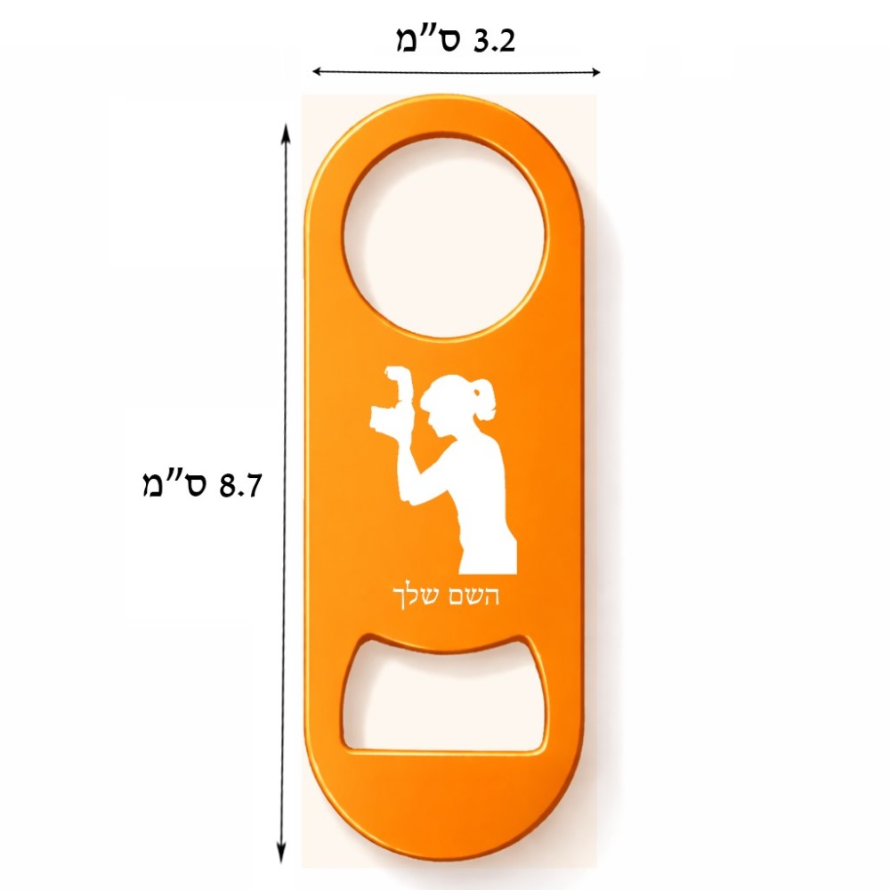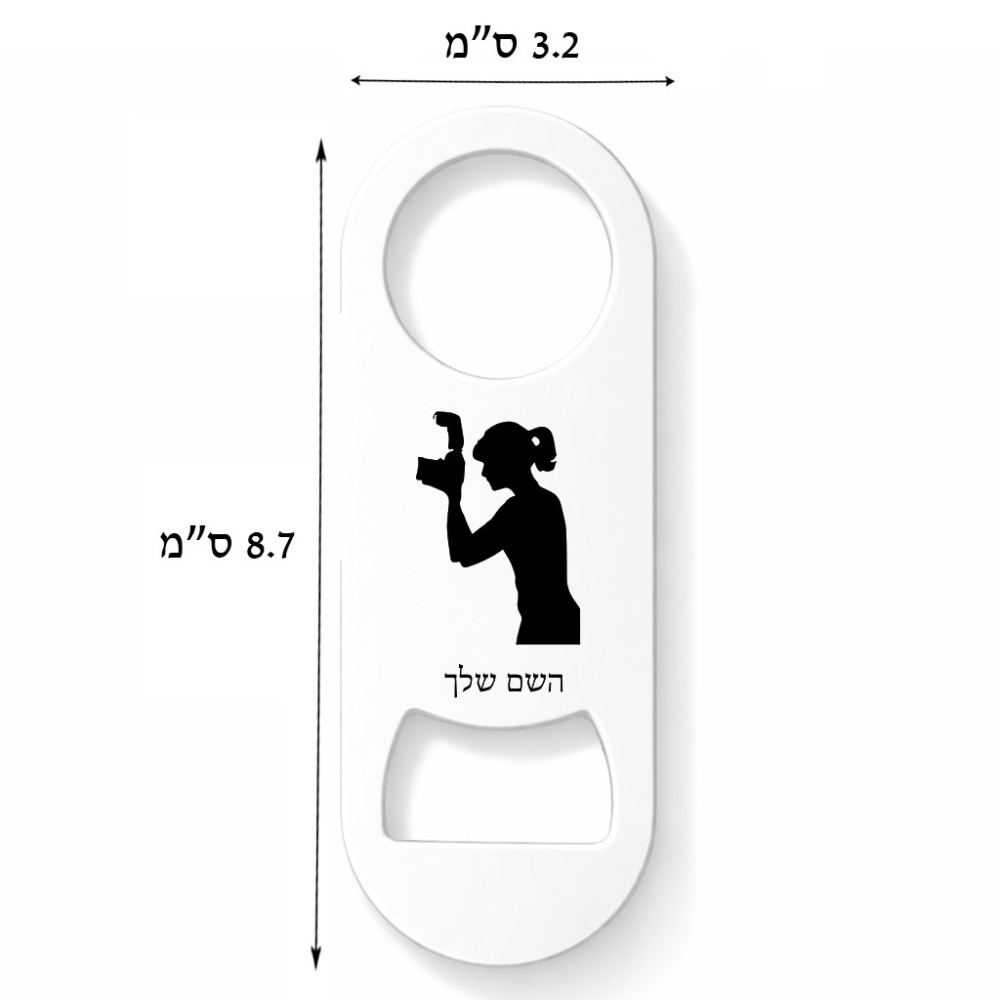 פותחן בקבוקים בעיצוב אישי עם השם שלך בעיצוב צלמת - אישה. את השם המבוקש ניתן לציין בהזמנה, אם לא צויין אנחנו ניצור קשר לבירור.