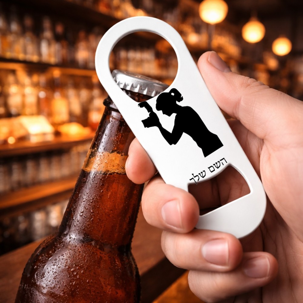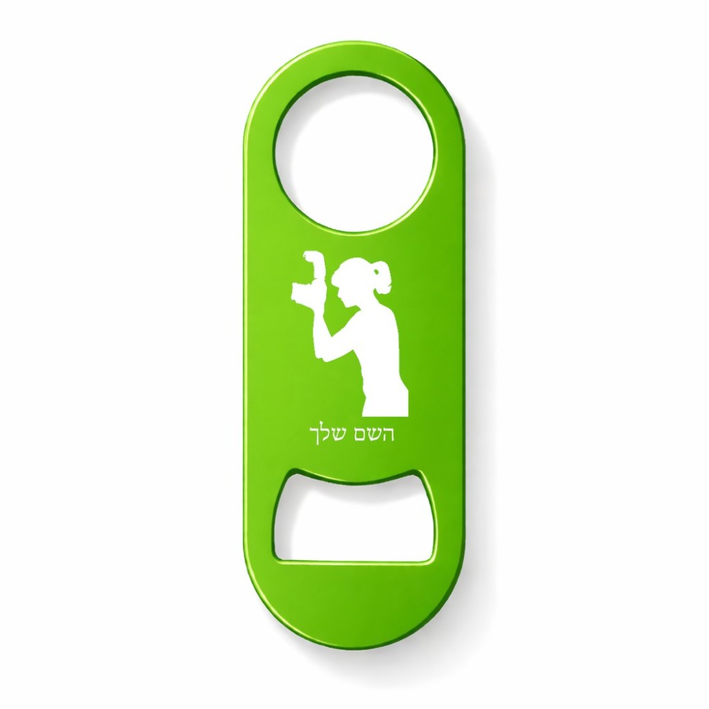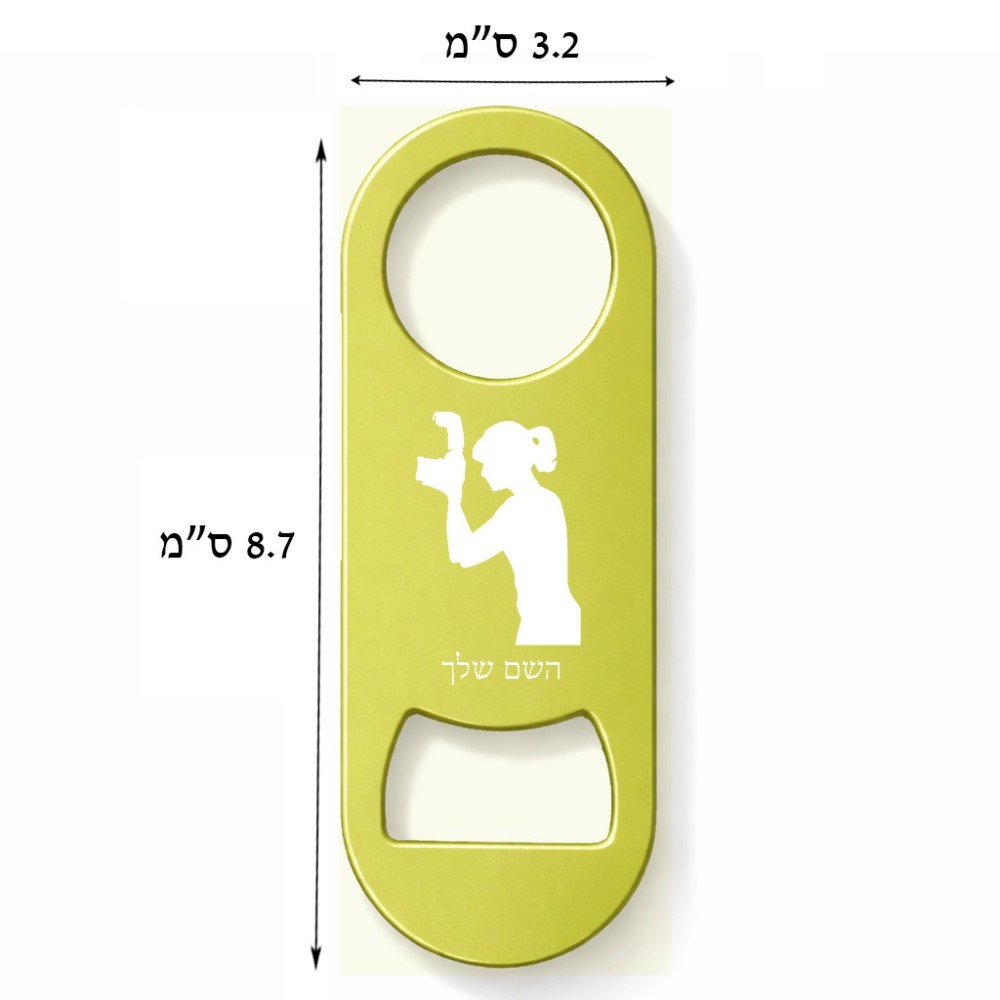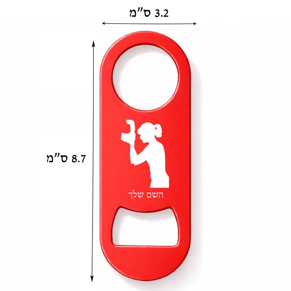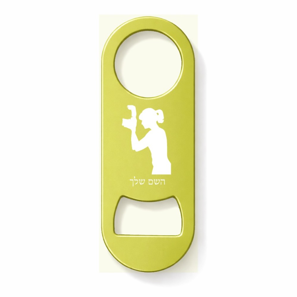 פותחן בקבוקים בעיצוב אישי עם השם שלך בעיצוב צלמת - אישה. את השם המבוקש ניתן לציין בהזמנה, אם לא צויין אנחנו ניצור קשר לבירור.