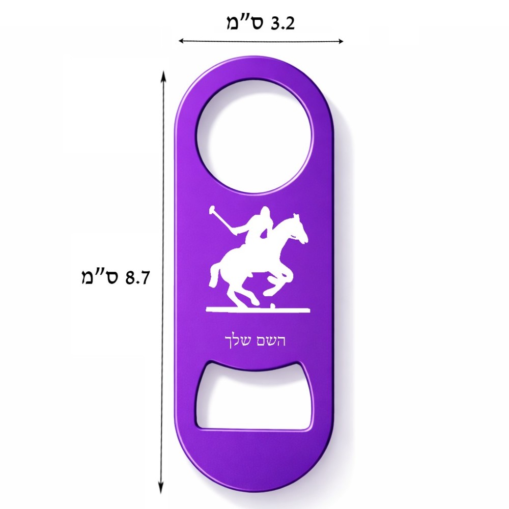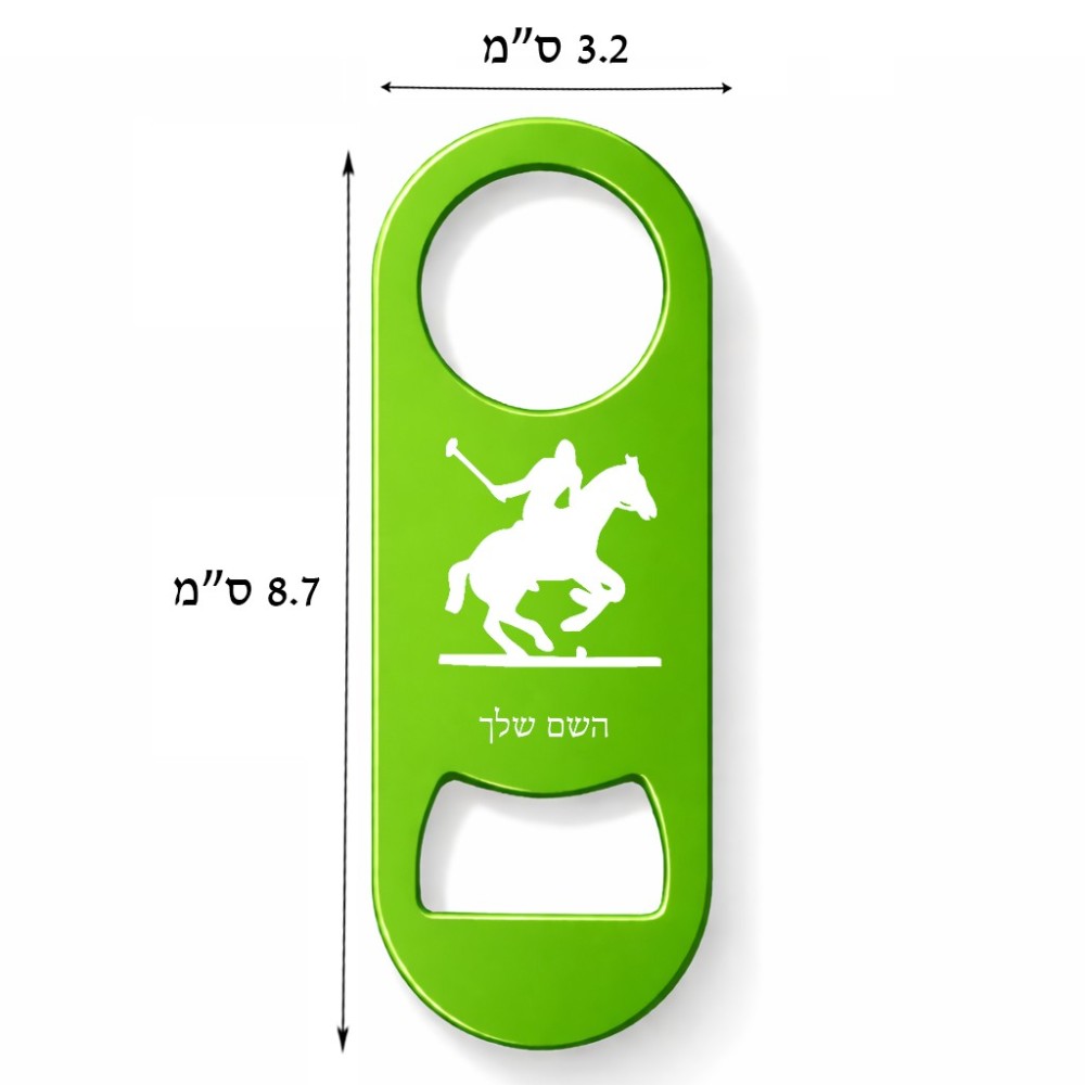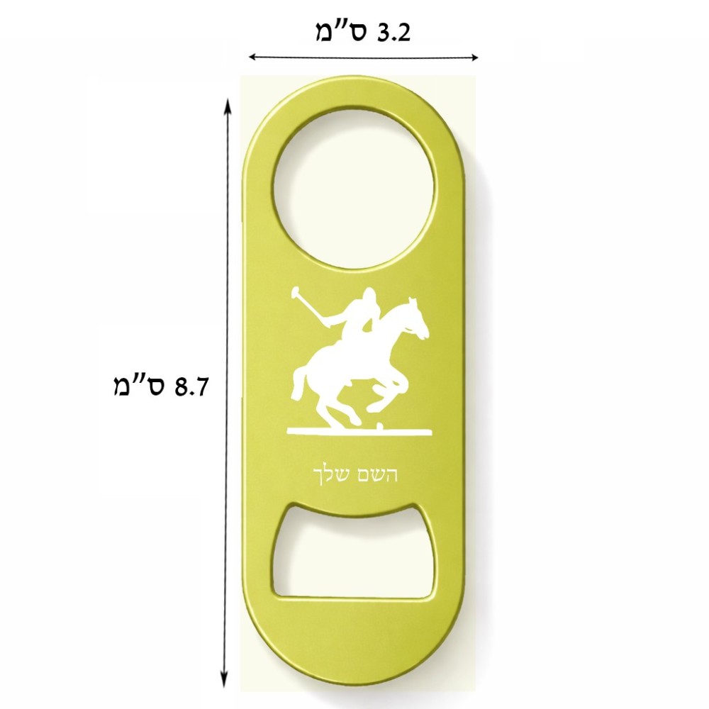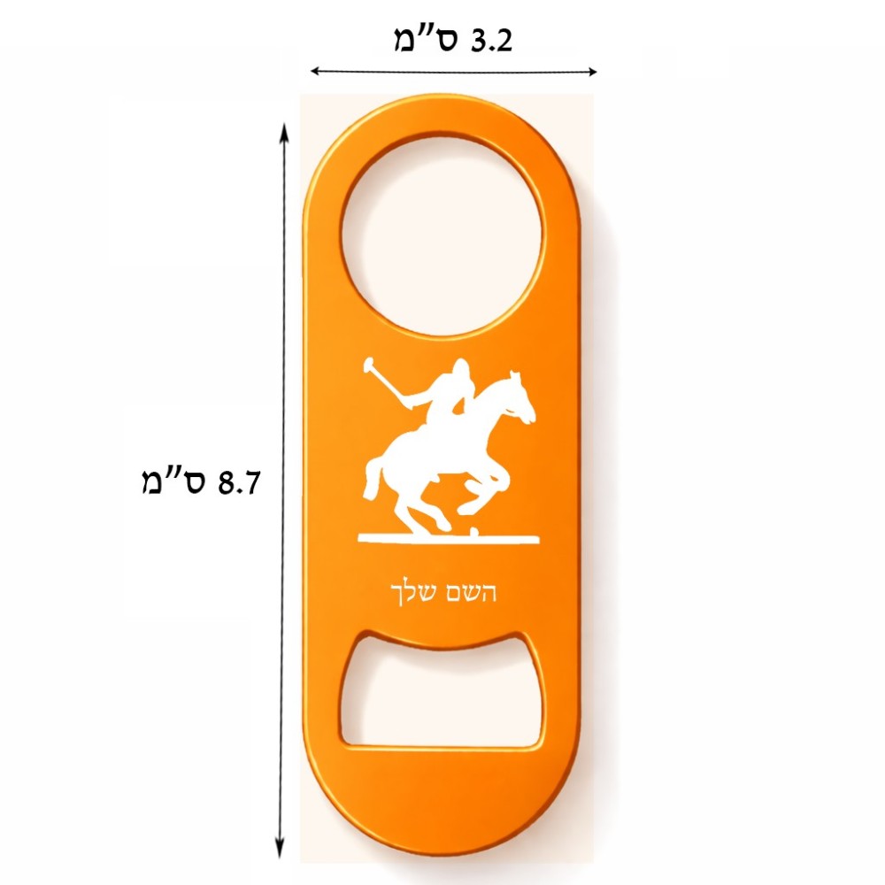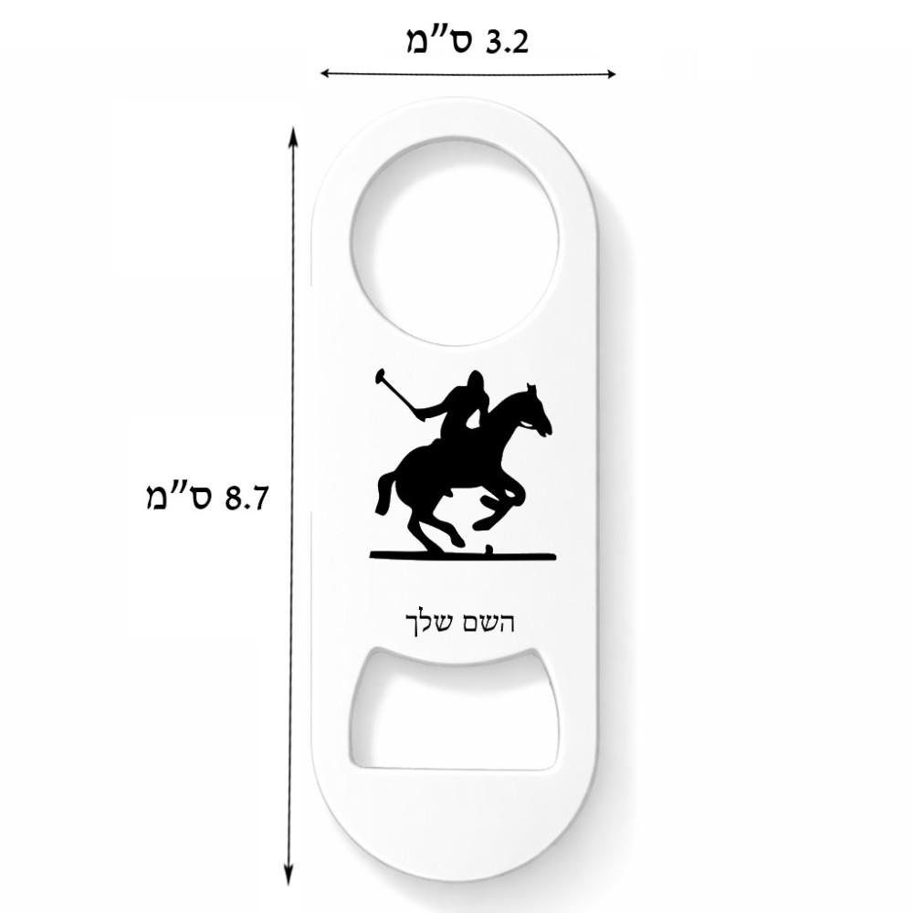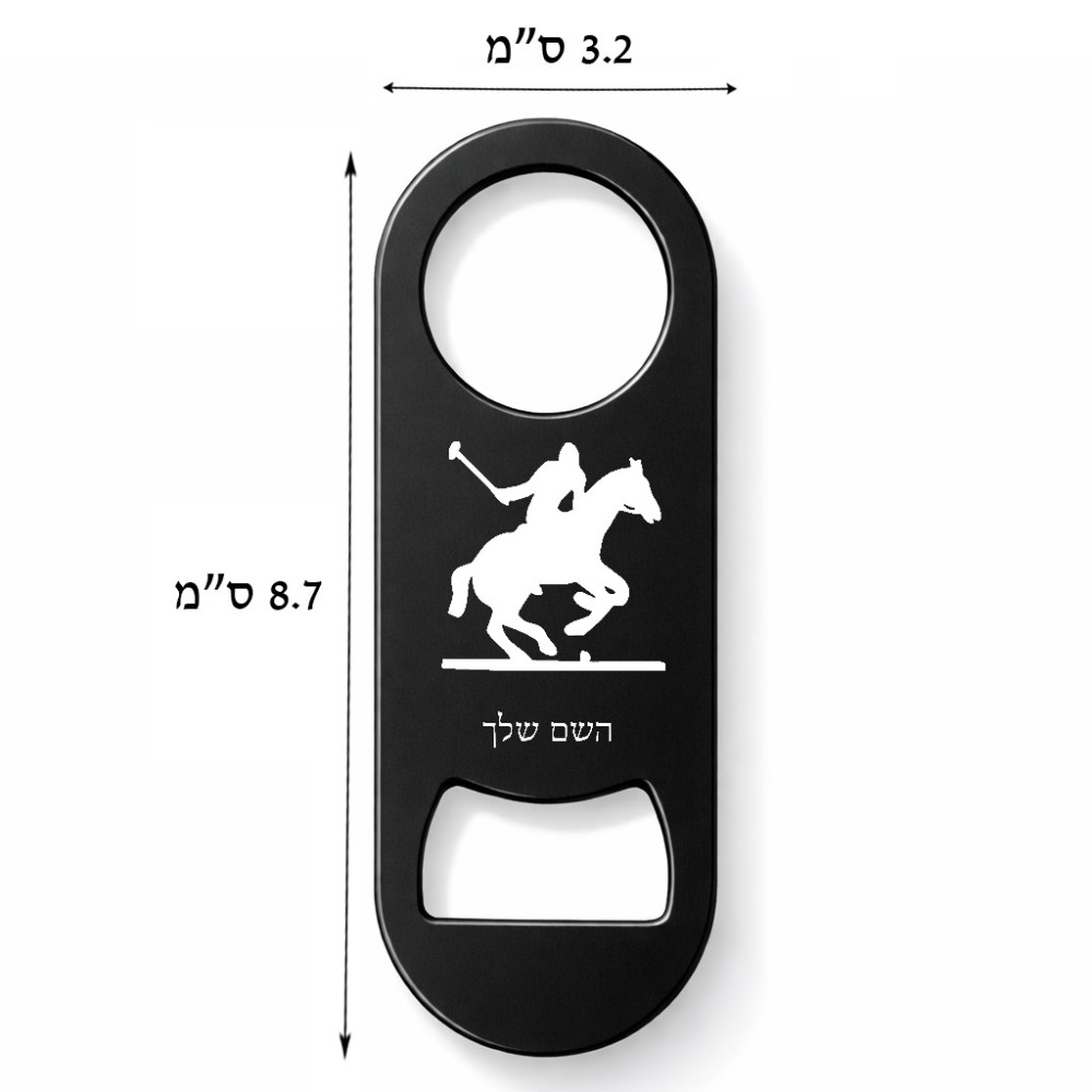 פותחן בקבוקים בעיצוב אישי עם השם שלך בעיצוב שחקן פולו - סוס. את השם המבוקש ניתן לציין בהזמנה, אם לא צויין אנחנו ניצור קשר לבירור.