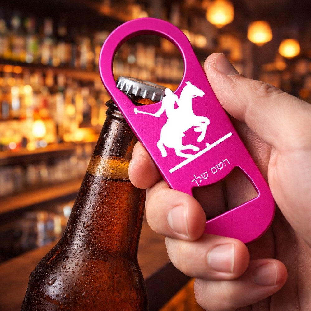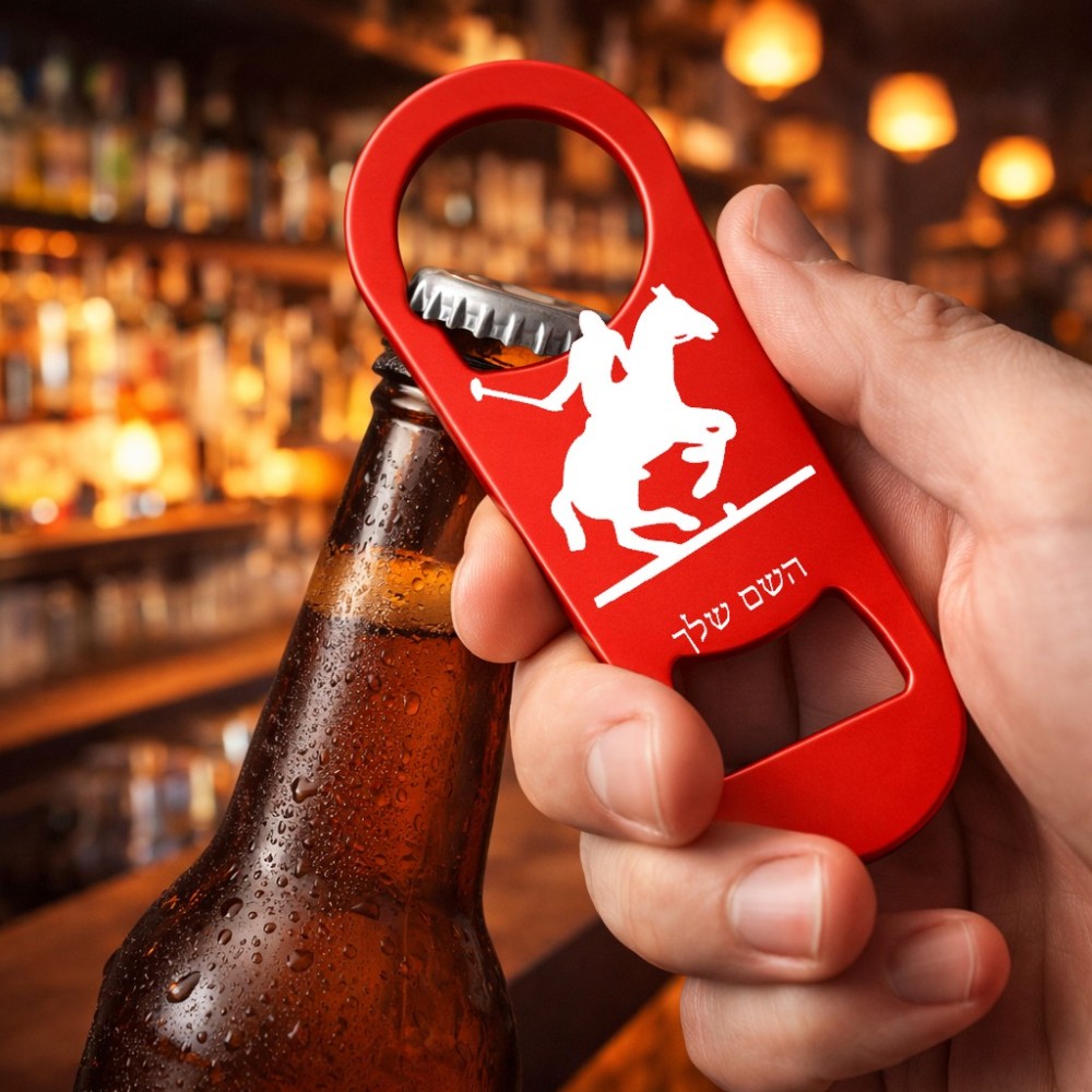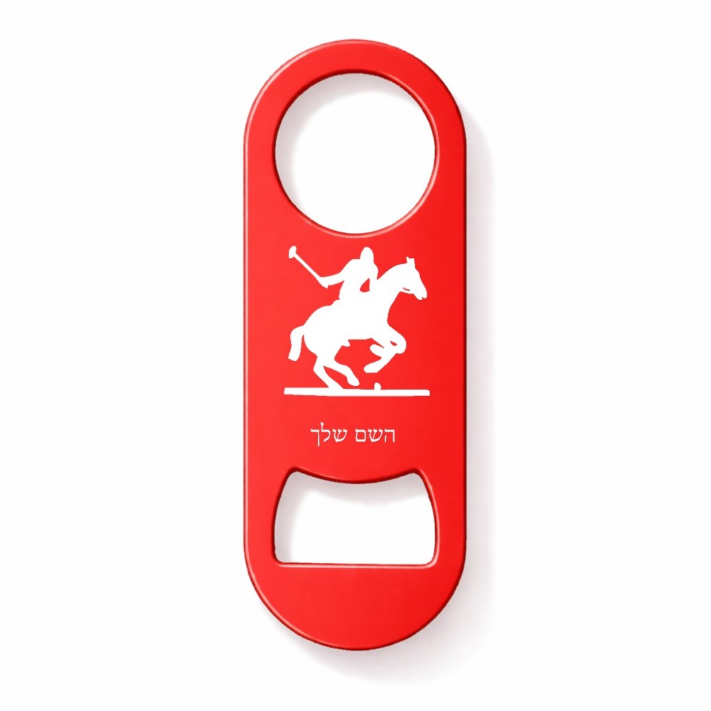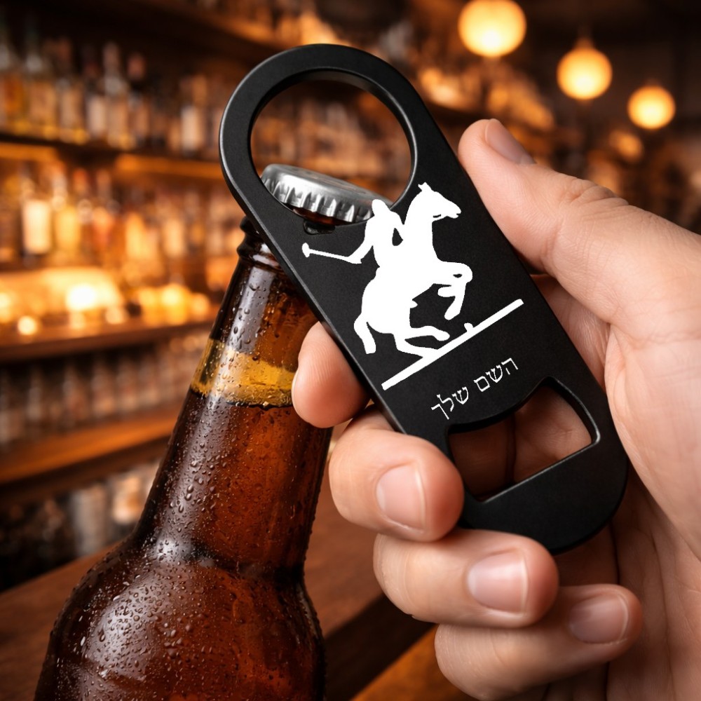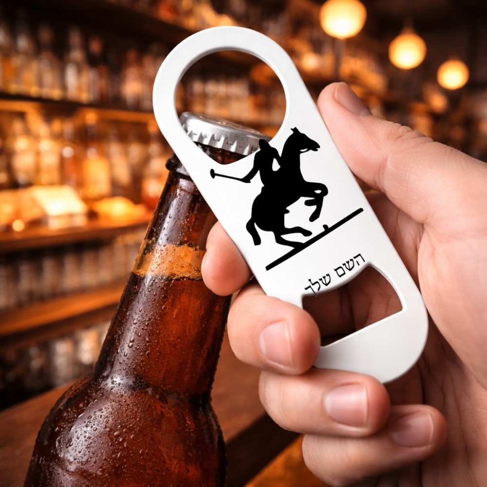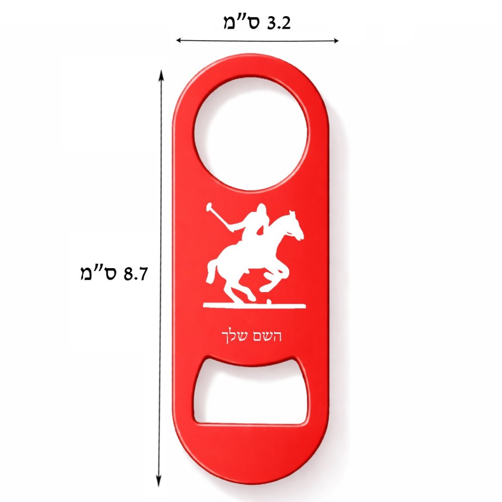 פותחן בקבוקים בעיצוב אישי עם השם שלך בעיצוב שחקן פולו - סוס. את השם המבוקש ניתן לציין בהזמנה, אם לא צויין אנחנו ניצור קשר לבירור.