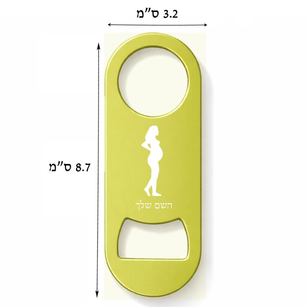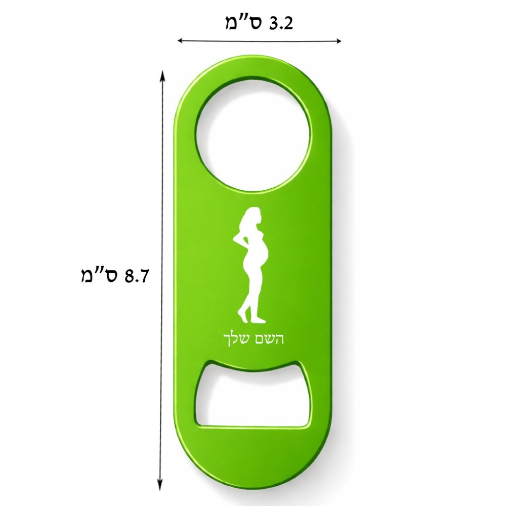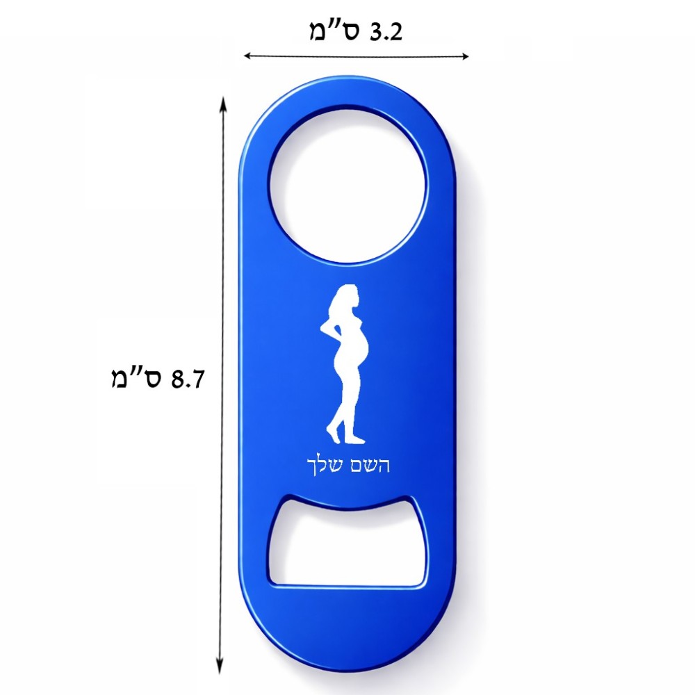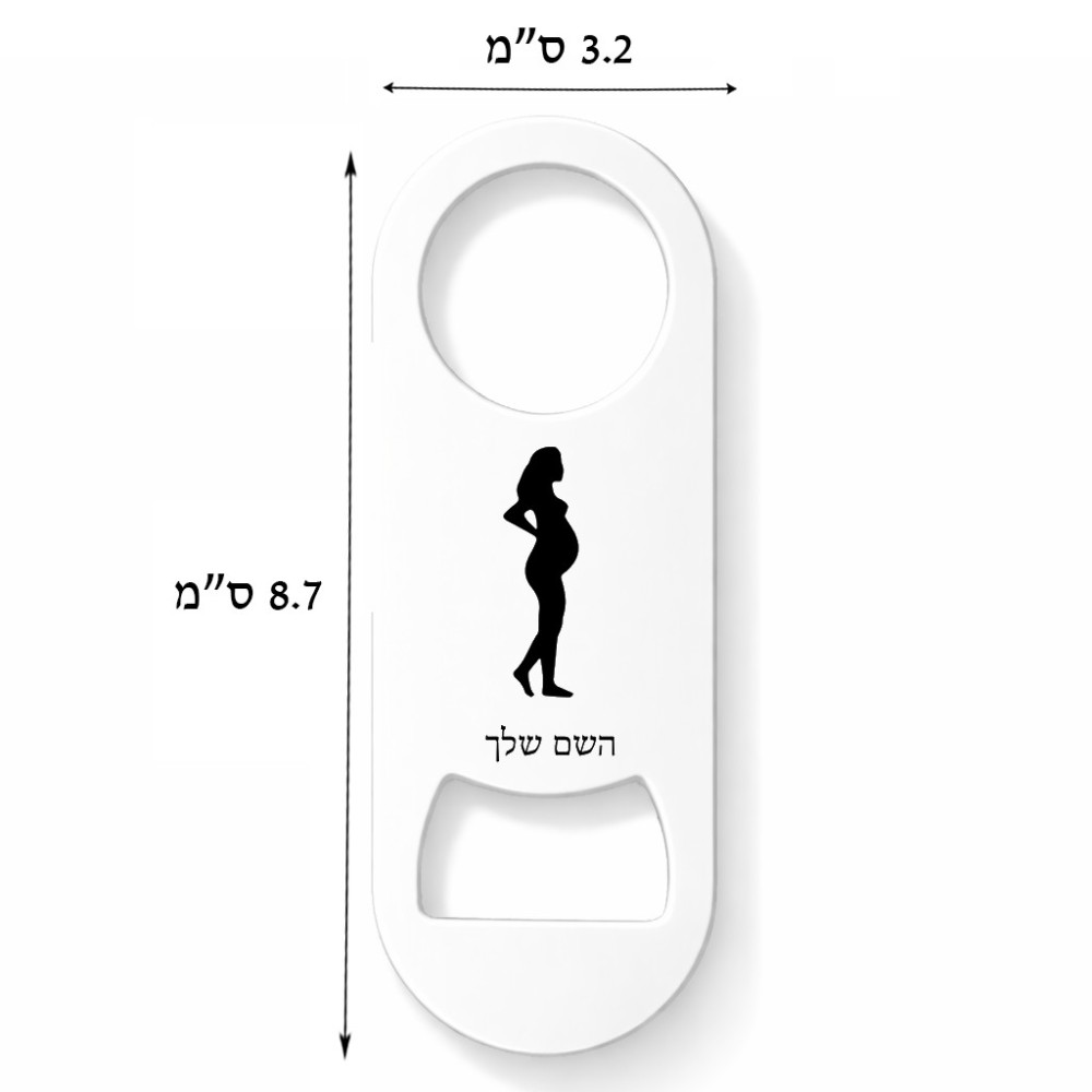 פותחן בקבוקים בעיצוב אישי עם השם שלך בעיצוב אישה בהריון גודל הפותחן 3.2 × 8.7 ס"מ