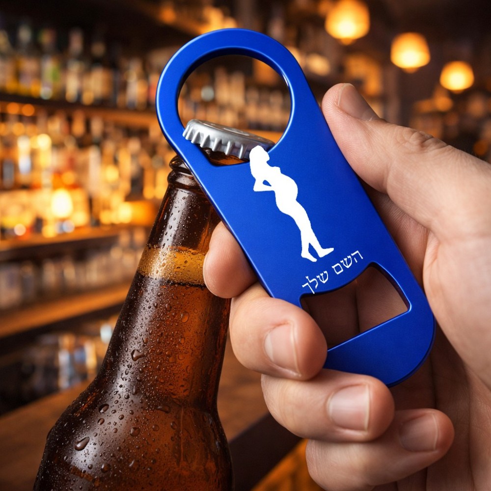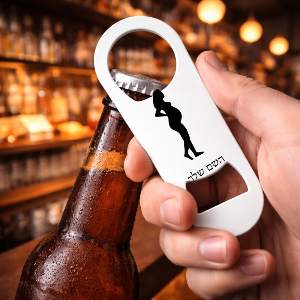 פותחן בקבוקים בעיצוב אישי עם השם שלך בעיצוב אישה בהריון. את השם המבוקש ניתן לציין בהזמנה, אם לא צויין אנחנו ניצור קשר לבירור.