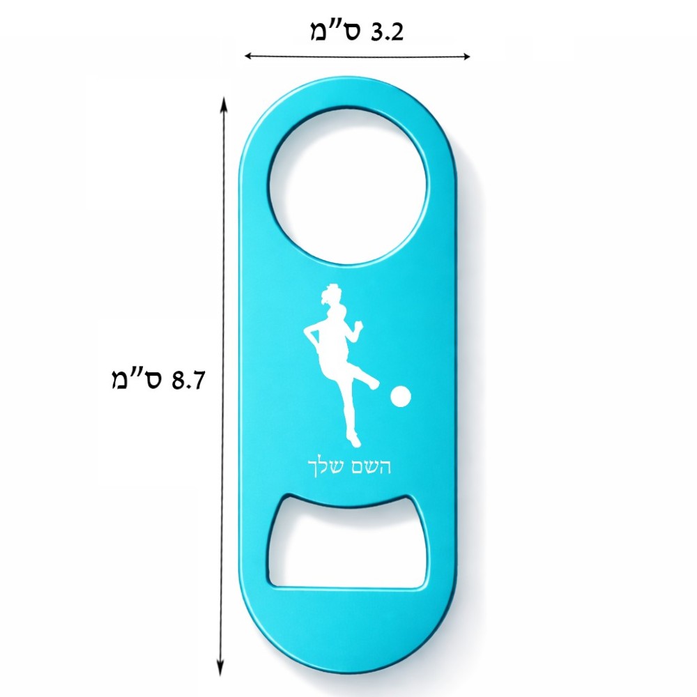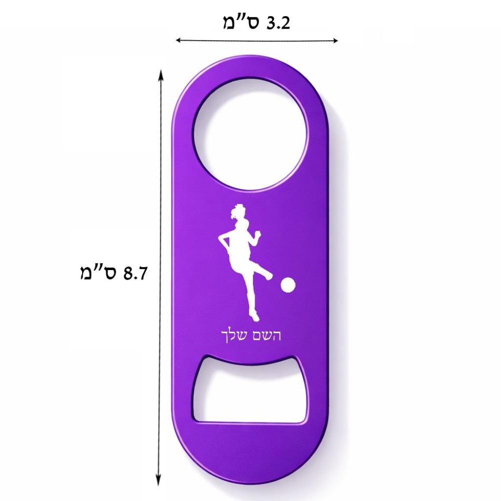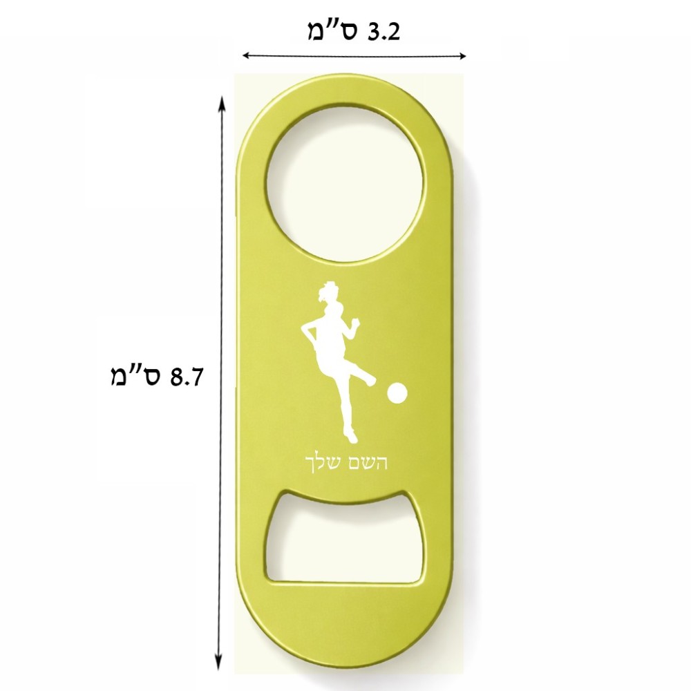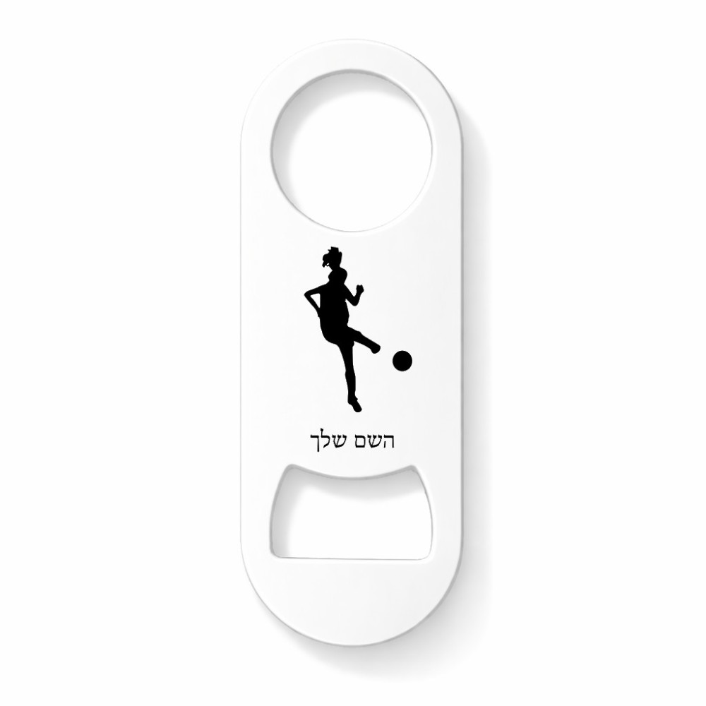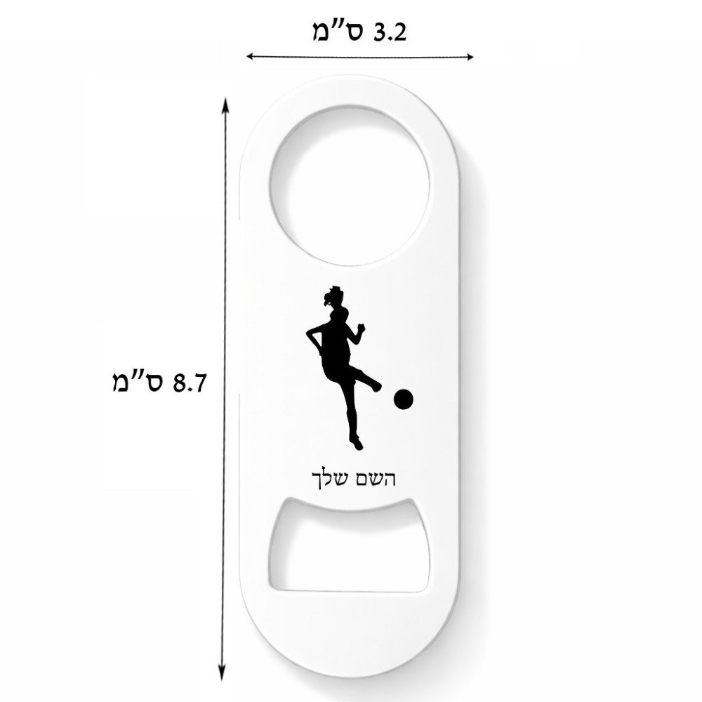 פותחן בקבוקים בעיצוב אישי עם השם שלך בעיצוב שחקנית כדורגל - אישה. את השם המבוקש ניתן לציין בהזמנה, אם לא צויין אנחנו ניצור קשר לבירור.