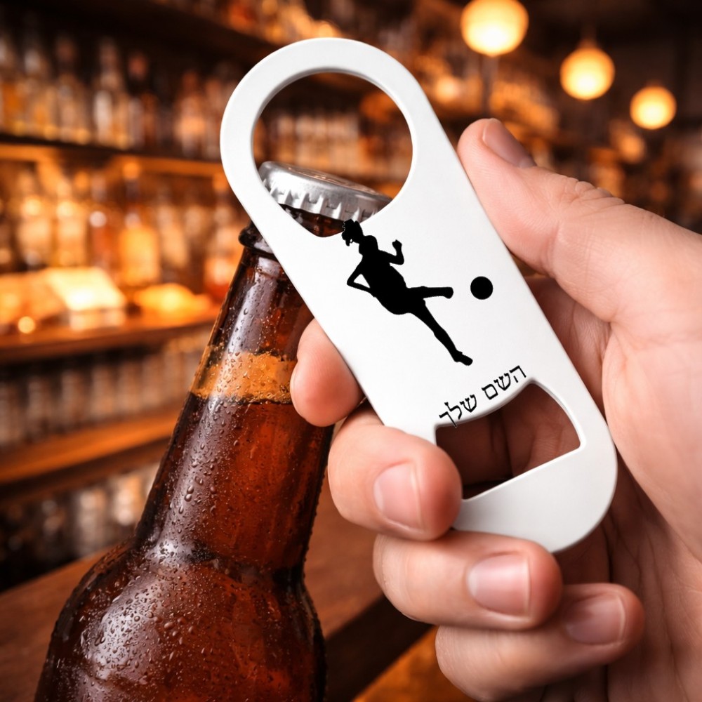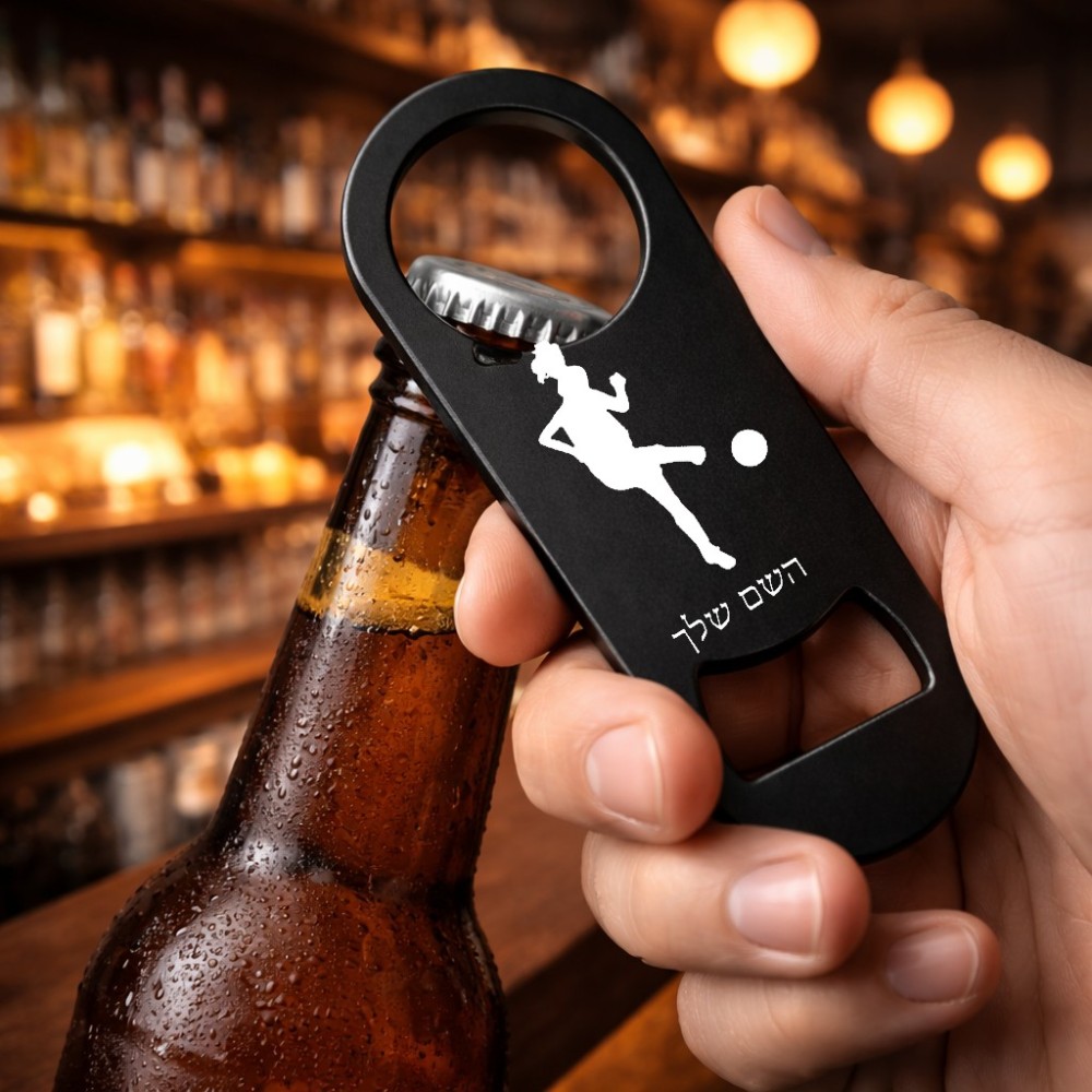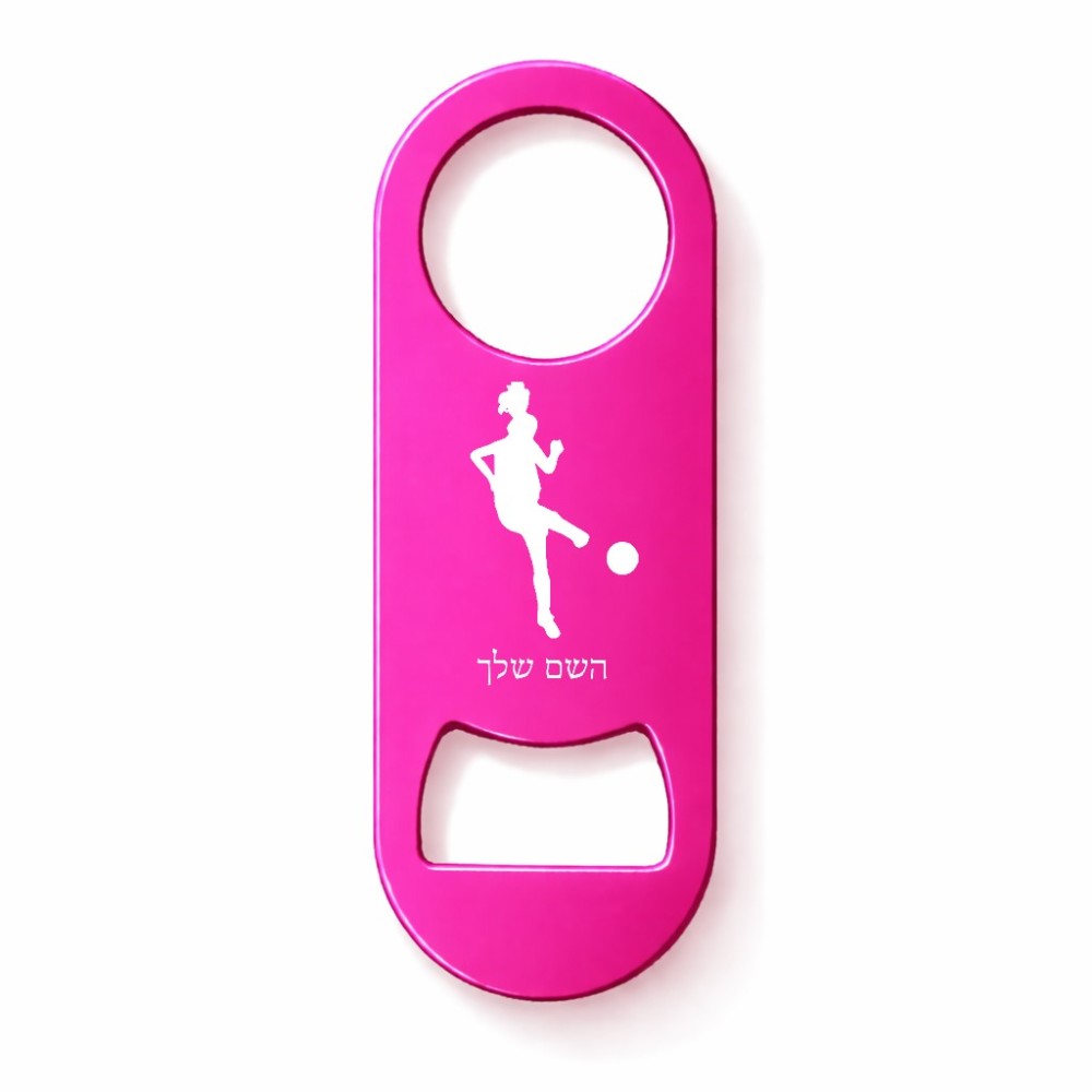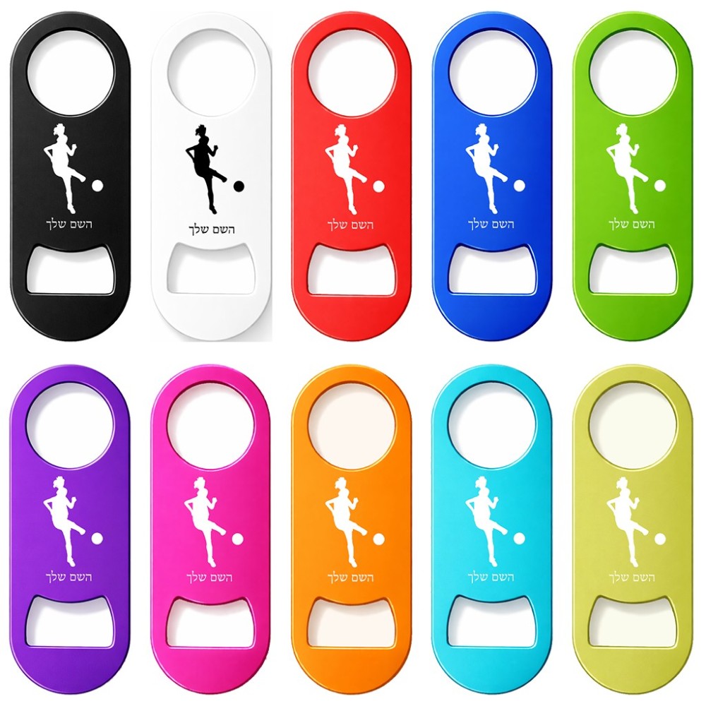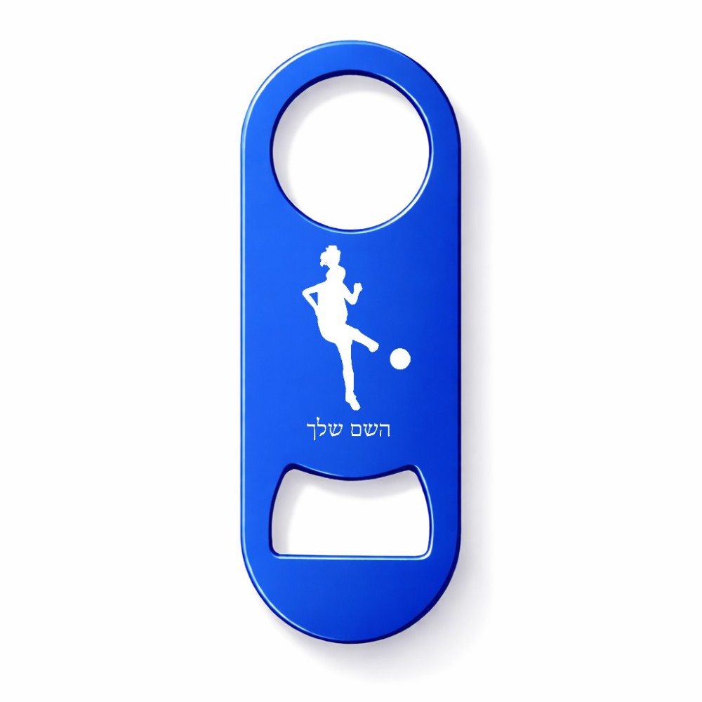 פותחן בקבוקים בעיצוב אישי עם השם שלך בעיצוב שחקנית כדורגל - אישה. את השם המבוקש ניתן לציין בהזמנה, אם לא צויין אנחנו ניצור קשר לבירור.