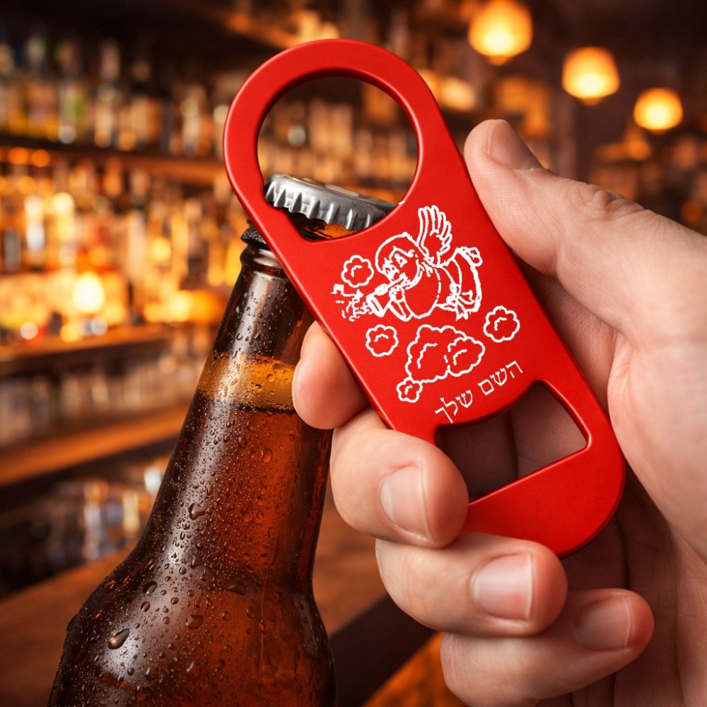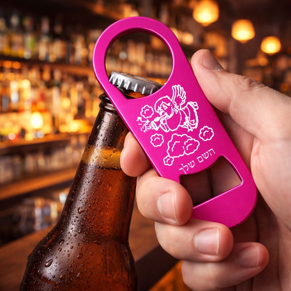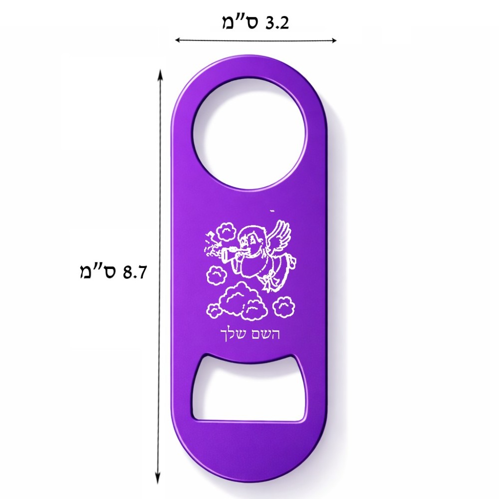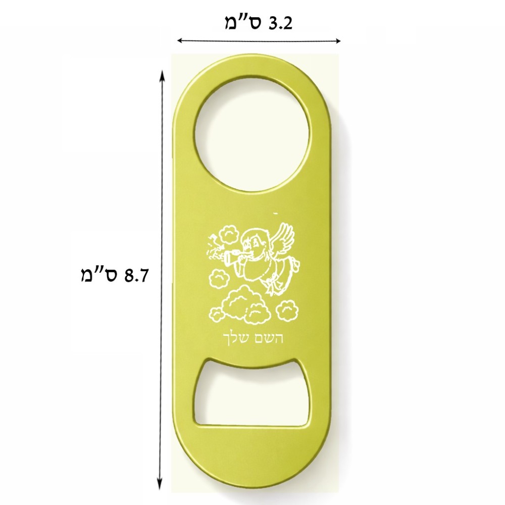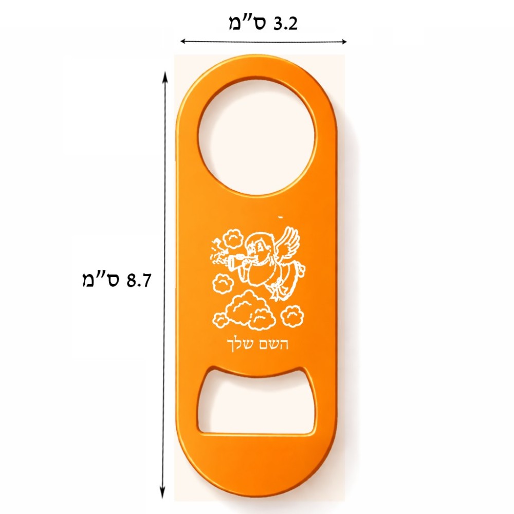 פותחן בקבוקים בעיצוב אישי עם השם שלך בעיצוב מחזמר אנג'ל 2 גודל הפותחן 3.2 × 8.7 ס"מ