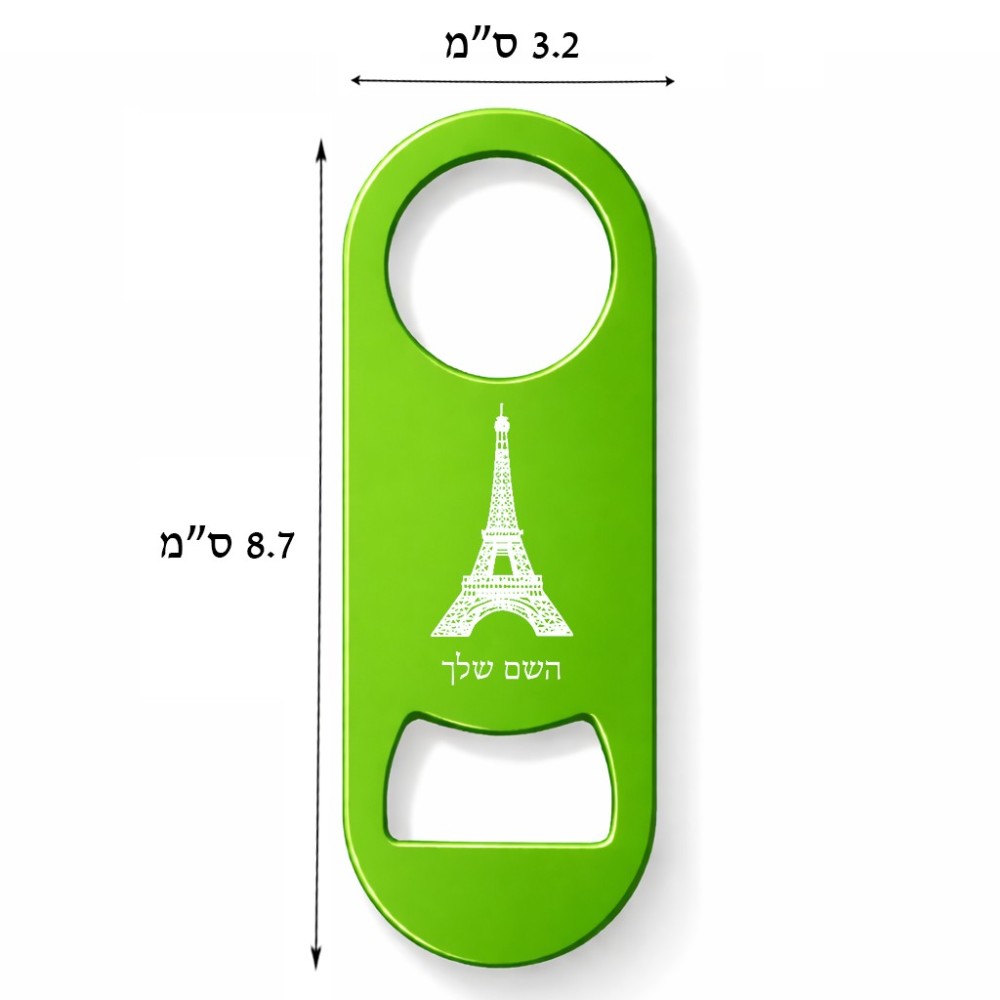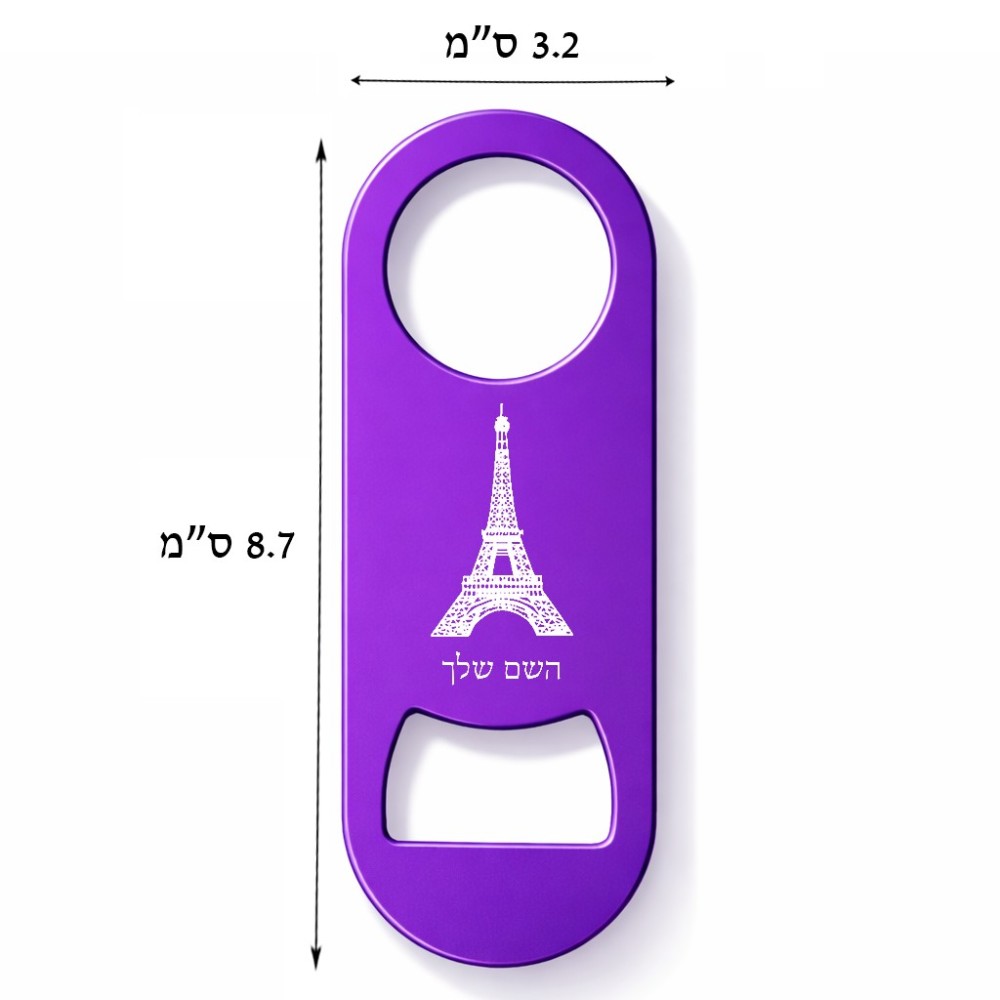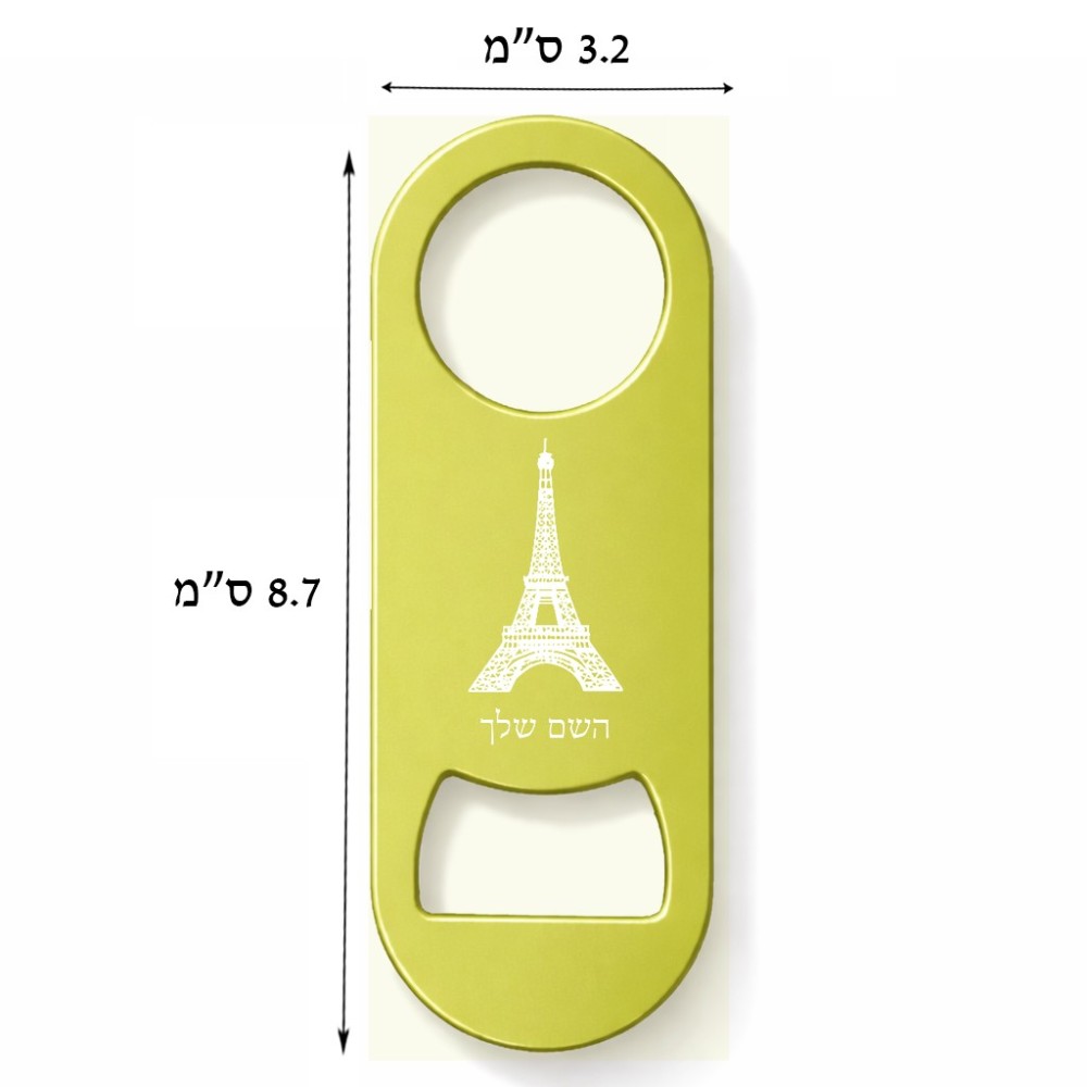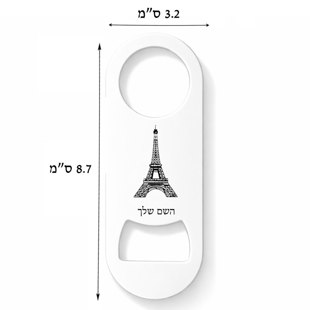 פותחן בקבוקים בעיצוב אישי עם השם שלך בעיצוב מגדל אייפל. את השם המבוקש ניתן לציין בהזמנה, אם לא צויין אנחנו ניצור קשר לבירור.
