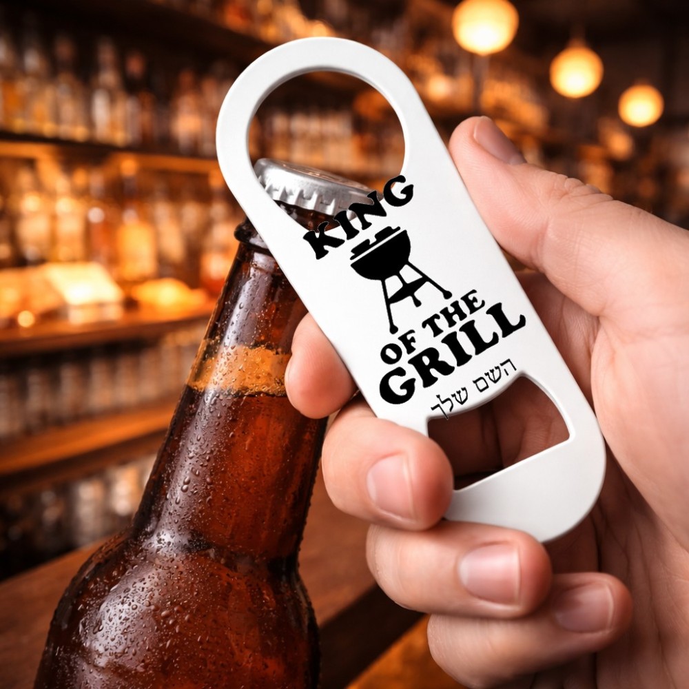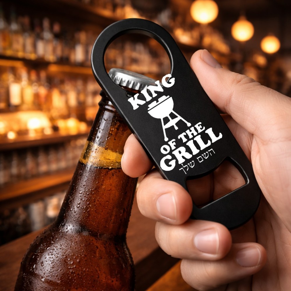 פותחן בקבוקים בעיצוב אישי עם השם שלך בעיצוב מלך הגריל. את השם המבוקש ניתן לציין בהזמנה, אם לא צויין אנחנו ניצור קשר לבירור.