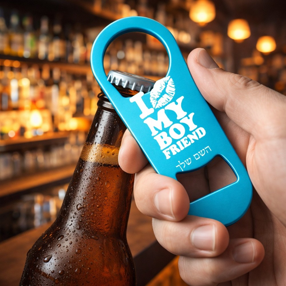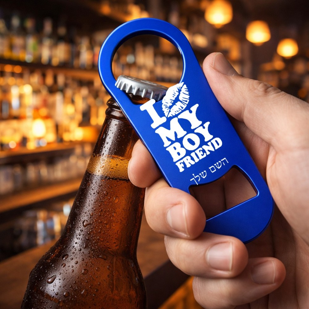 פותחן בקבוקים בעיצוב אישי עם השם שלך בעיצוב נשקי את חבר שלי. את השם המבוקש ניתן לציין בהזמנה, אם לא צויין אנחנו ניצור קשר לבירור.