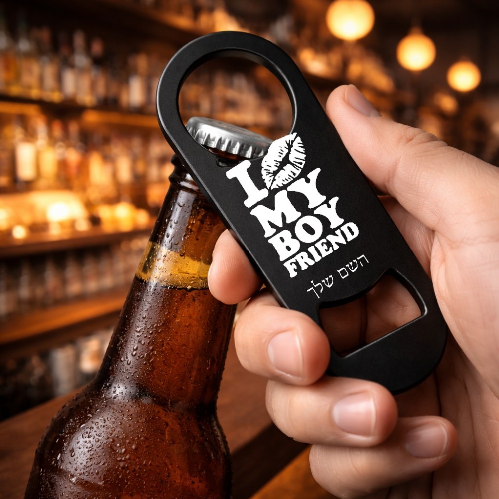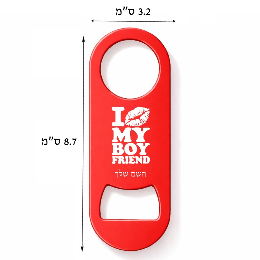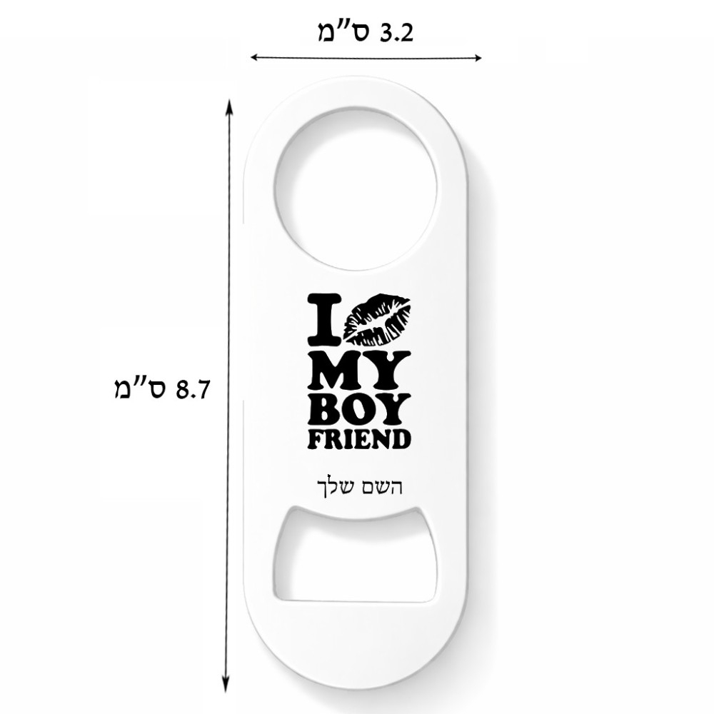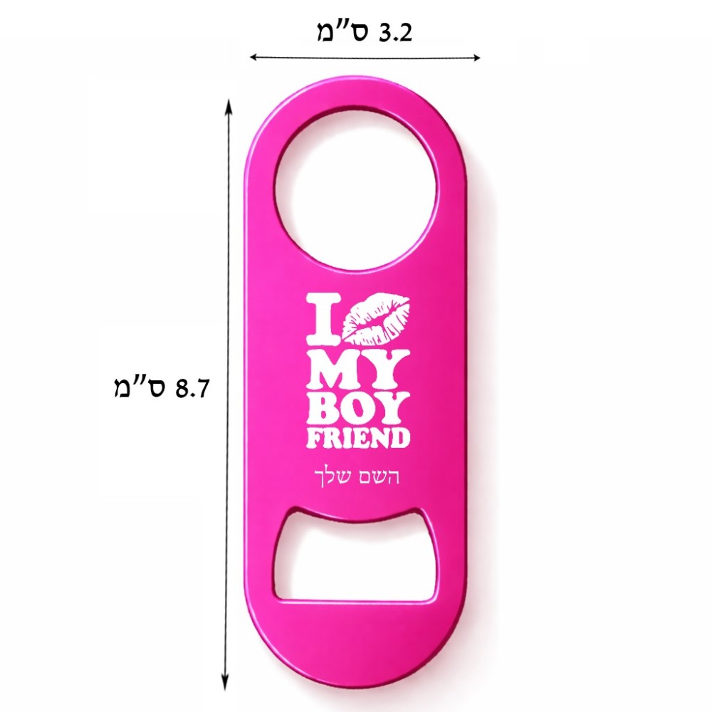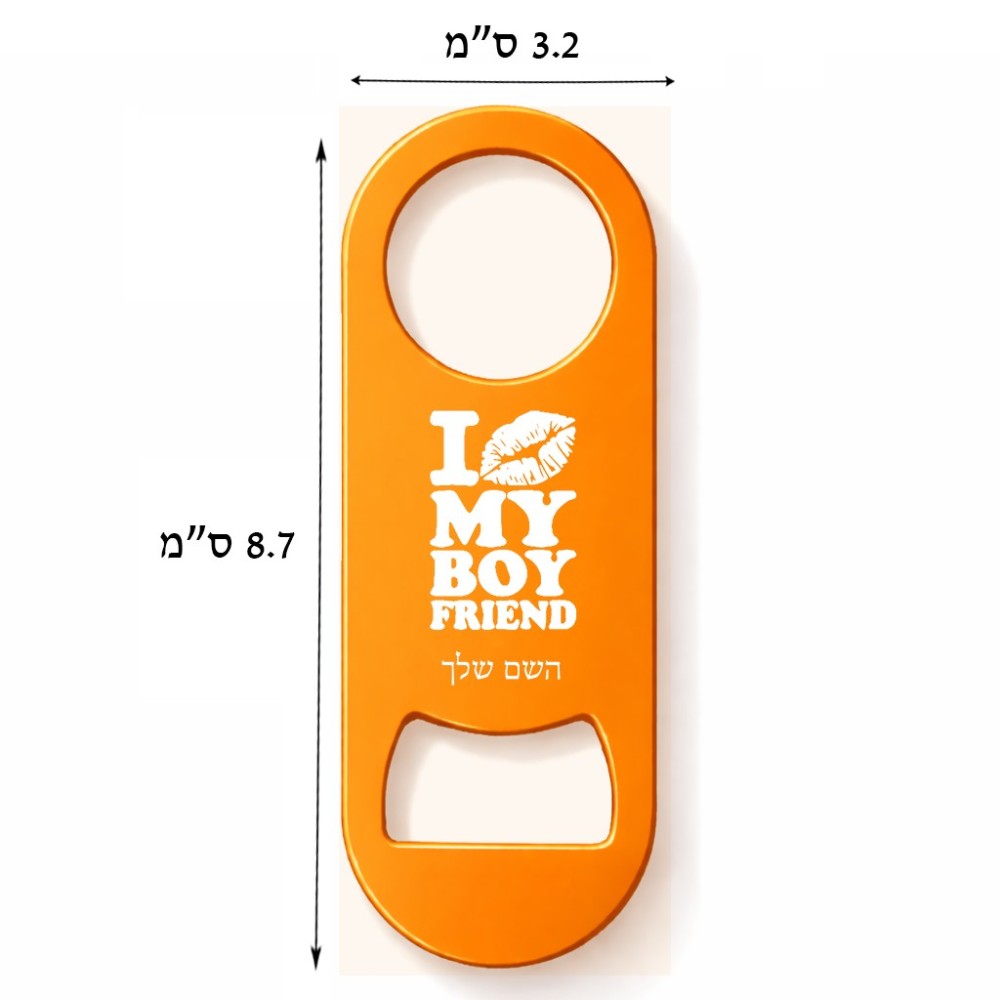 פותחן בקבוקים בעיצוב אישי עם השם שלך בעיצוב נשקי את חבר שלי גודל הפותחן 3.2 × 8.7 ס"מ