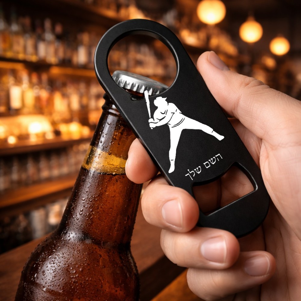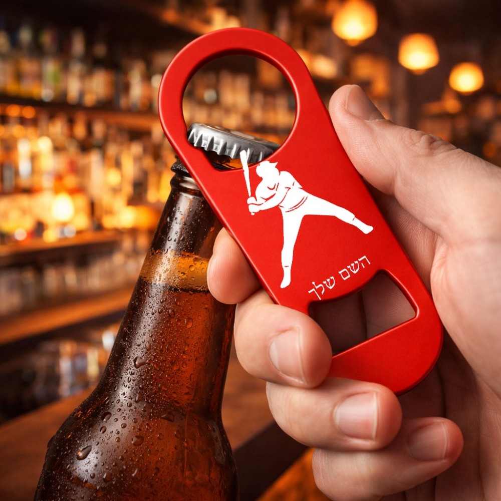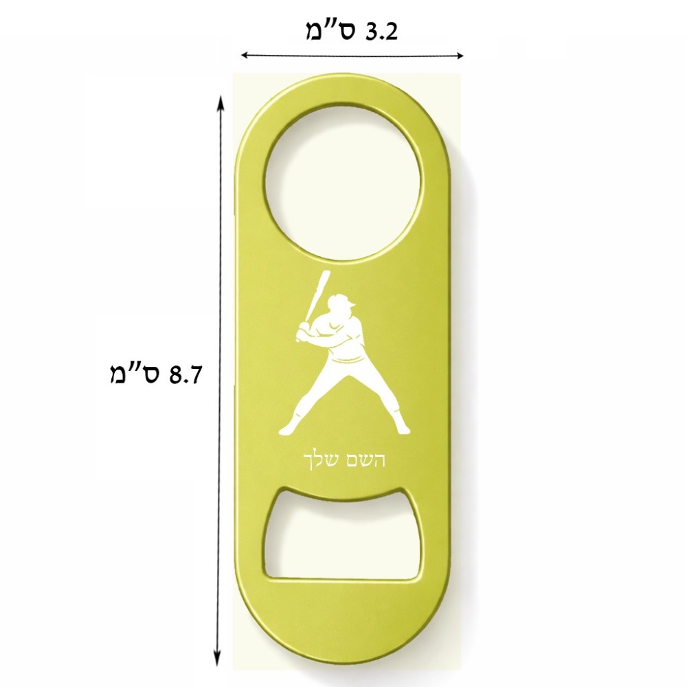 פותחן בקבוקים בעיצוב אישי עם השם שלך בעיצוב שחקן בייסבול. את השם המבוקש ניתן לציין בהזמנה, אם לא צויין אנחנו ניצור קשר לבירור.