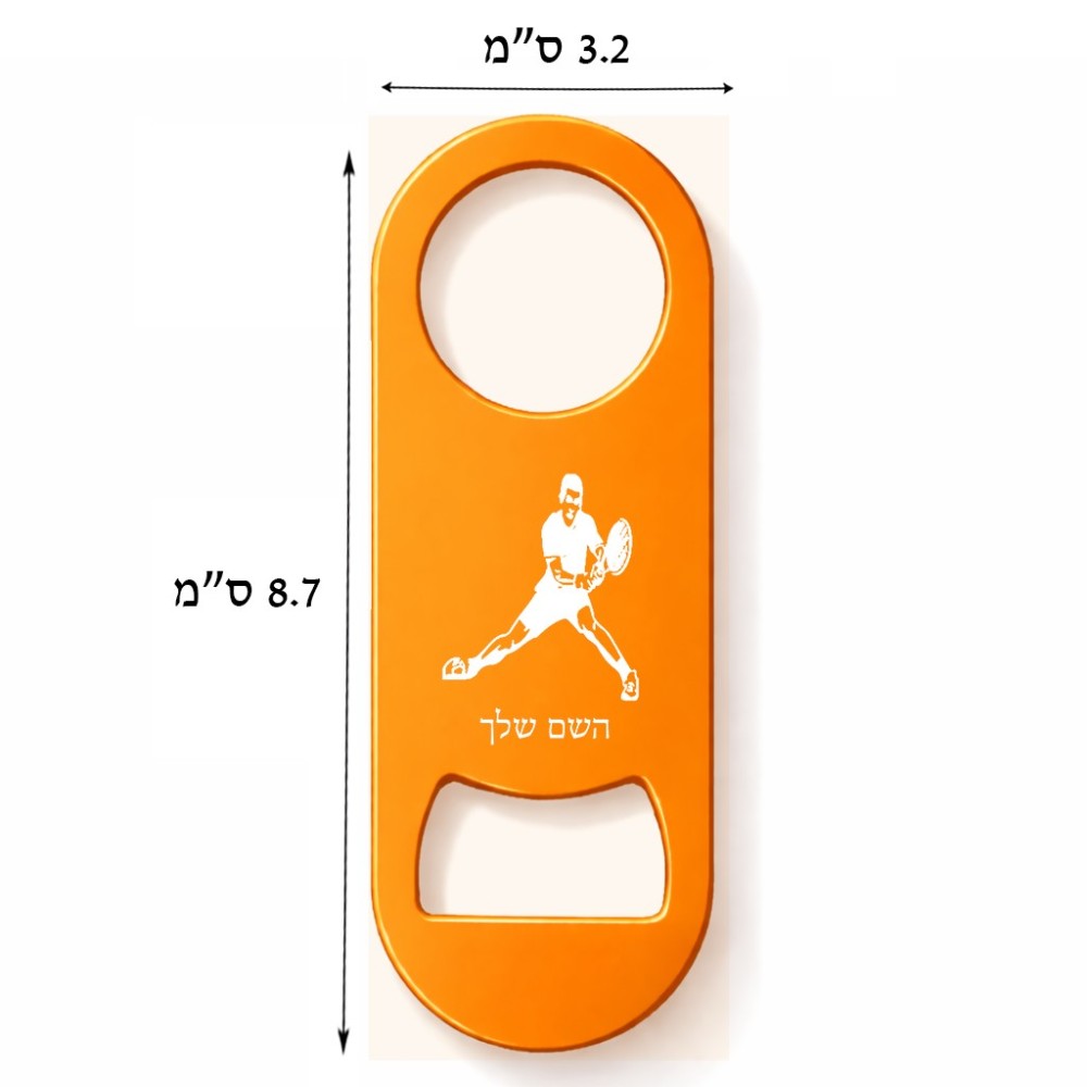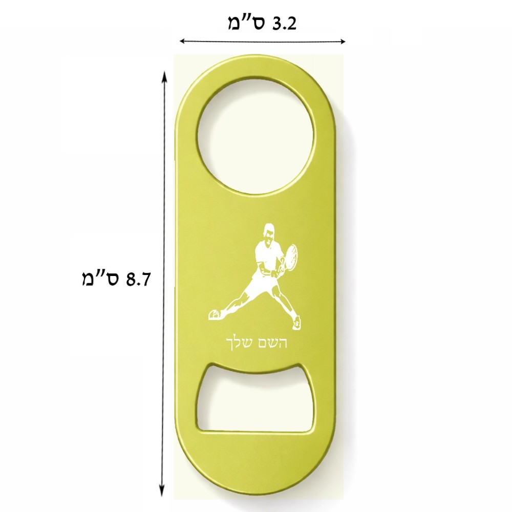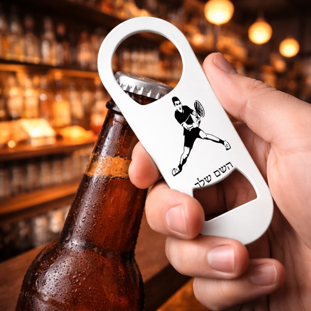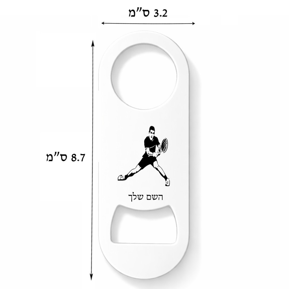 פותחן בקבוקים בעיצוב אישי עם השם שלך בעיצוב שחקן טניס. את השם המבוקש ניתן לציין בהזמנה, אם לא צויין אנחנו ניצור קשר לבירור.