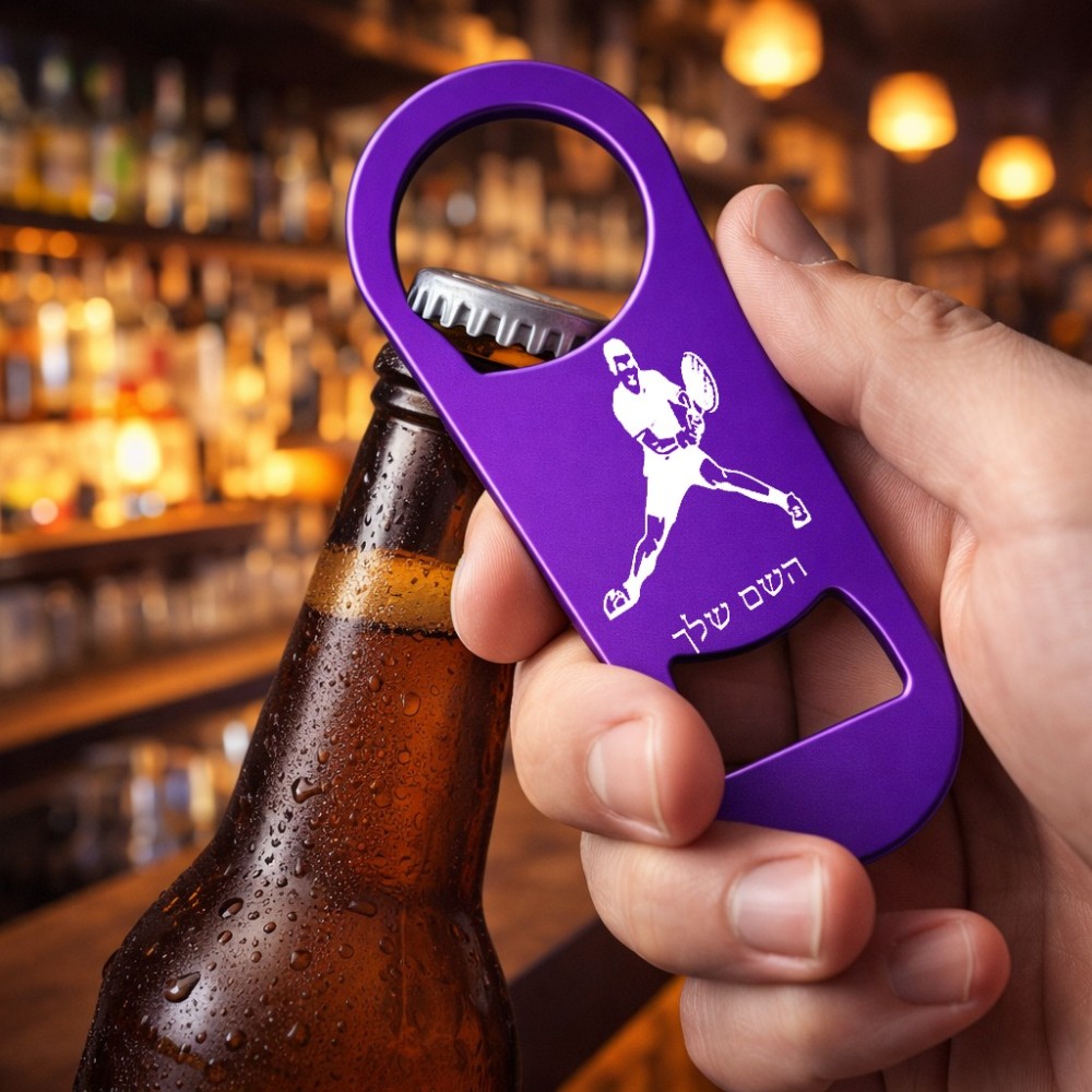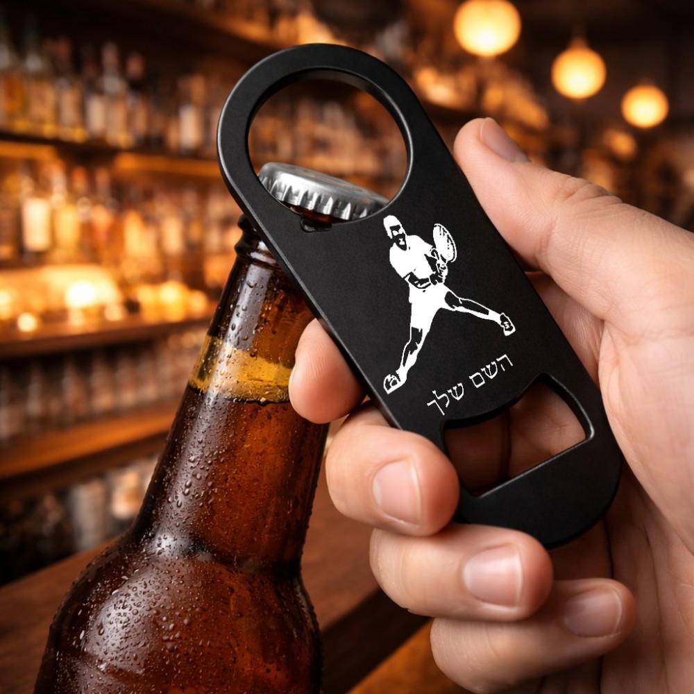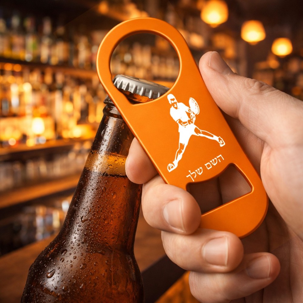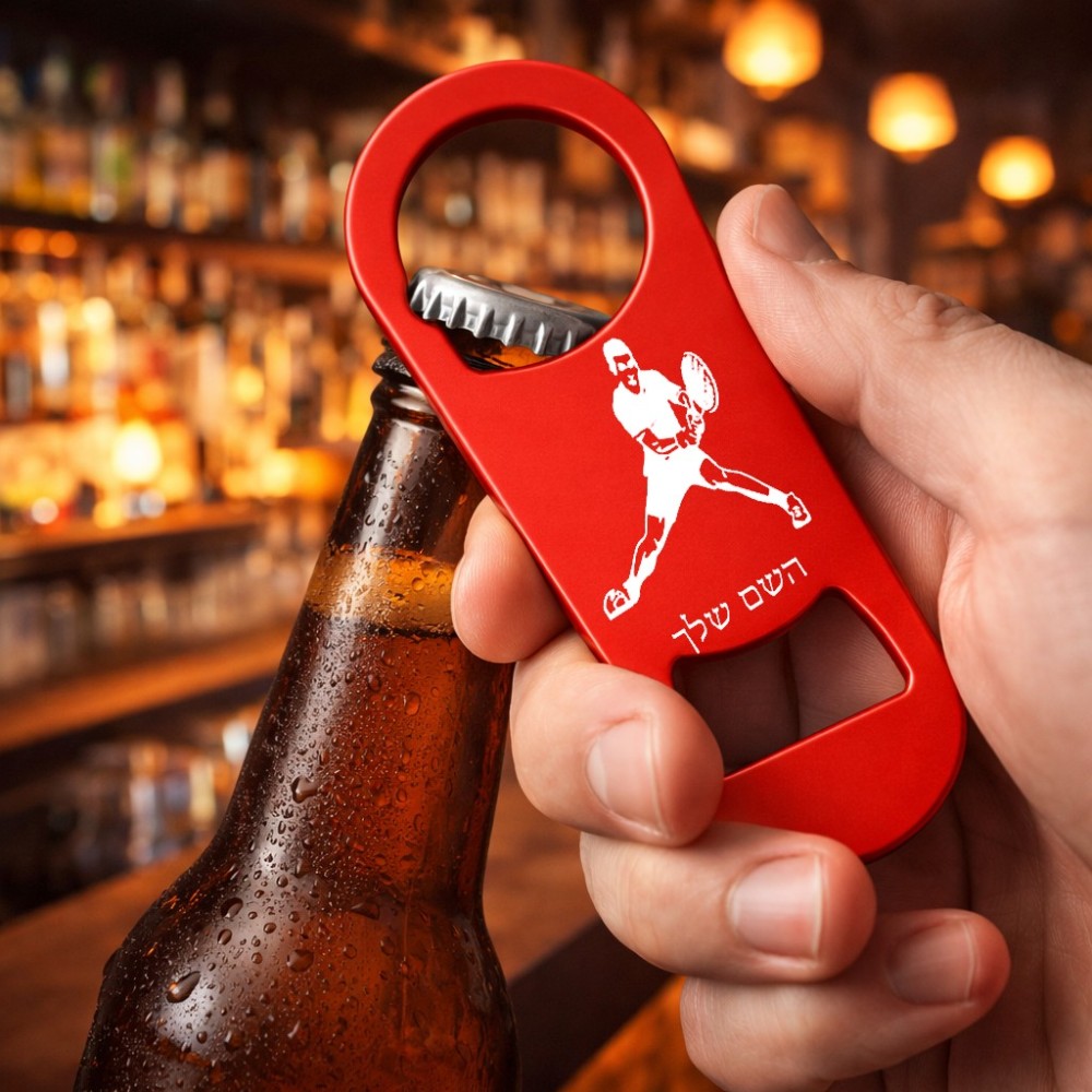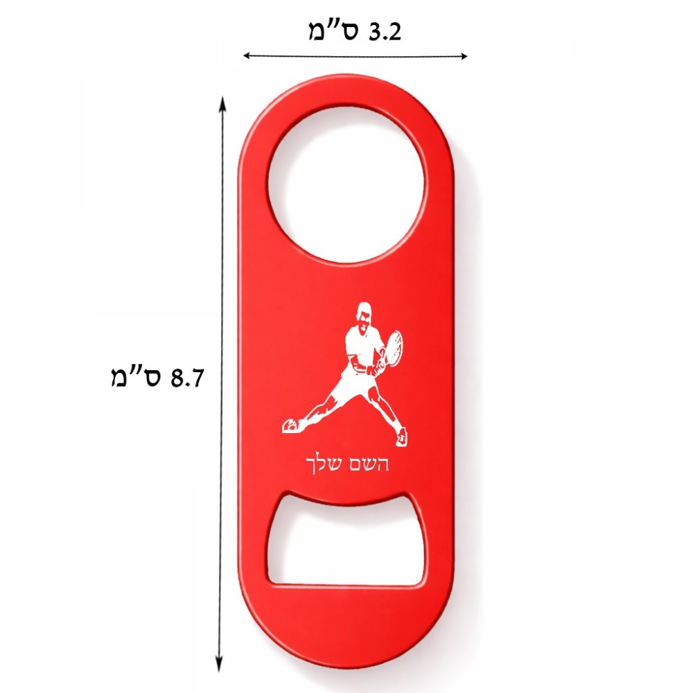 פותחן בקבוקים בעיצוב אישי עם השם שלך בעיצוב שחקן טניס. את השם המבוקש ניתן לציין בהזמנה, אם לא צויין אנחנו ניצור קשר לבירור.
