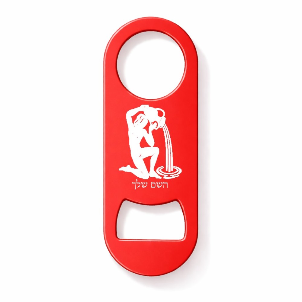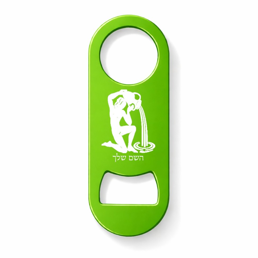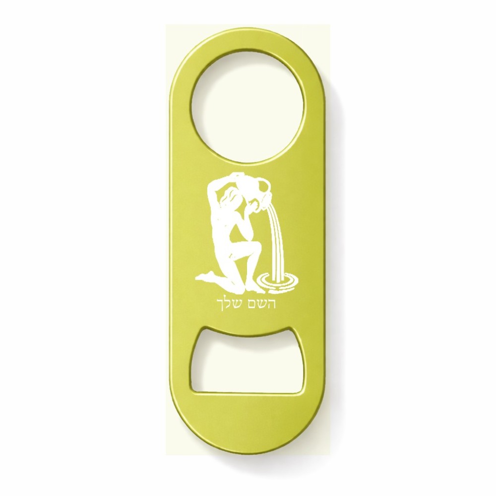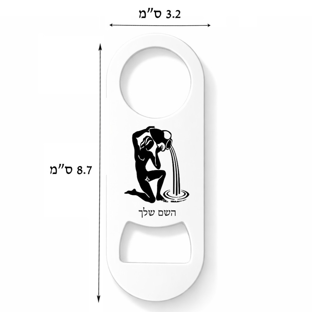 פותחן בקבוקים בעיצוב אישי עם השם שלך בעיצוב מזלות - דלי גודל הפותחן 3.2 × 8.7 ס"מ