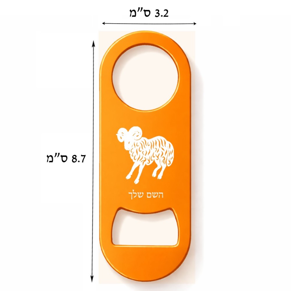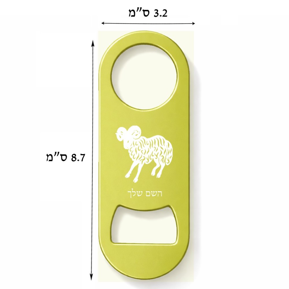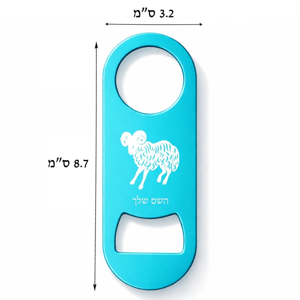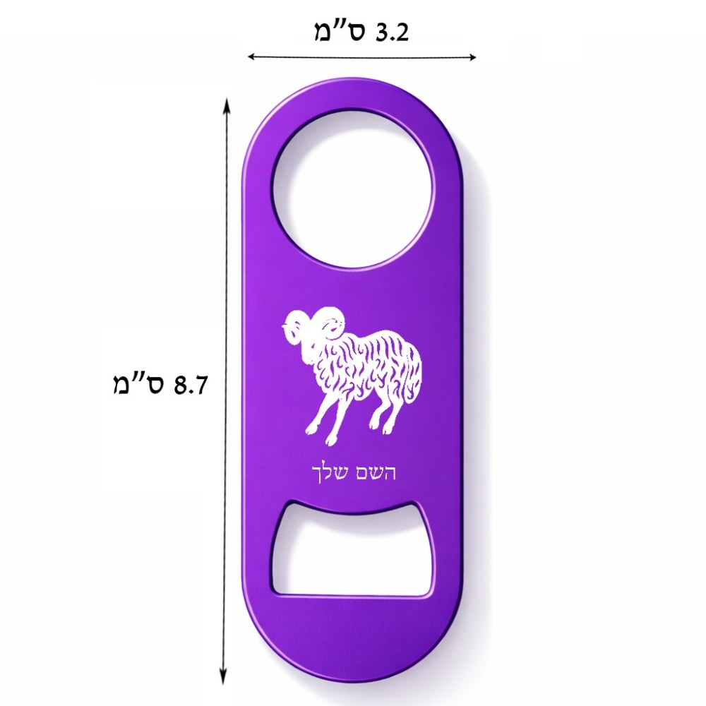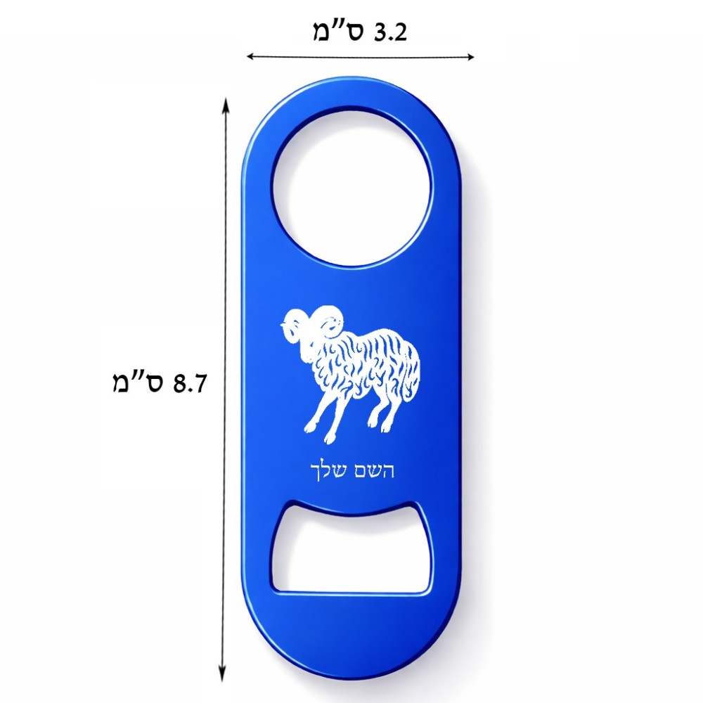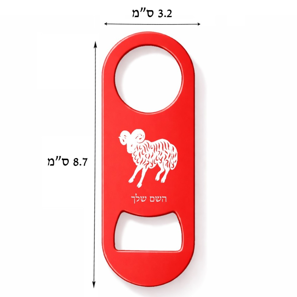 פותחן בקבוקים בעיצוב אישי עם השם שלך בעיצוב מזלות - טלה גודל הפותחן 3.2 × 8.7 ס"מ