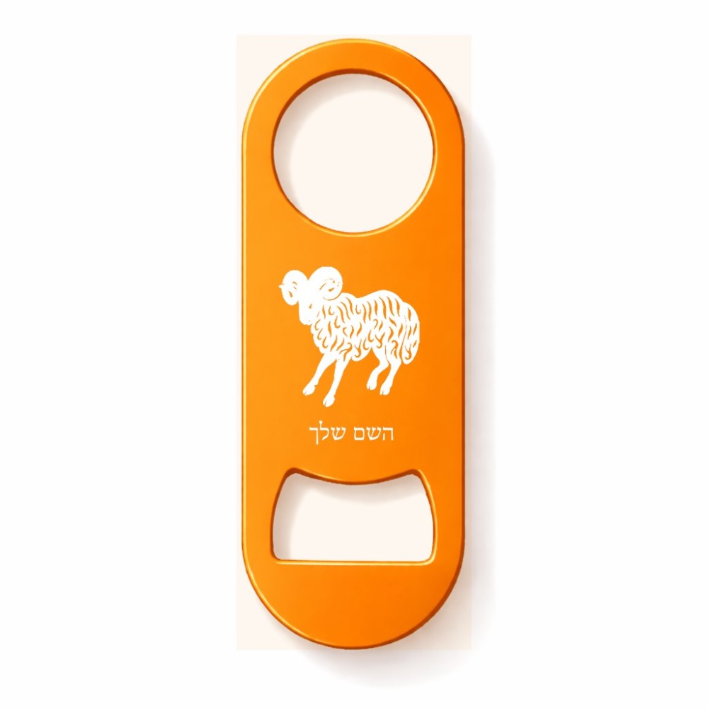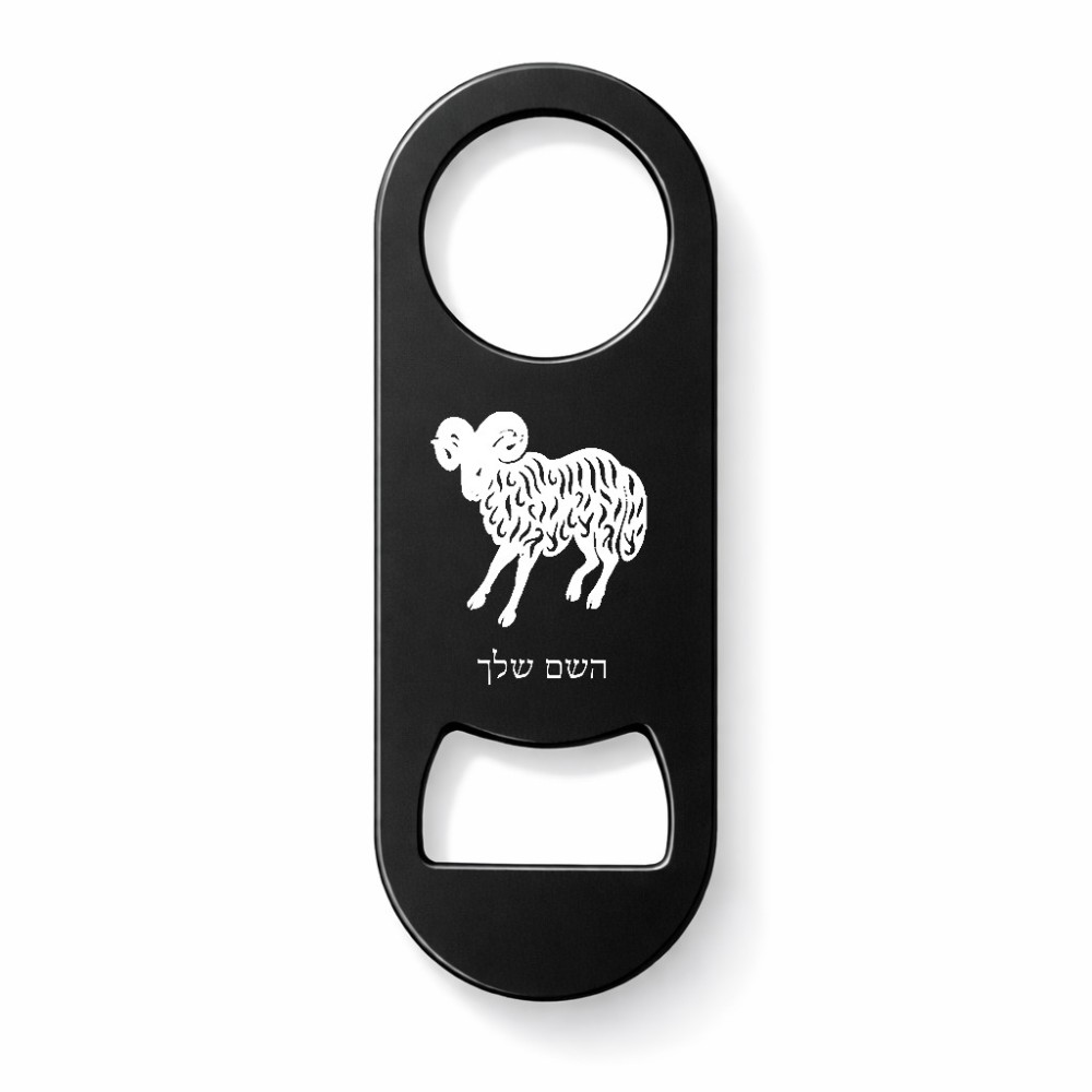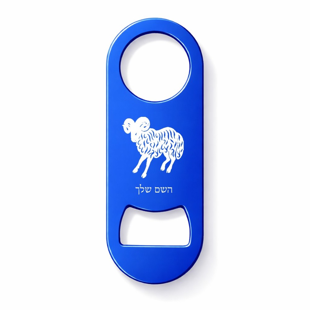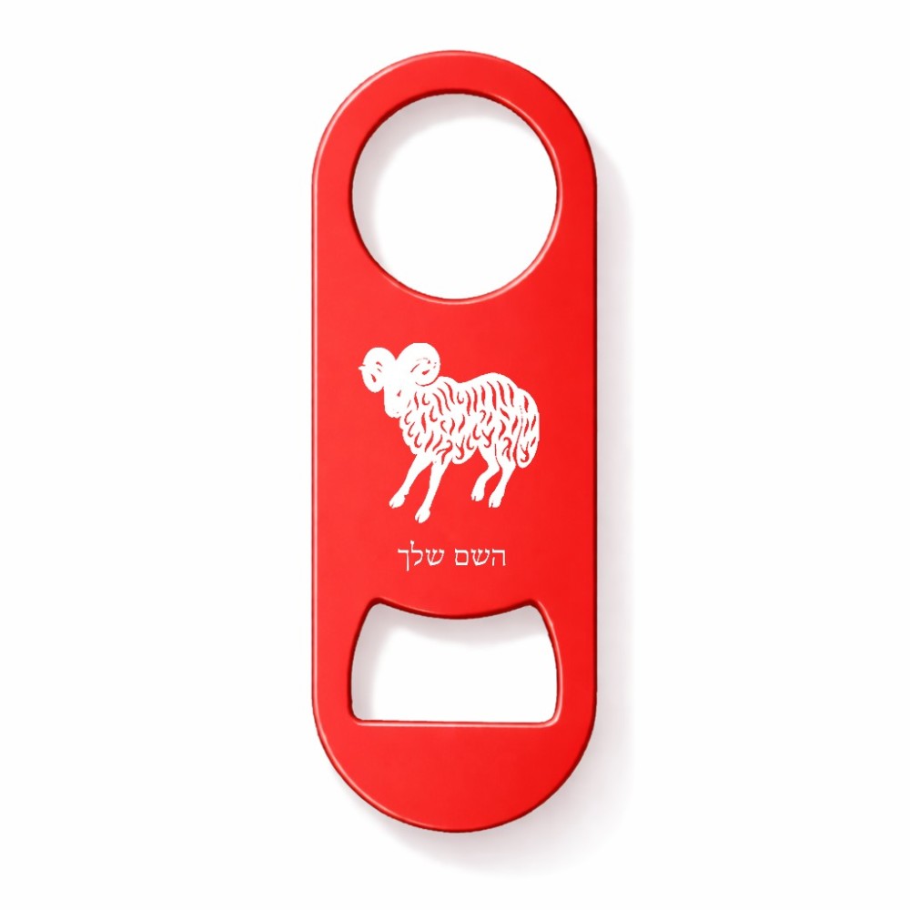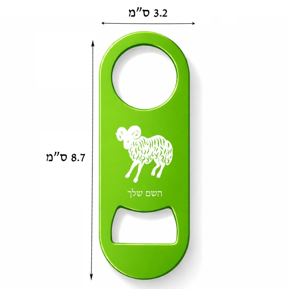 פותחן בקבוקים בעיצוב אישי עם השם שלך בעיצוב מזלות - טלה גודל הפותחן 3.2 × 8.7 ס"מ