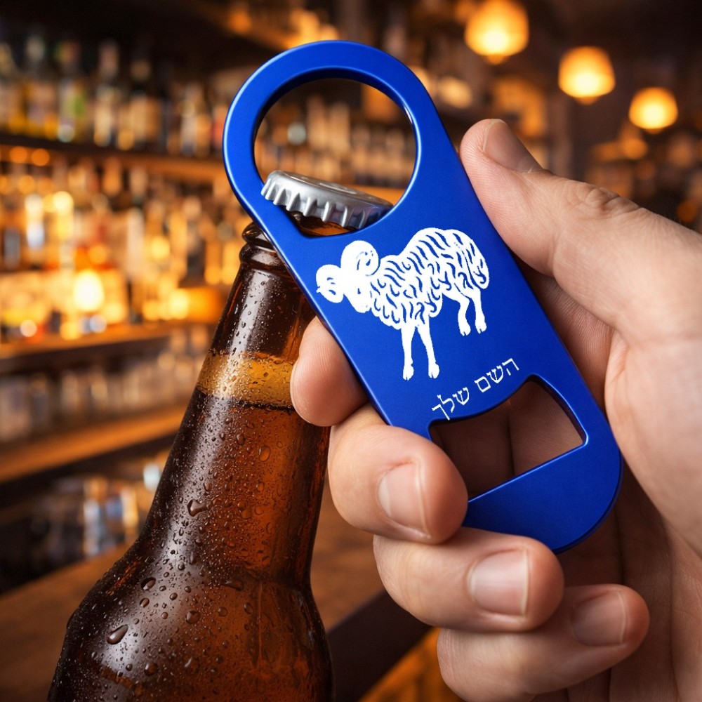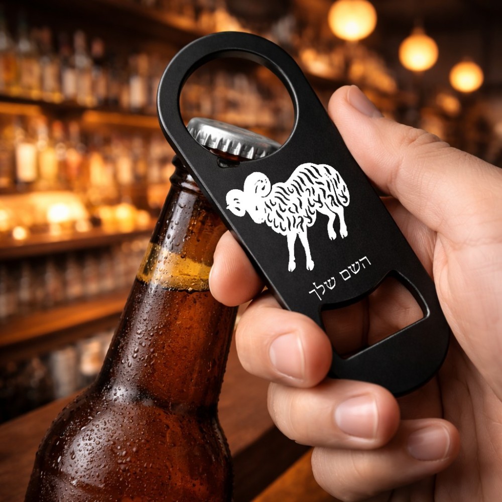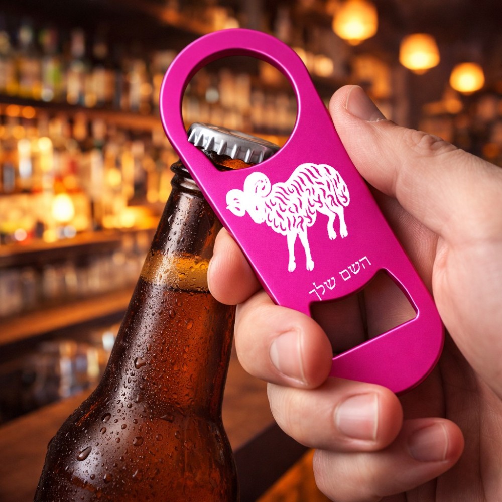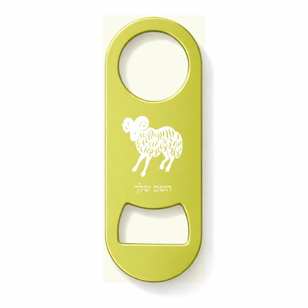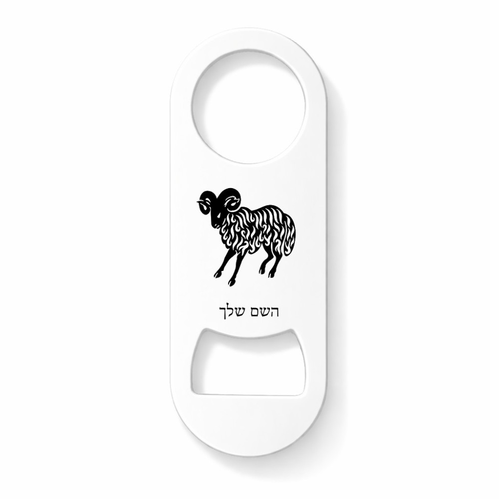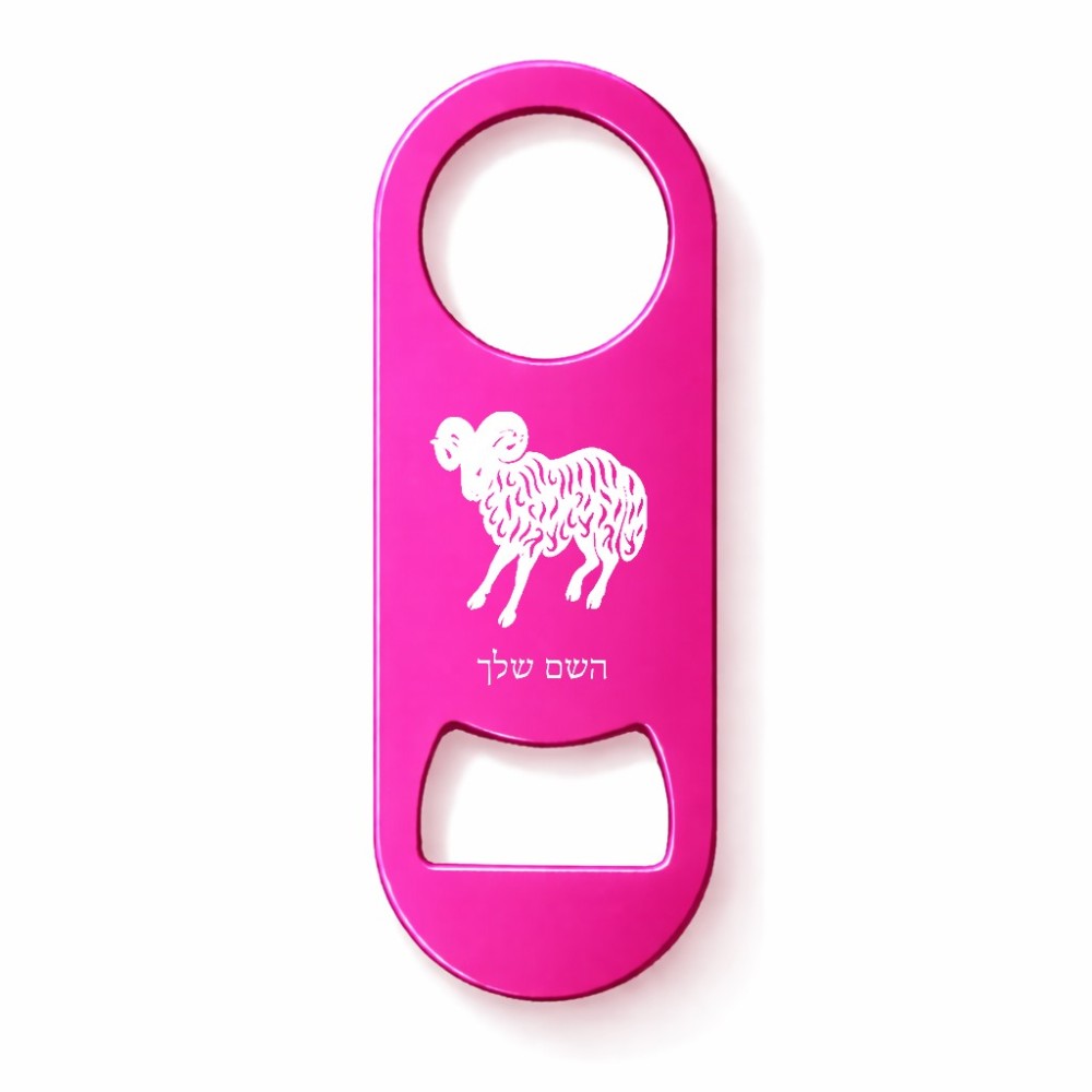 פותחן בקבוקים בעיצוב אישי עם השם שלך בעיצוב מזלות - טלה גודל הפותחן 3.2 × 8.7 ס"מ