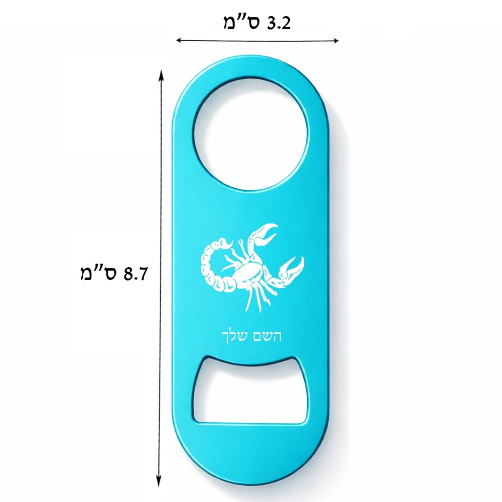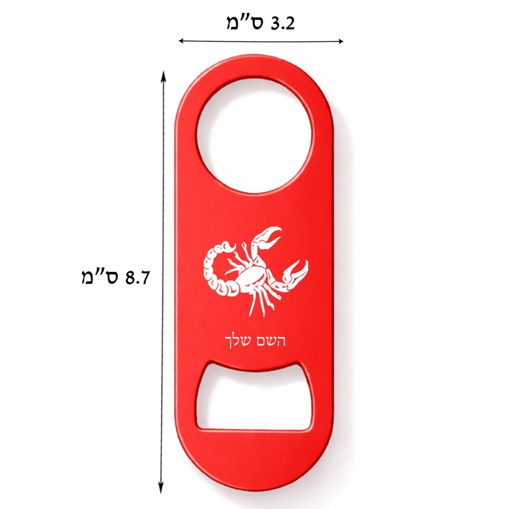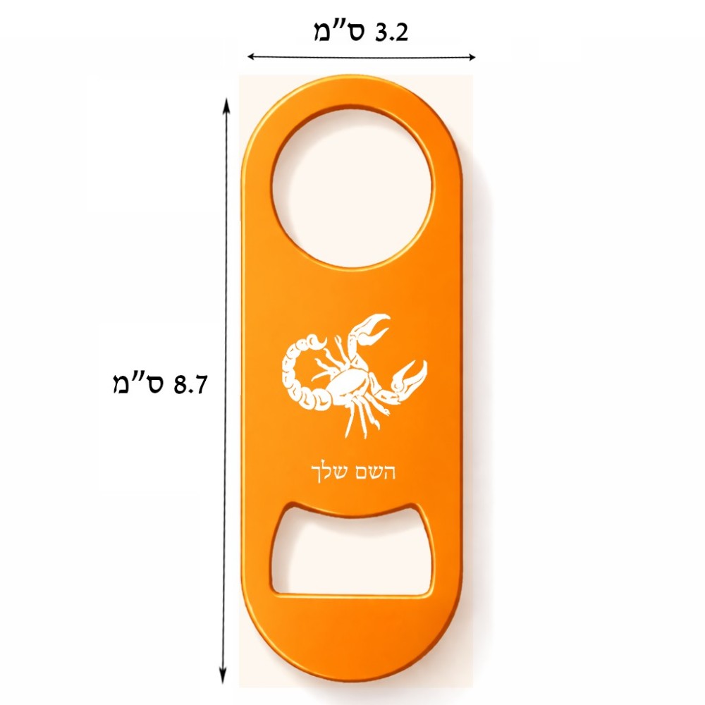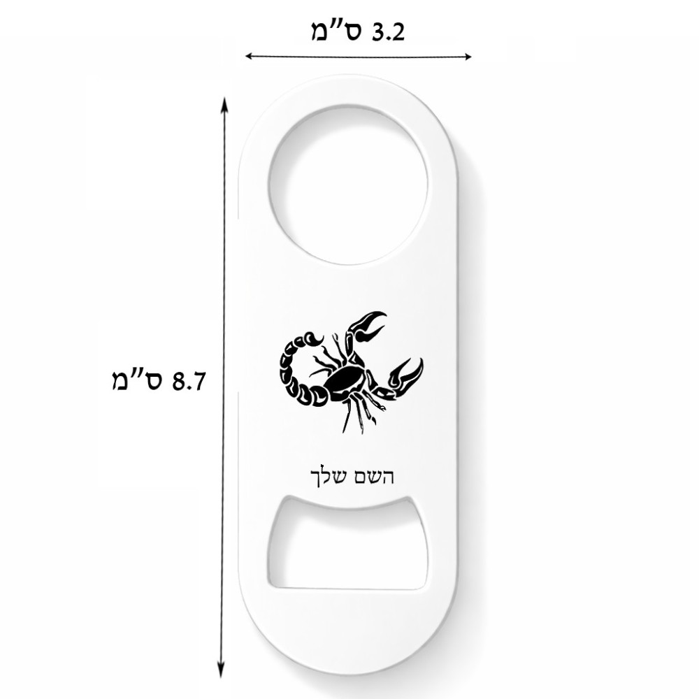פותחן בקבוקים בעיצוב אישי עם השם שלך בעיצוב מזלות - עקרב גודל הפותחן 3.2 × 8.7 ס"מ