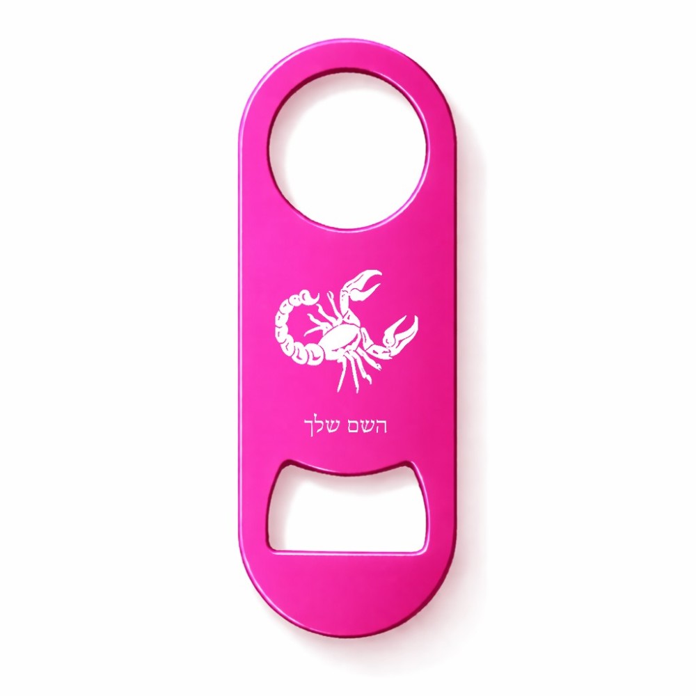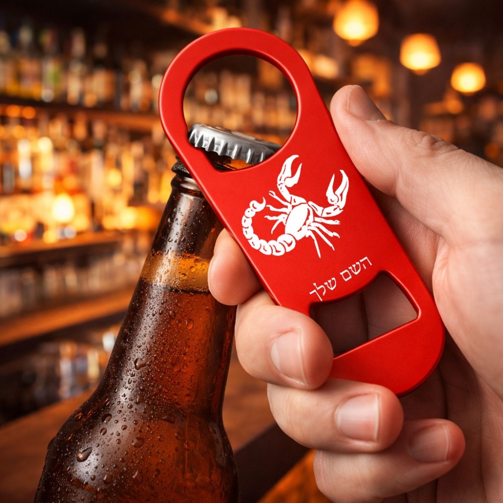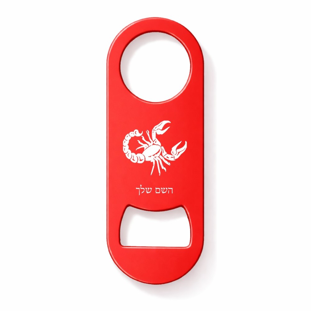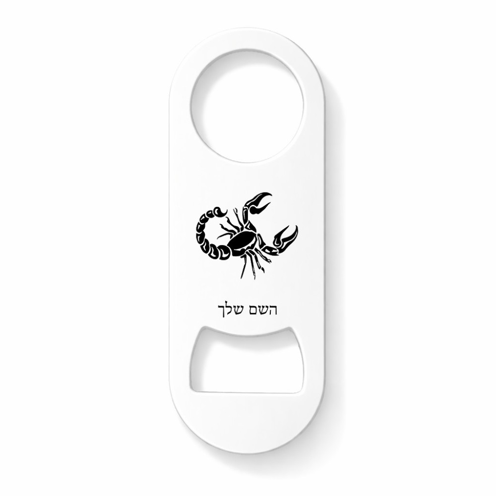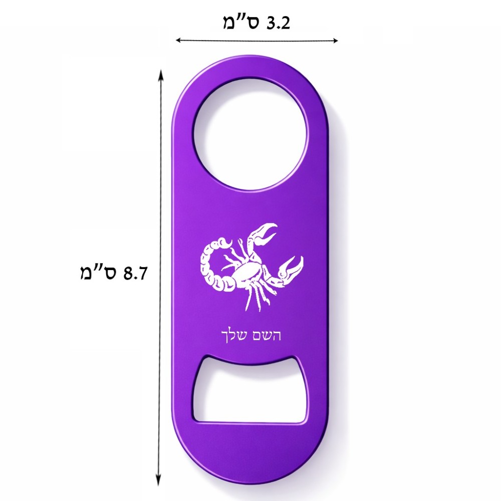 פותחן בקבוקים בעיצוב אישי עם השם שלך בעיצוב מזלות - עקרב גודל הפותחן 3.2 × 8.7 ס"מ