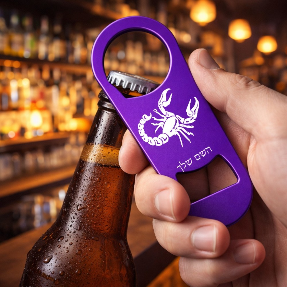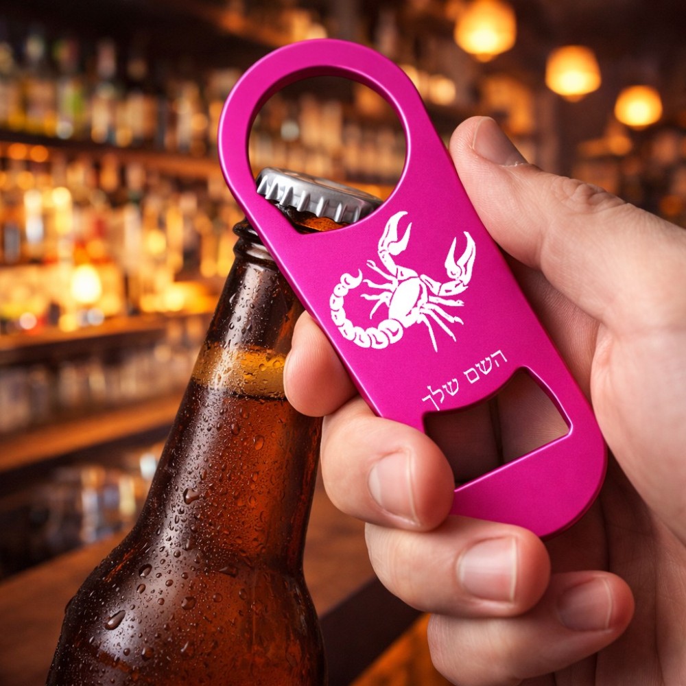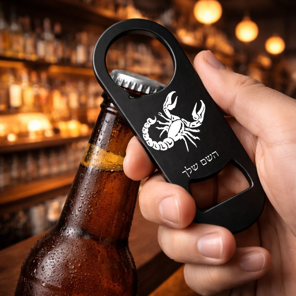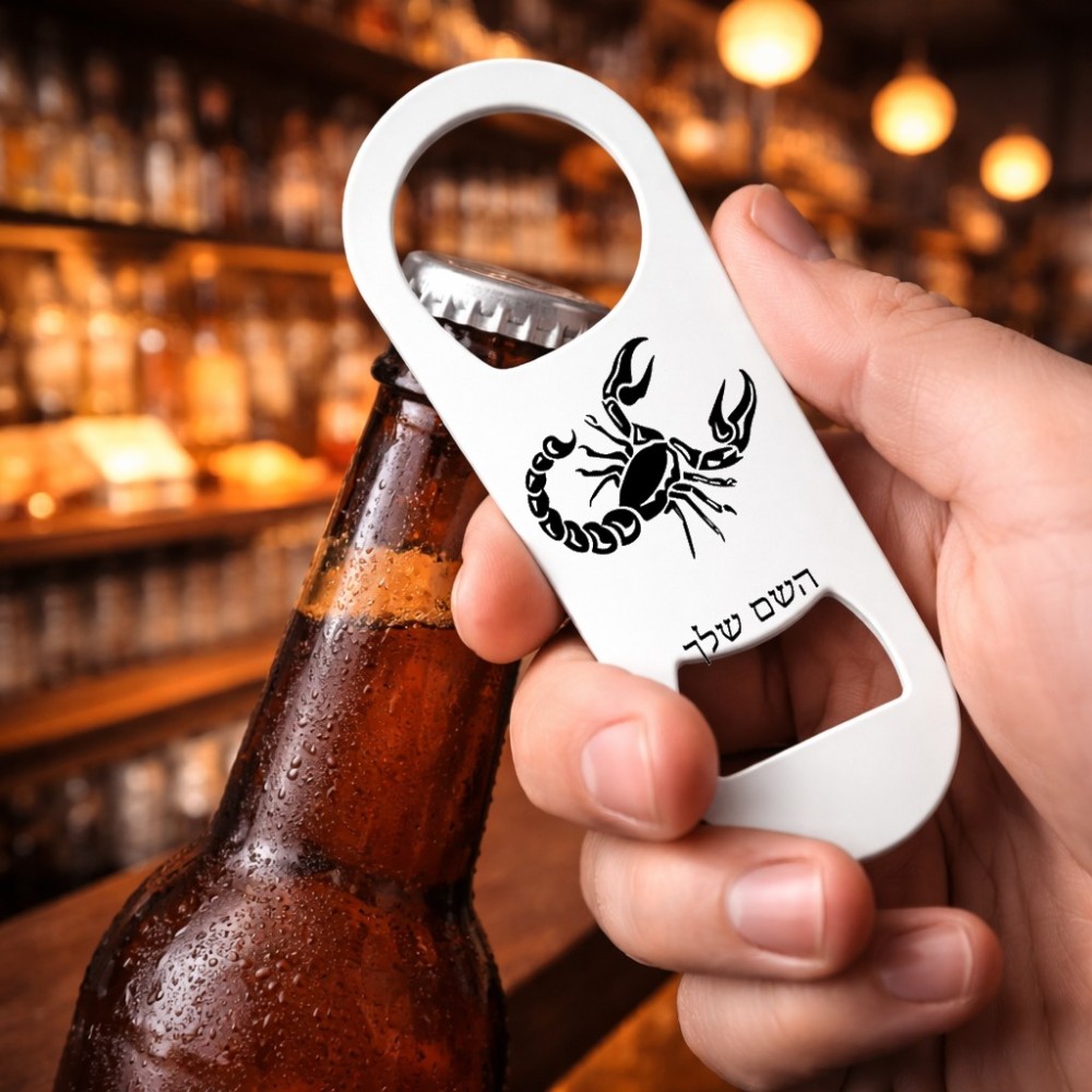 פותחן בקבוקים בעיצוב אישי עם השם שלך בעיצוב מזלות - עקרב. את השם המבוקש ניתן לציין בהזמנה, אם לא צויין אנחנו ניצור קשר לבירור.