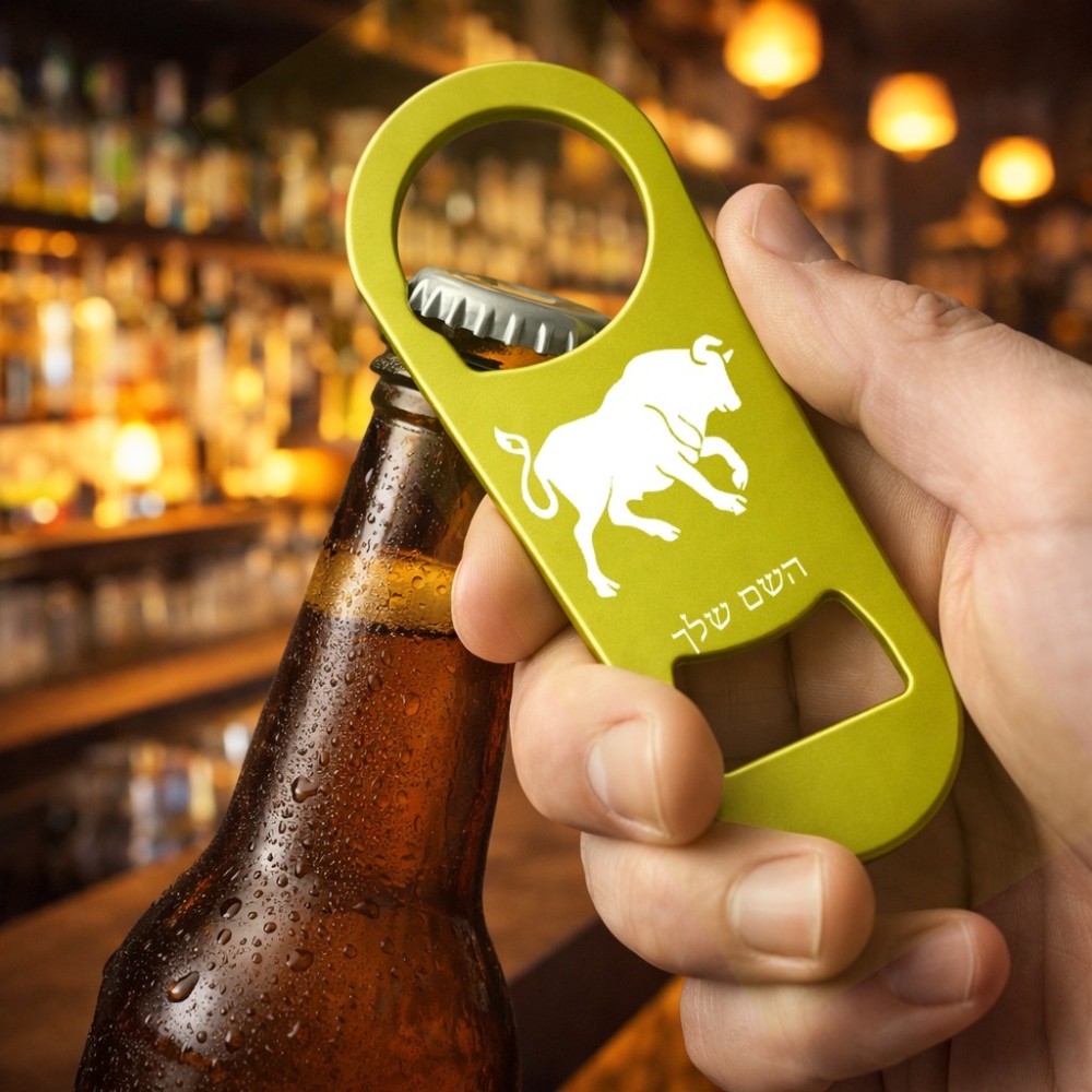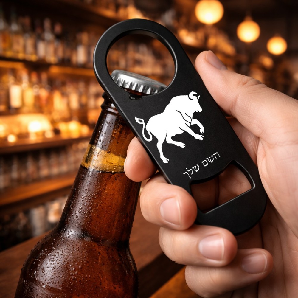 פותחן בקבוקים בעיצוב אישי עם השם שלך בעיצוב מזלות - שור. את השם המבוקש ניתן לציין בהזמנה, אם לא צויין אנחנו ניצור קשר לבירור.