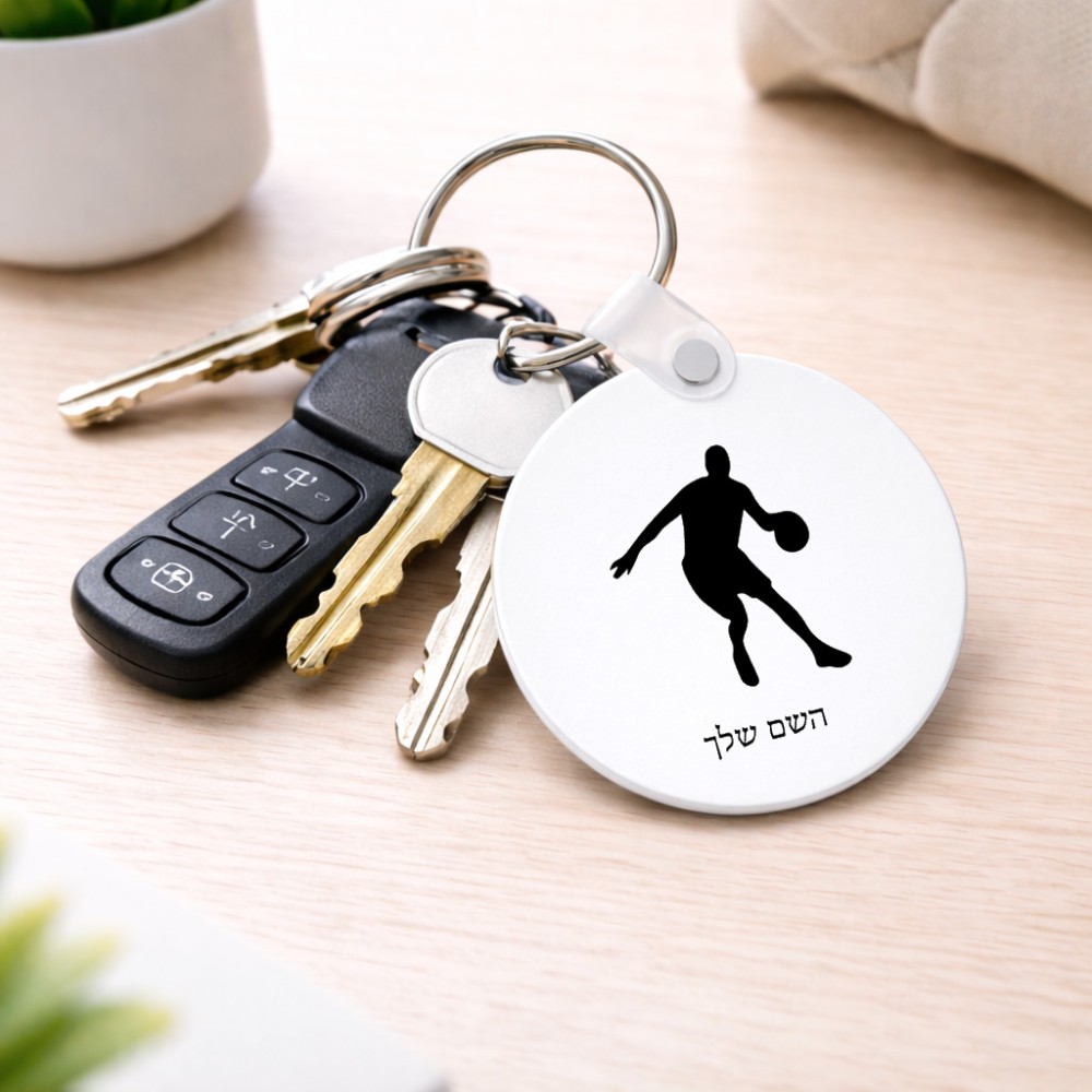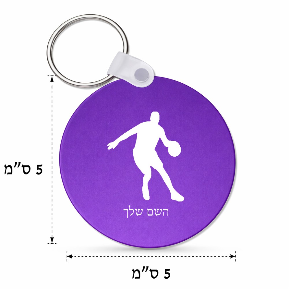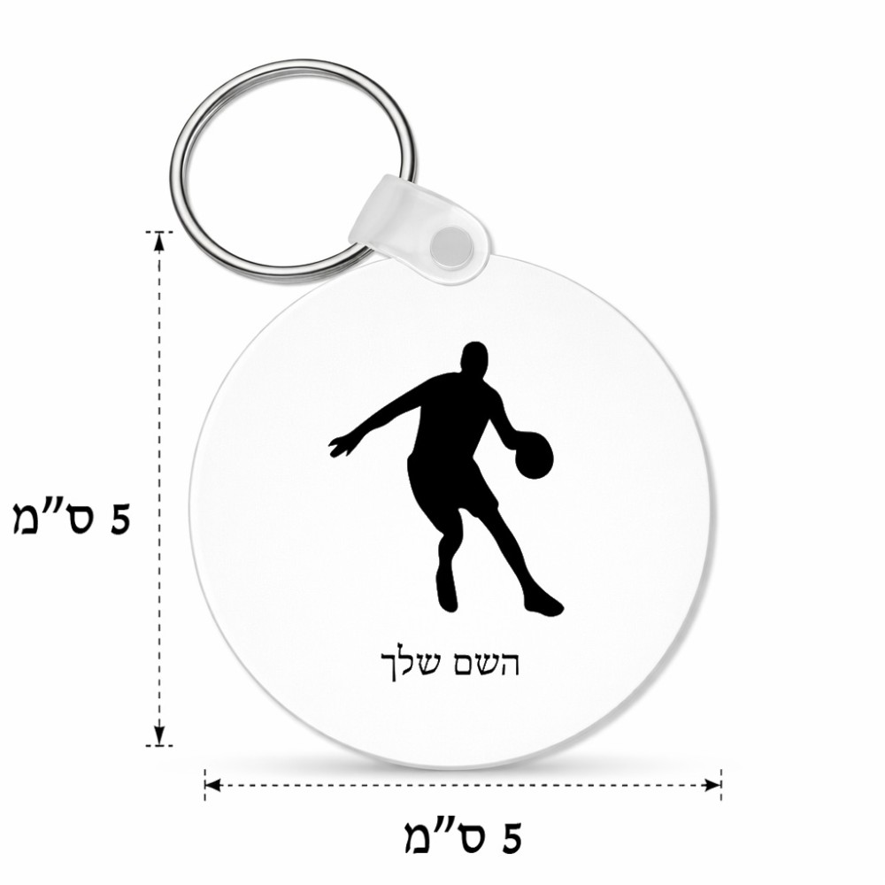 מחזיק מפתחות בצורת עיגול בעיצוב אישי עם השם שלך בעיצוב שחקן כדורסל גודל המחזיק 5 × 5 ס"מ. את השם המבוקש ניתן לציין בהזמנה, אם לא צויין אנחנו ניצור קשר לבירור.