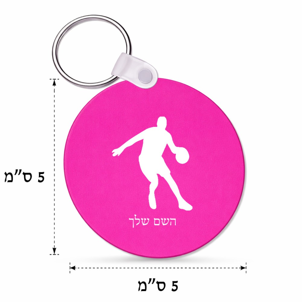 מחזיק מפתחות בצורת עיגול בעיצוב אישי עם השם שלך בעיצוב שחקן כדורסל גודל המחזיק 5 × 5 ס"מ