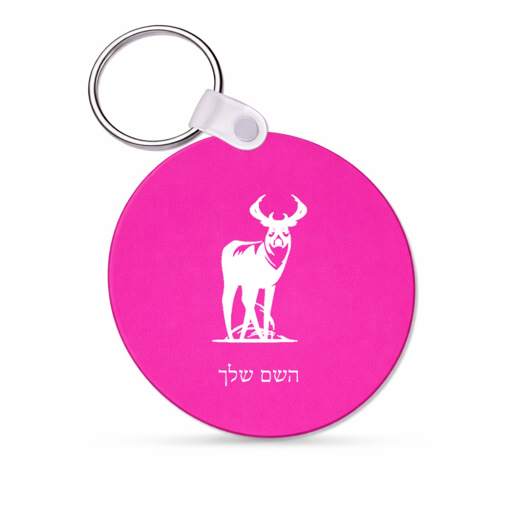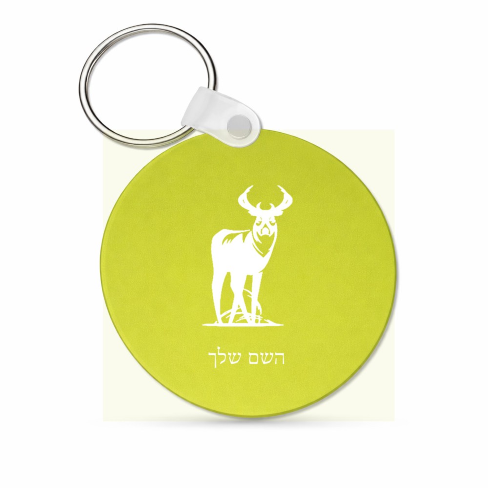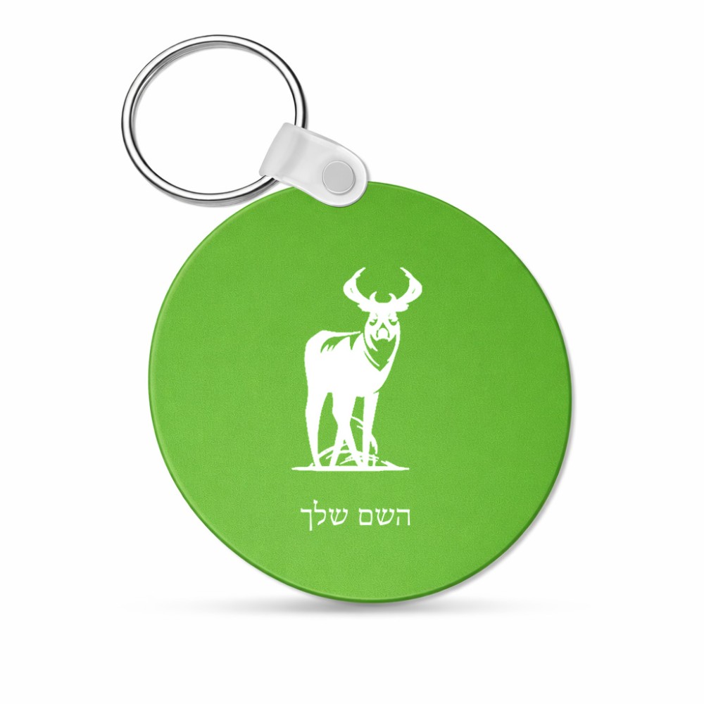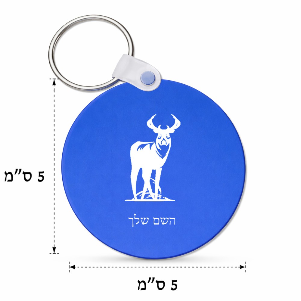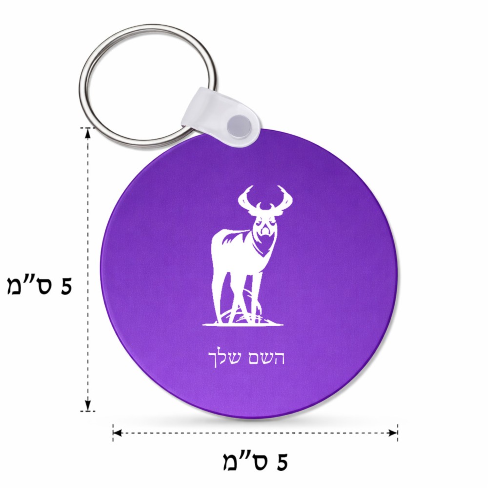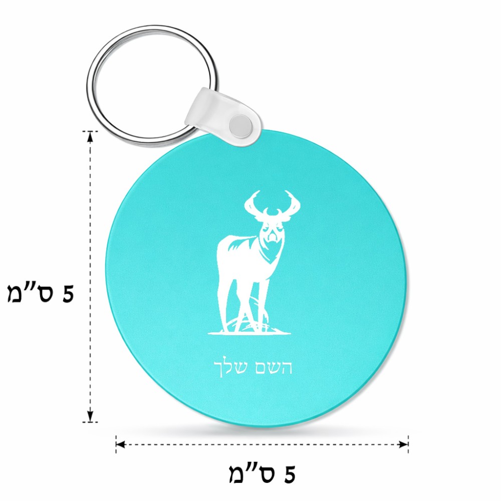 מחזיק מפתחות בצורת עיגול בעיצוב אישי עם השם שלך בעיצוב צבי גודל המחזיק 5 × 5 ס"מ. את השם המבוקש ניתן לציין בהזמנה, אם לא צויין אנחנו ניצור קשר לבירור.