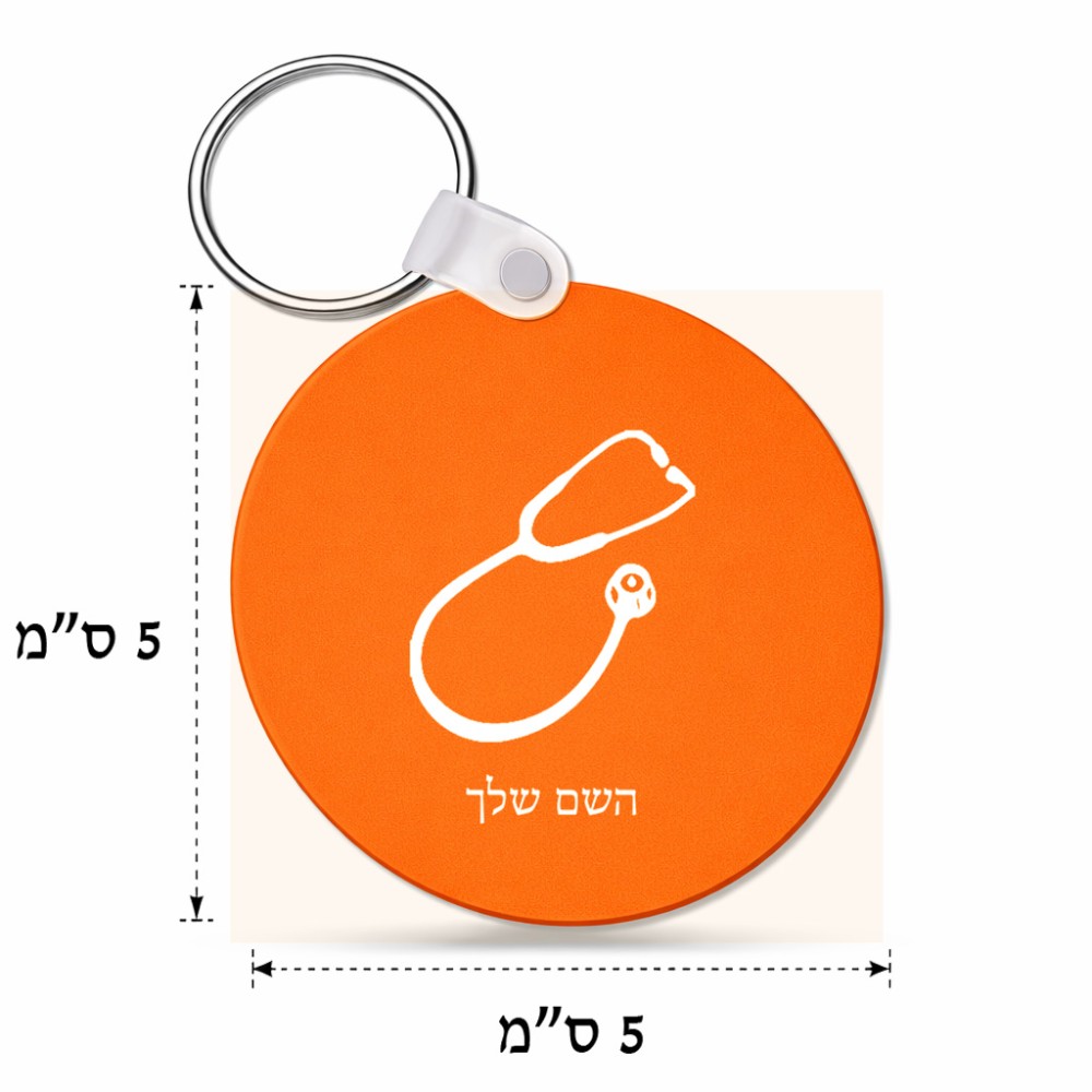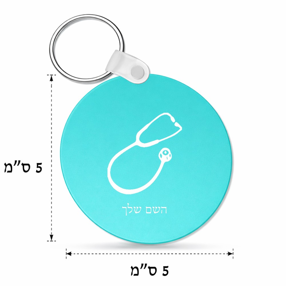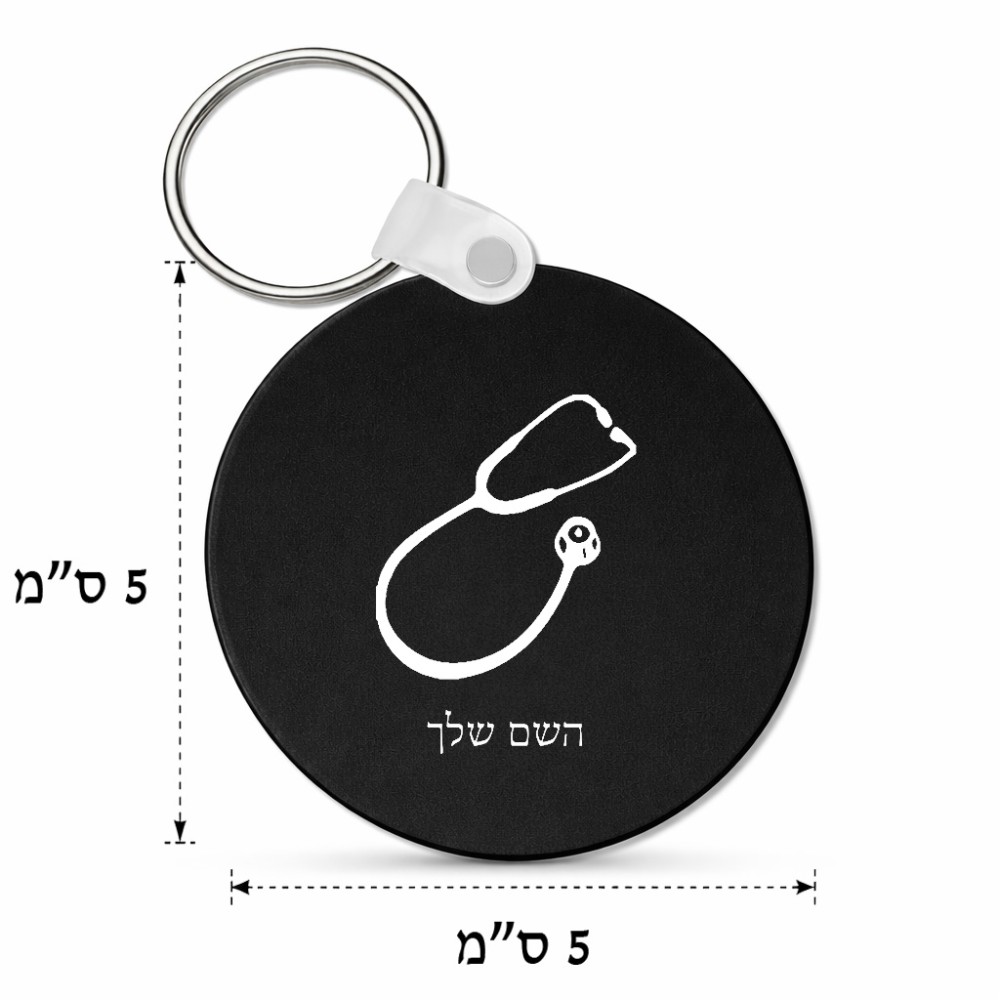 מחזיק מפתחות בצורת עיגול בעיצוב אישי עם השם שלך בעיצוב סטטוסקופ רופא גודל המחזיק 5 × 5 ס"מ. את השם המבוקש ניתן לציין בהזמנה, אם לא צויין אנחנו ניצור קשר לבירור.