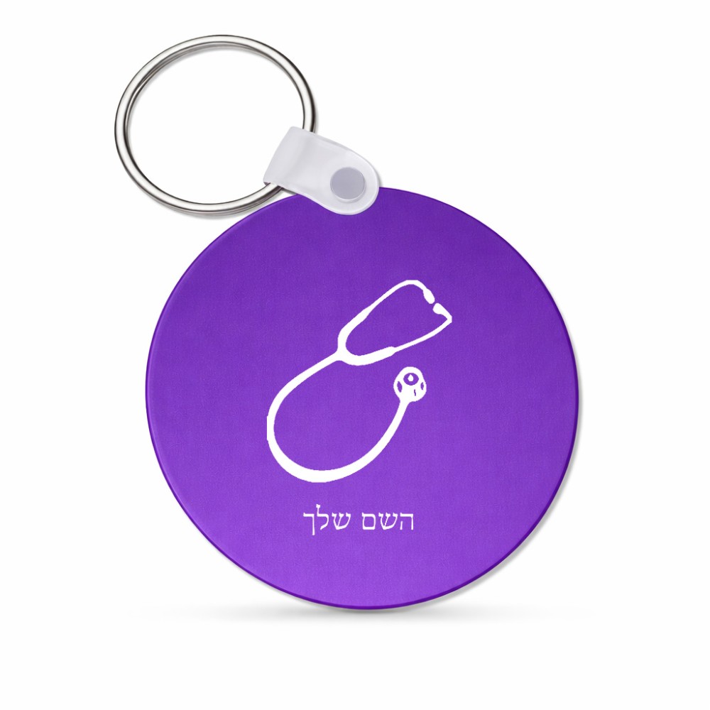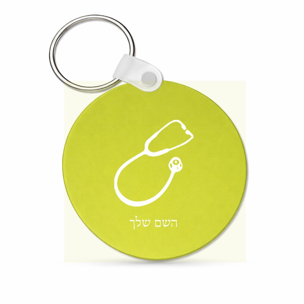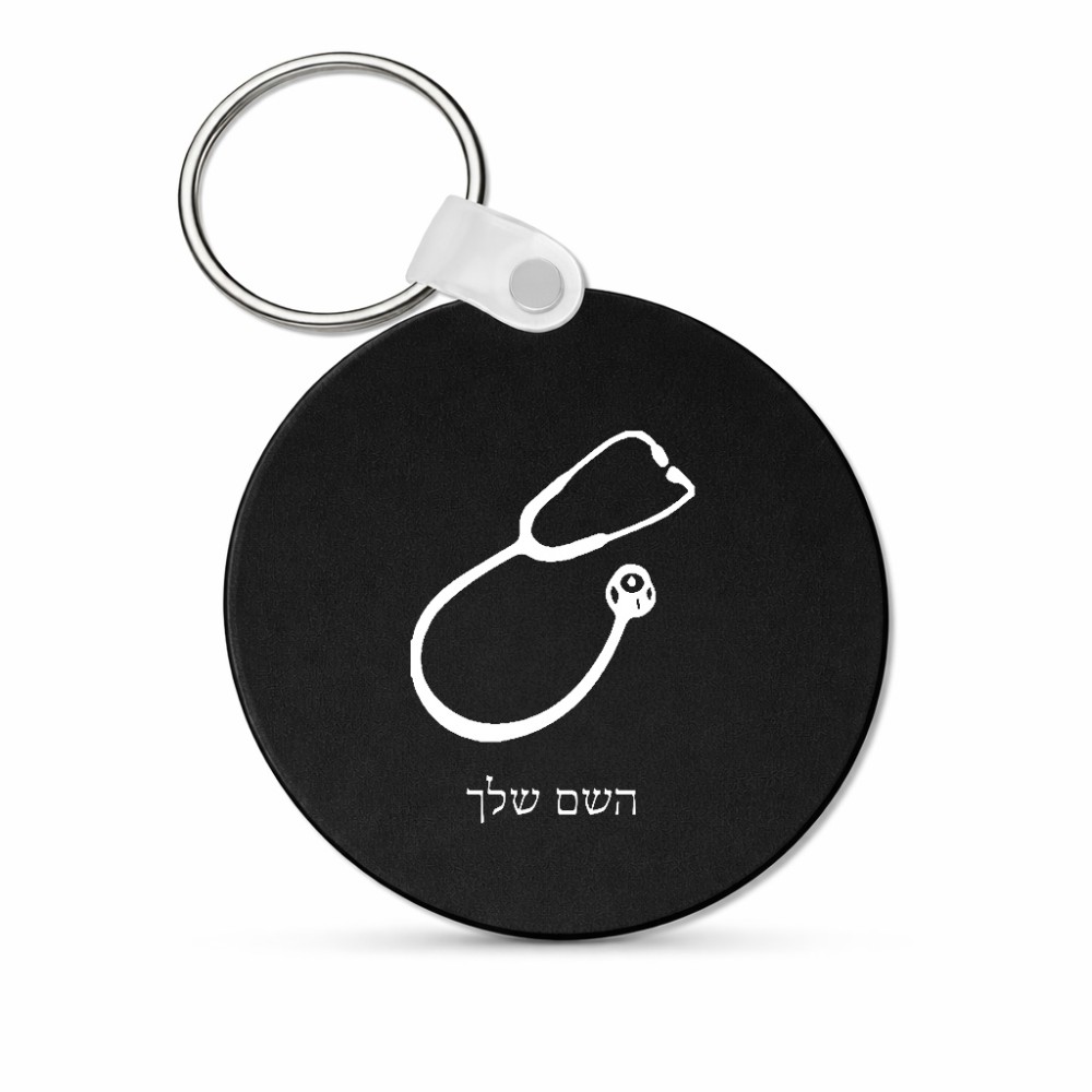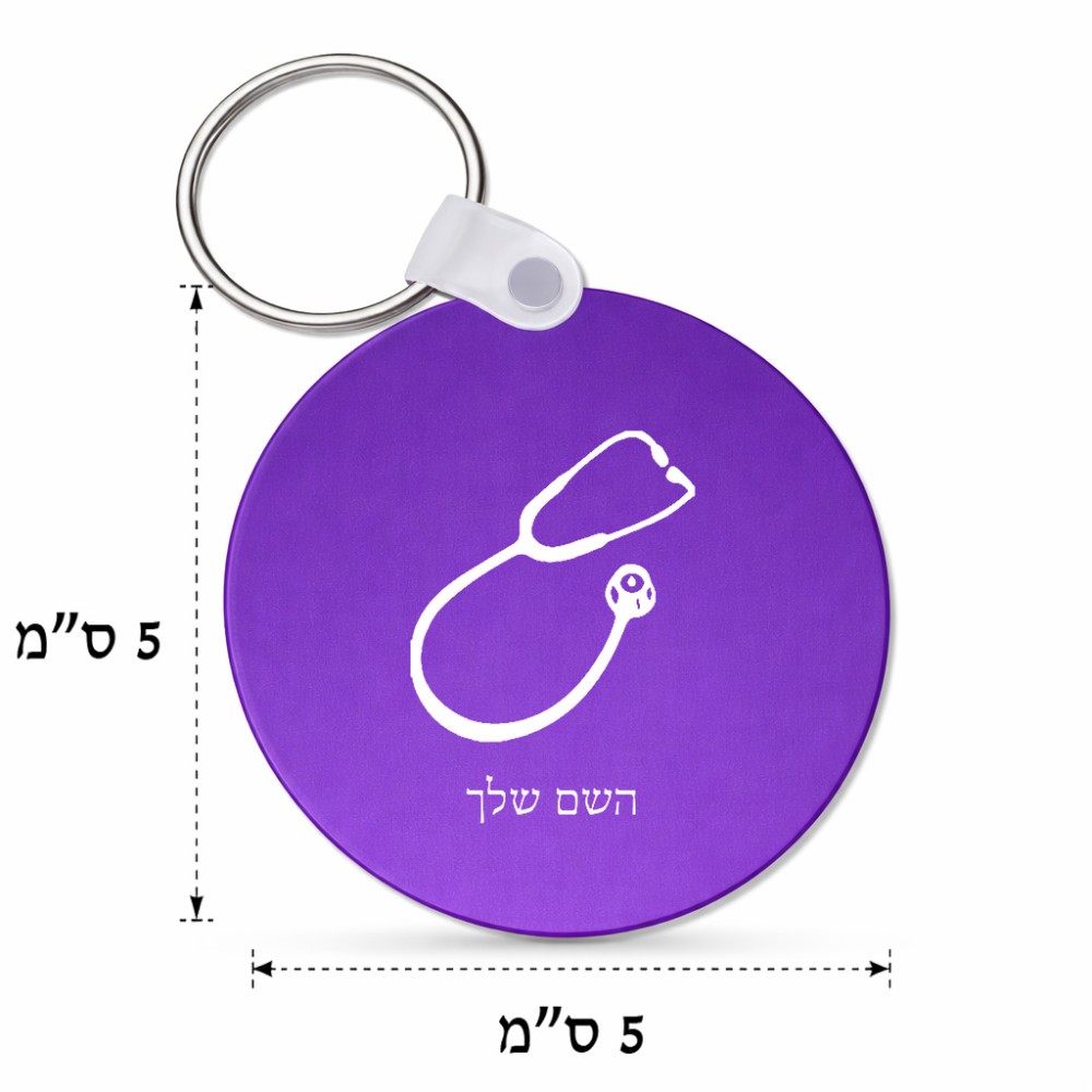 מחזיק מפתחות בצורת עיגול בעיצוב אישי עם השם שלך בעיצוב סטטוסקופ רופא גודל המחזיק 5 × 5 ס"מ. את השם המבוקש ניתן לציין בהזמנה, אם לא צויין אנחנו ניצור קשר לבירור.