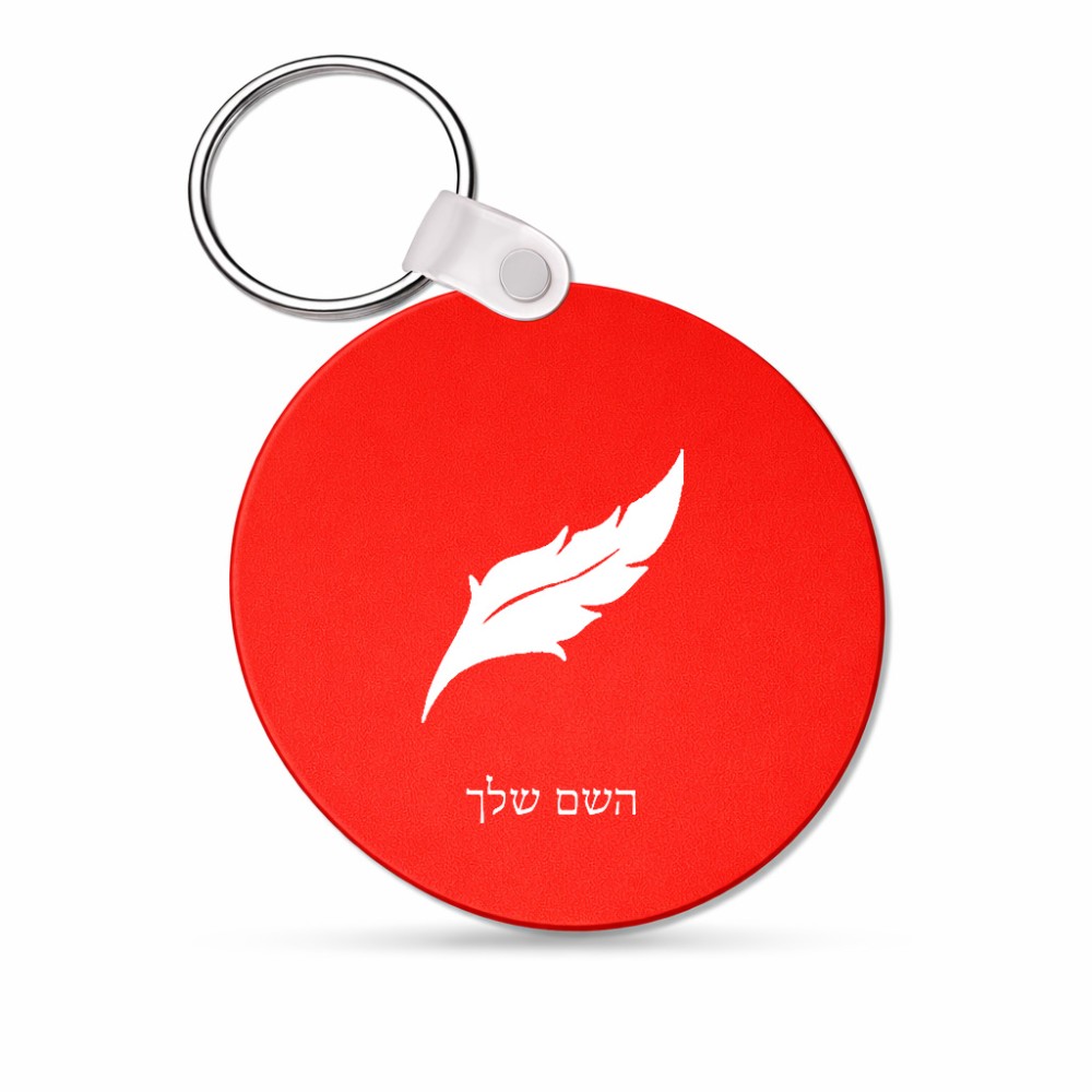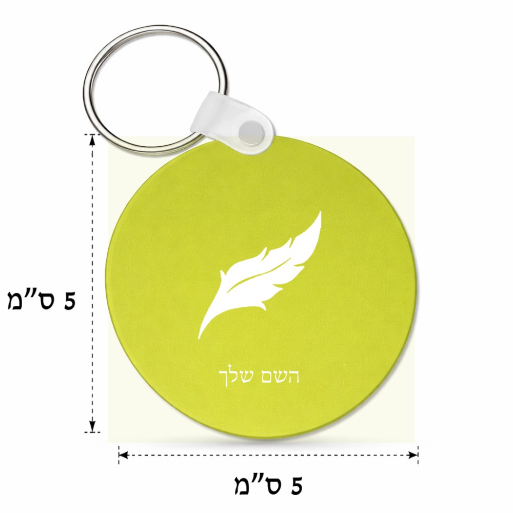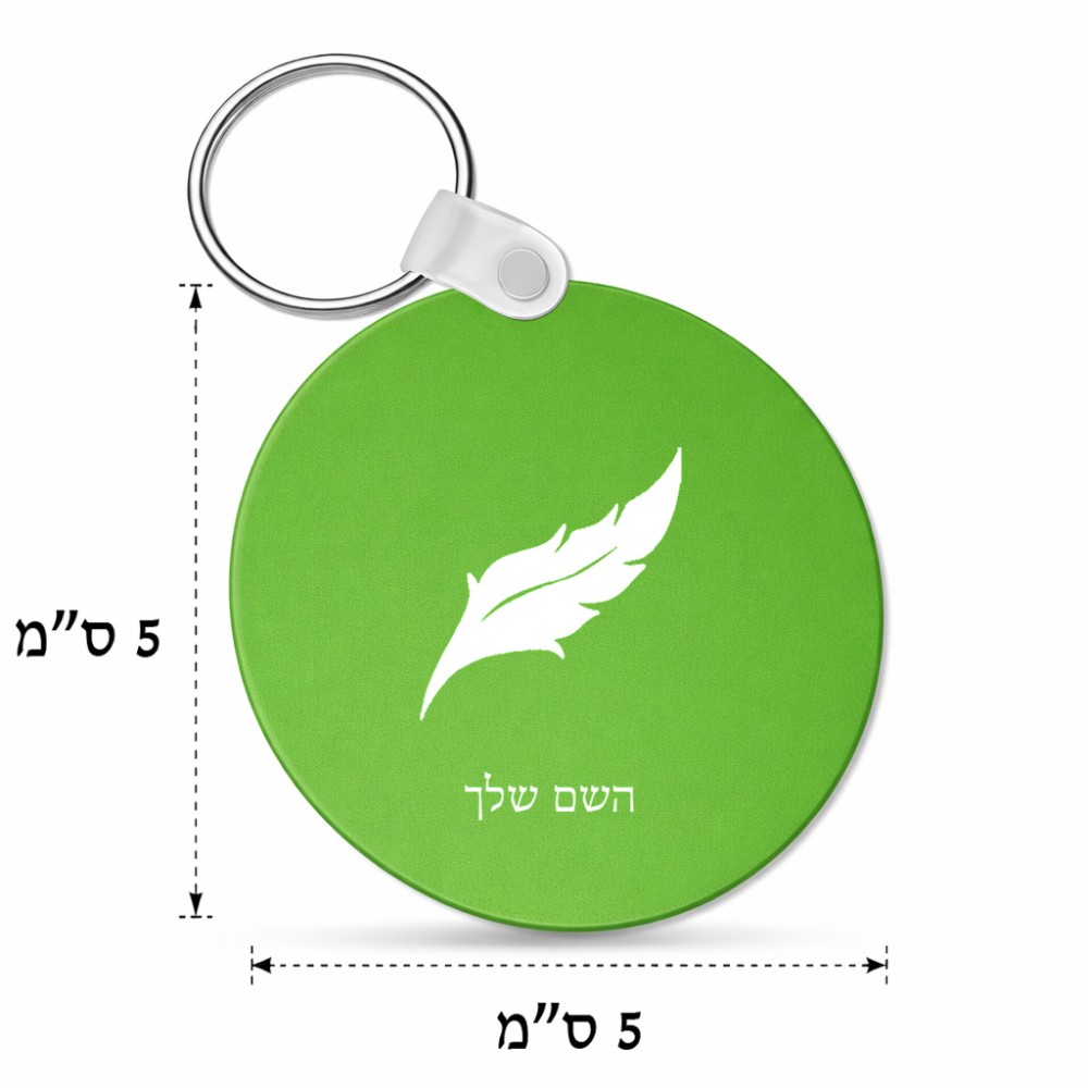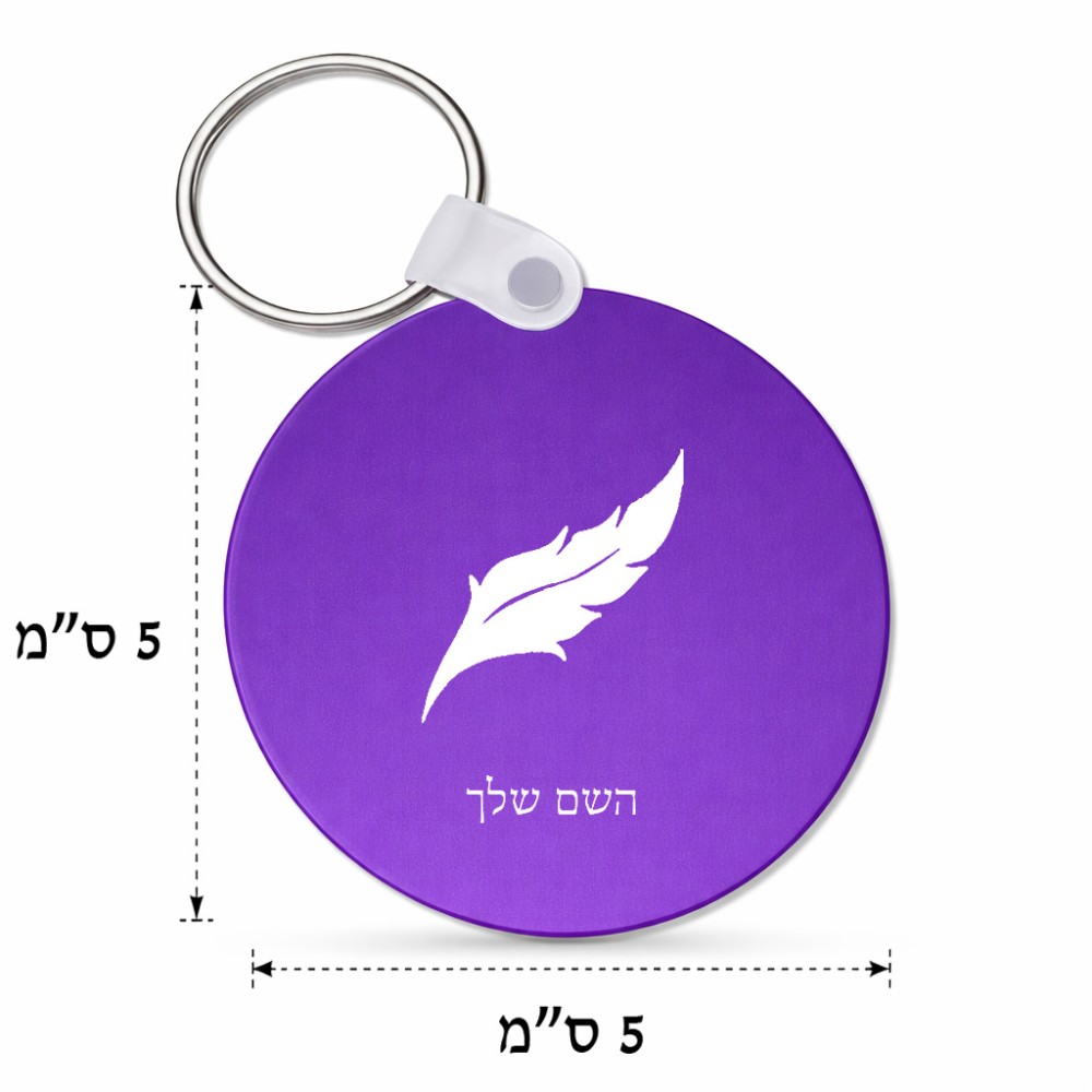 מחזיק מפתחות בצורת עיגול בעיצוב אישי עם השם שלך בעיצוב נוצת נוצה גודל המחזיק 5 × 5 ס"מ. את השם המבוקש ניתן לציין בהזמנה, אם לא צויין אנחנו ניצור קשר לבירור.
