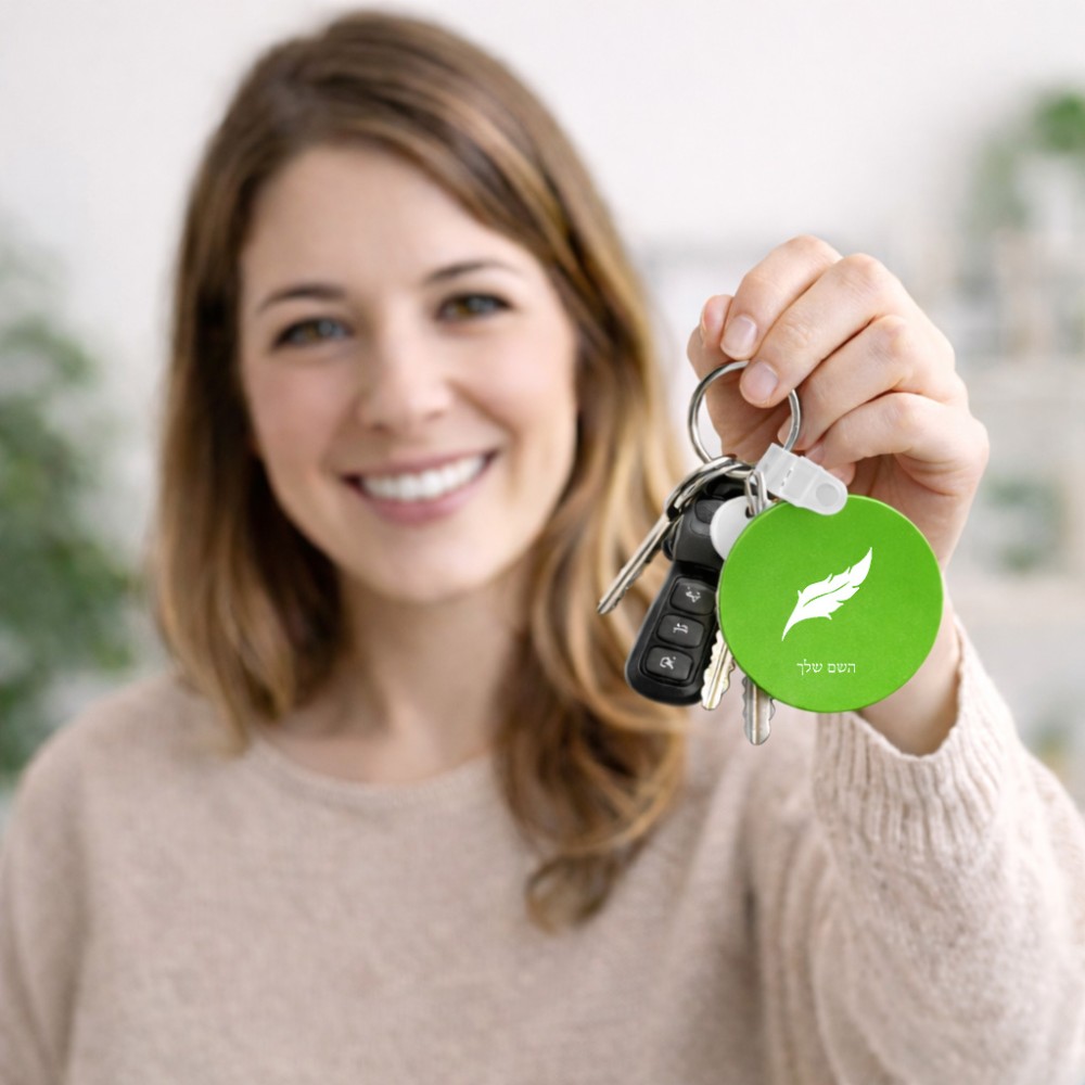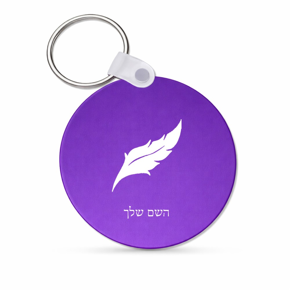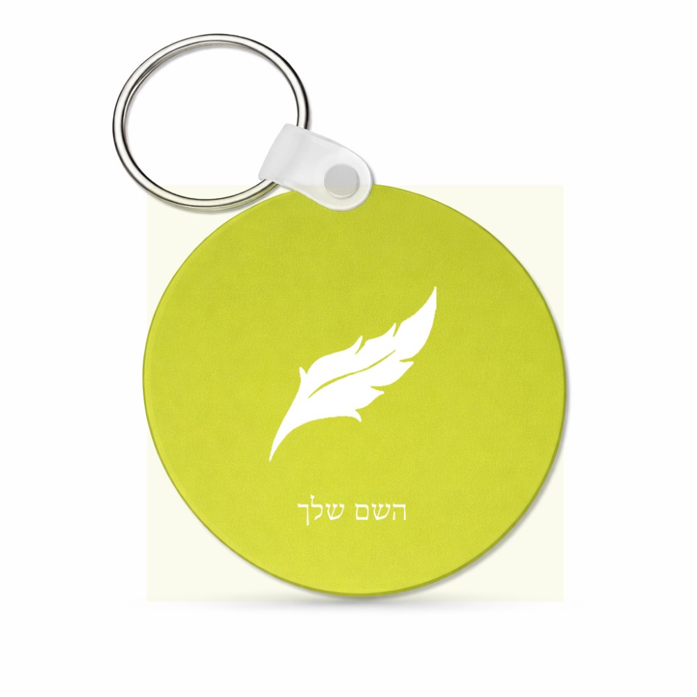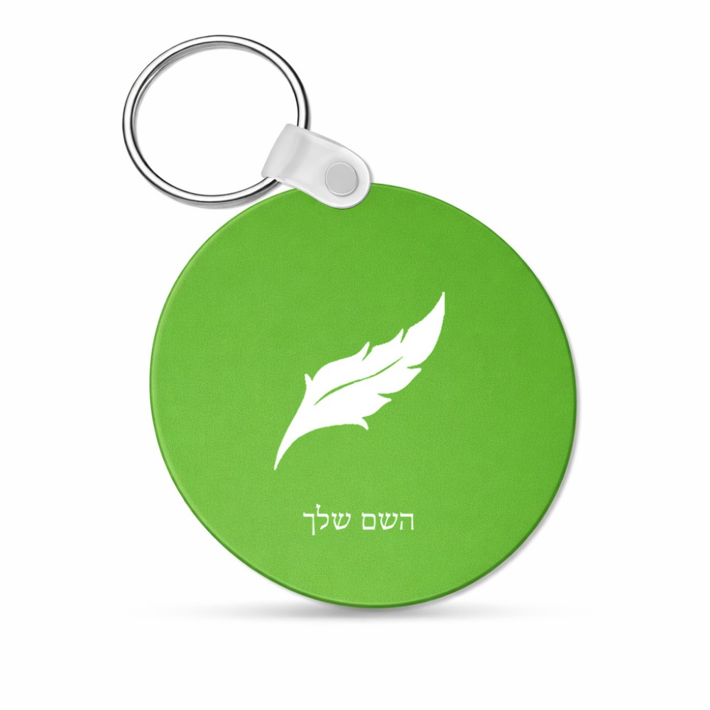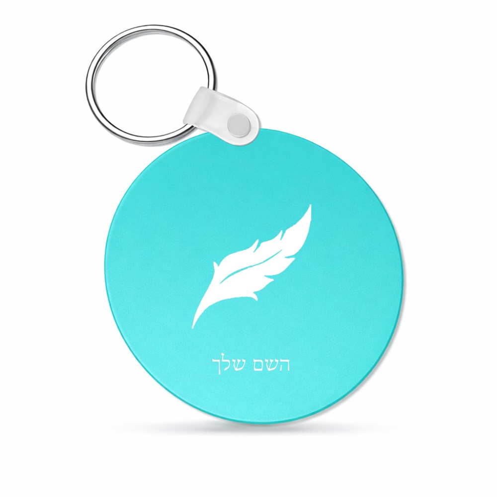 מחזיק מפתחות בצורת עיגול בעיצוב אישי עם השם שלך בעיצוב נוצת נוצה גודל המחזיק 5 × 5 ס"מ. את השם המבוקש ניתן לציין בהזמנה, אם לא צויין אנחנו ניצור קשר לבירור.