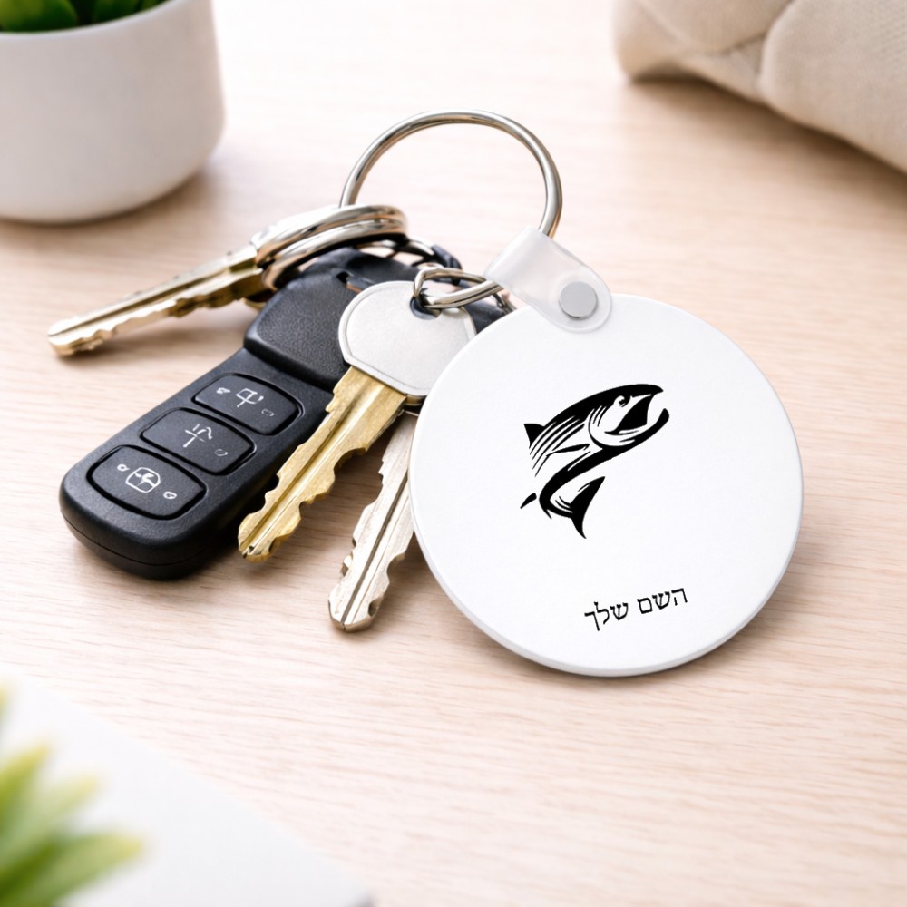 מחזיק מפתחות בצורת עיגול בעיצוב אישי עם השם שלך בעיצוב לדוג גודל המחזיק 5 × 5 ס"מ. את השם המבוקש ניתן לציין בהזמנה, אם לא צויין אנחנו ניצור קשר לבירור.