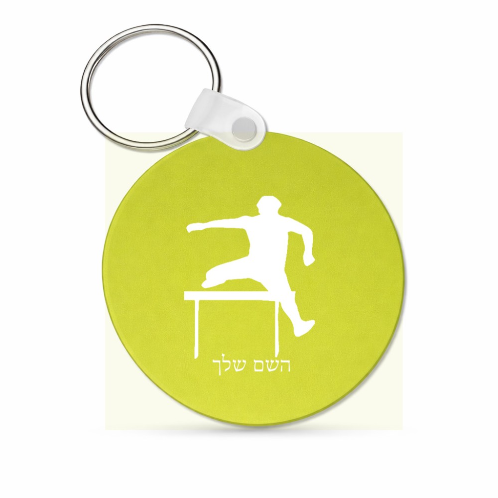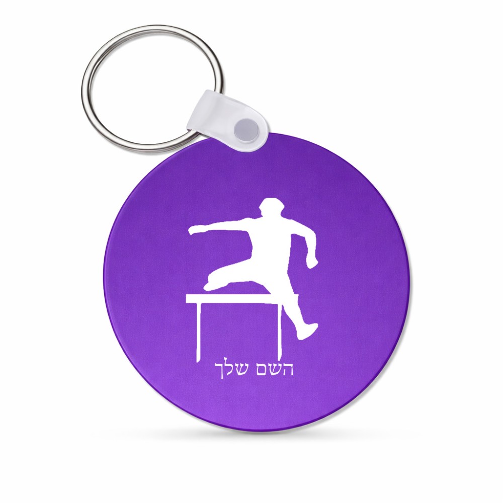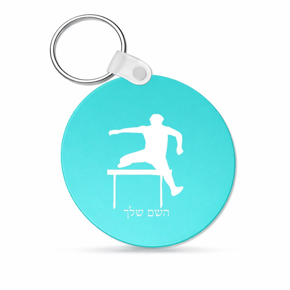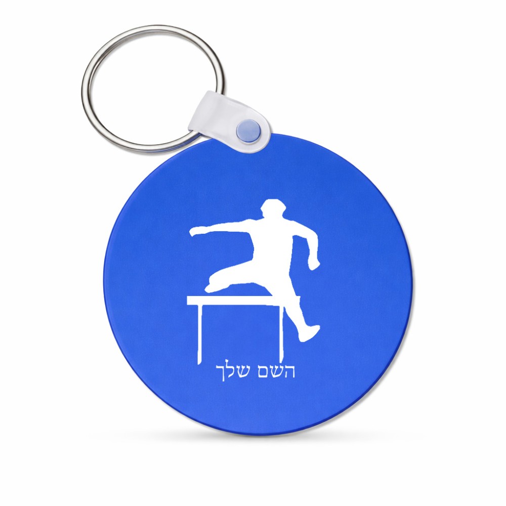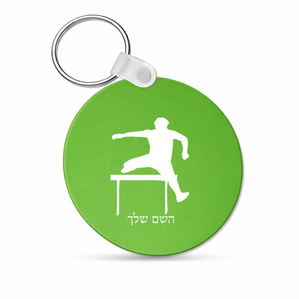 מחזיק מפתחות בצורת עיגול בעיצוב אישי עם השם שלך בעיצוב קפיצת משוכות גודל המחזיק 5 × 5 ס"מ. את השם המבוקש ניתן לציין בהזמנה, אם לא צויין אנחנו ניצור קשר לבירור.