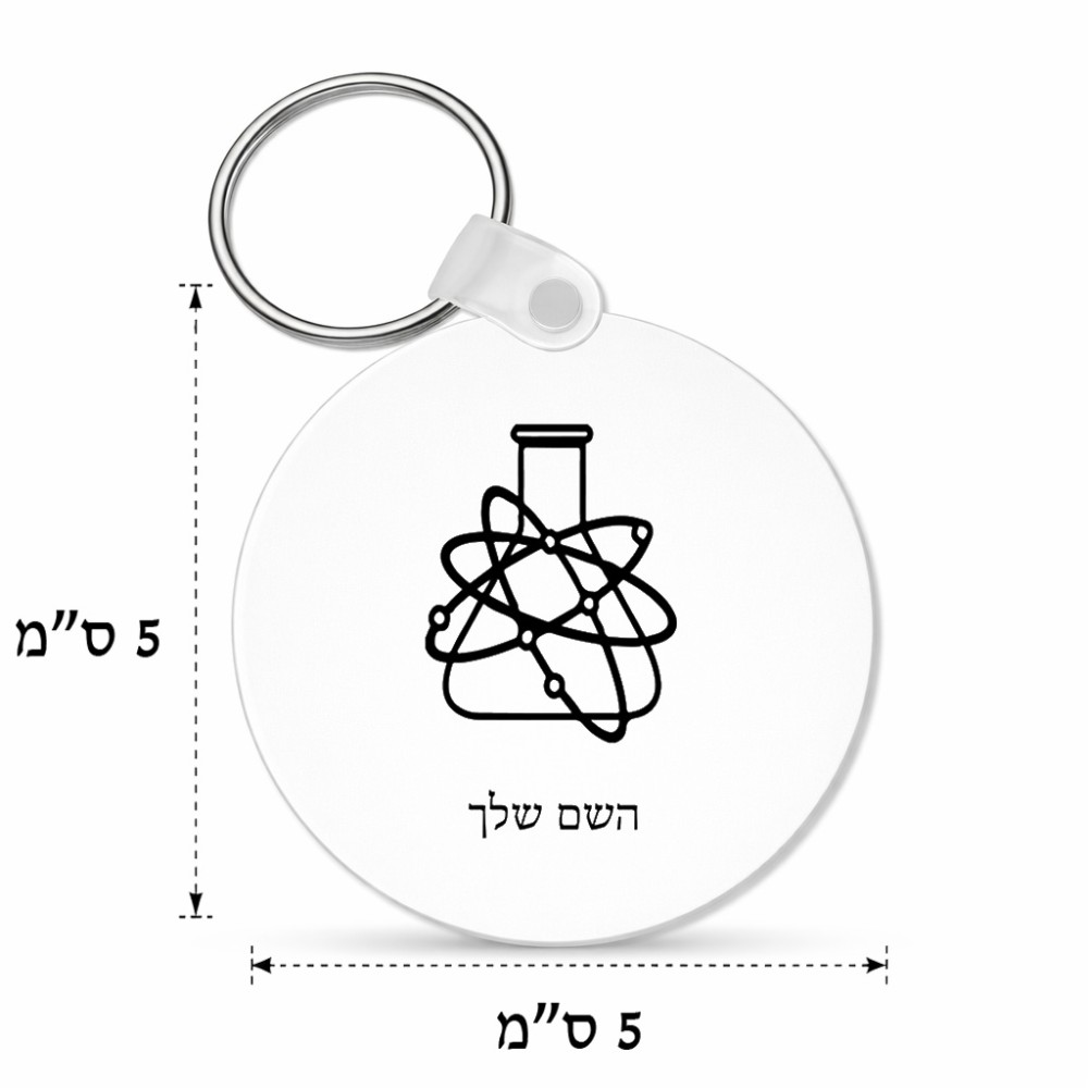 מחזיק מפתחות בצורת עיגול בעיצוב אישי עם השם שלך בעיצוב מעבדה גודל המחזיק 5 × 5 ס"מ. את השם המבוקש ניתן לציין בהזמנה, אם לא צויין אנחנו ניצור קשר לבירור.