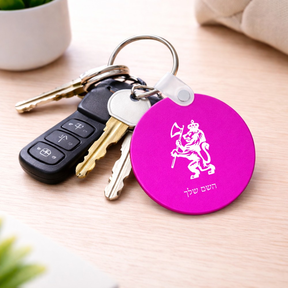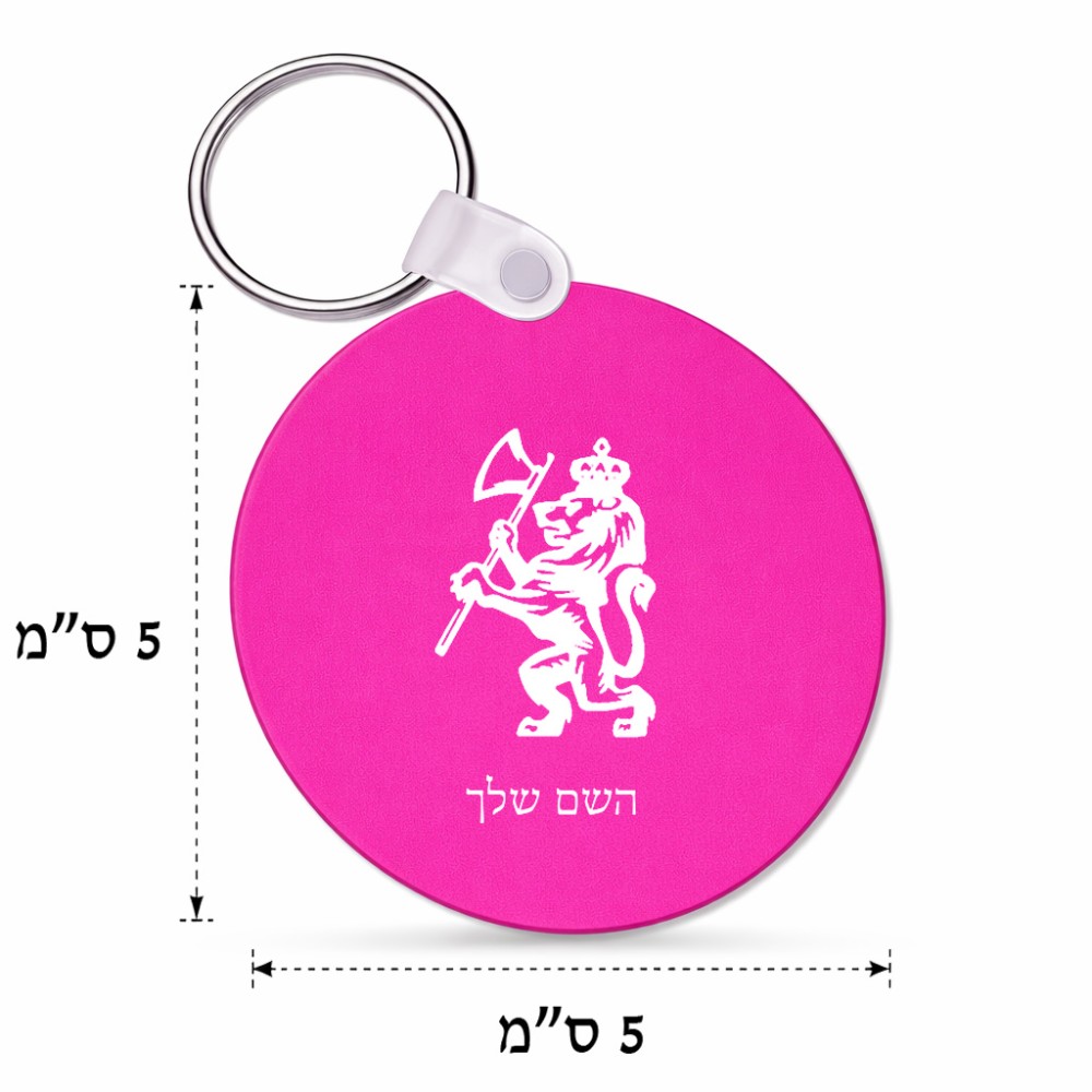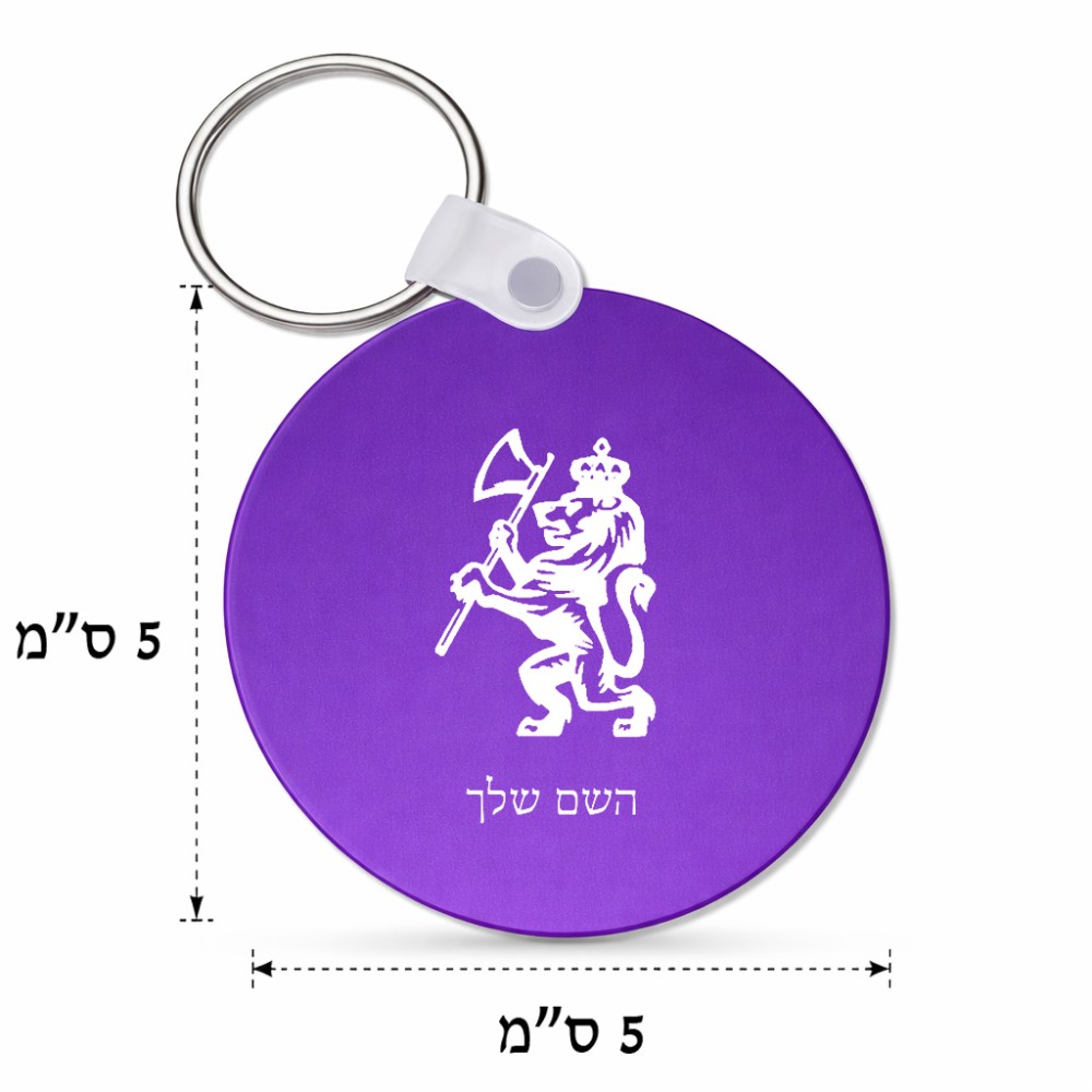 מחזיק מפתחות בצורת עיגול בעיצוב אישי עם השם שלך בעיצוב אריה גודל המחזיק 5 × 5 ס"מ. את השם המבוקש ניתן לציין בהזמנה, אם לא צויין אנחנו ניצור קשר לבירור.
