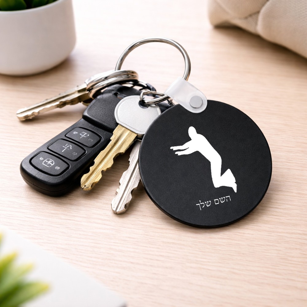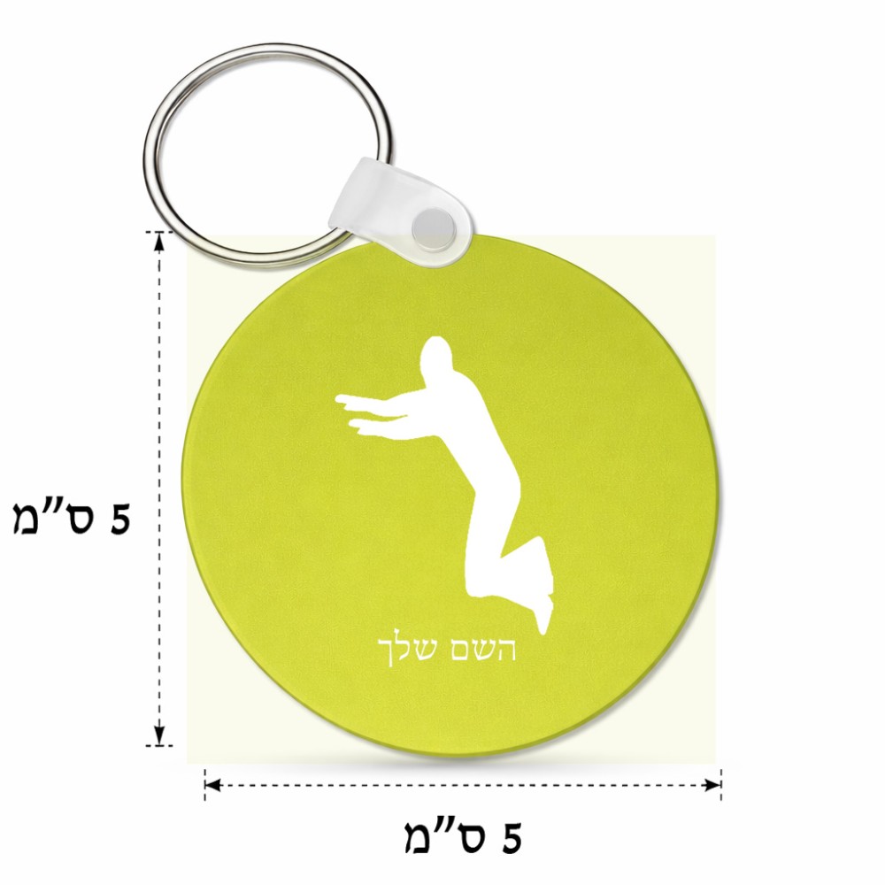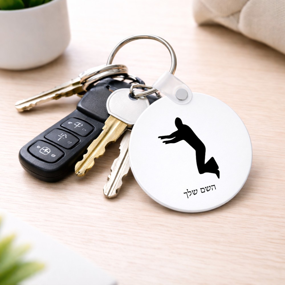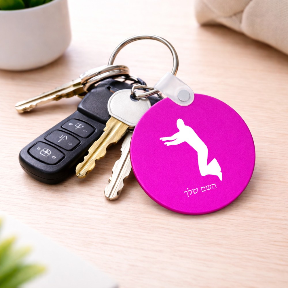 מחזיק מפתחות בצורת עיגול בעיצוב אישי עם השם שלך בעיצוב פארקורינג גודל המחזיק 5 × 5 ס"מ. את השם המבוקש ניתן לציין בהזמנה, אם לא צויין אנחנו ניצור קשר לבירור.