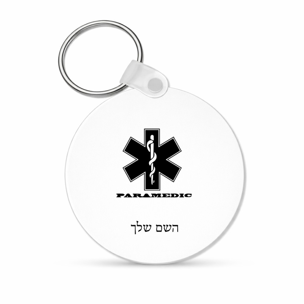 מחזיק מפתחות בצורת עיגול בעיצוב אישי עם השם שלך בעיצוב חובש גודל המחזיק 5 × 5 ס"מ. את השם המבוקש ניתן לציין בהזמנה, אם לא צויין אנחנו ניצור קשר לבירור.