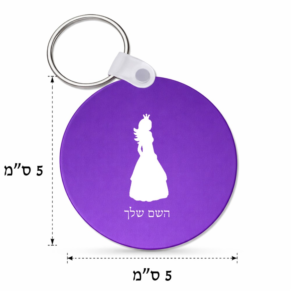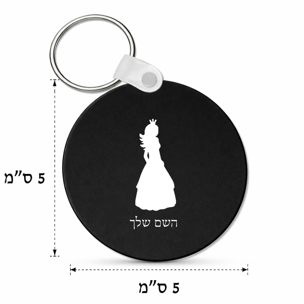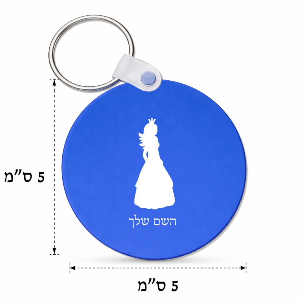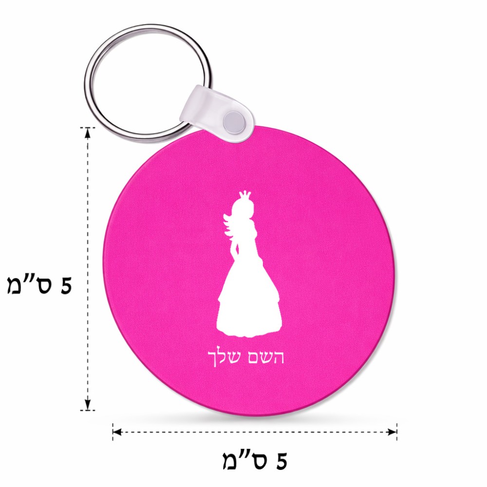 מחזיק מפתחות בצורת עיגול בעיצוב אישי עם השם שלך בעיצוב נסיכה גודל המחזיק 5 × 5 ס"מ. את השם המבוקש ניתן לציין בהזמנה, אם לא צויין אנחנו ניצור קשר לבירור.